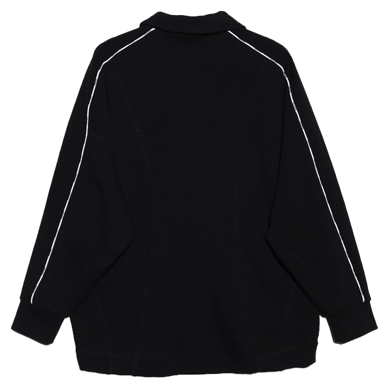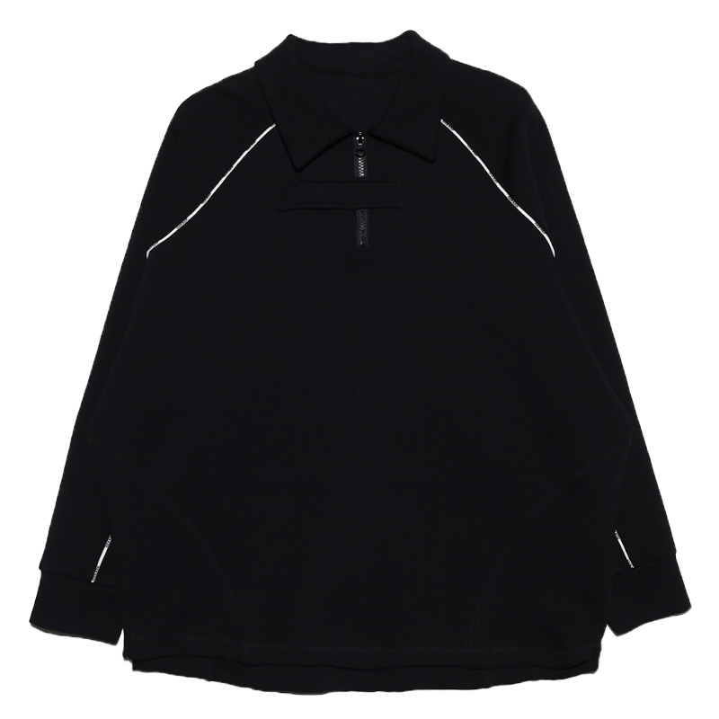 WY192春冬季新款拼接拉链方领简约街头风百搭长袖宽松T恤打底衫
