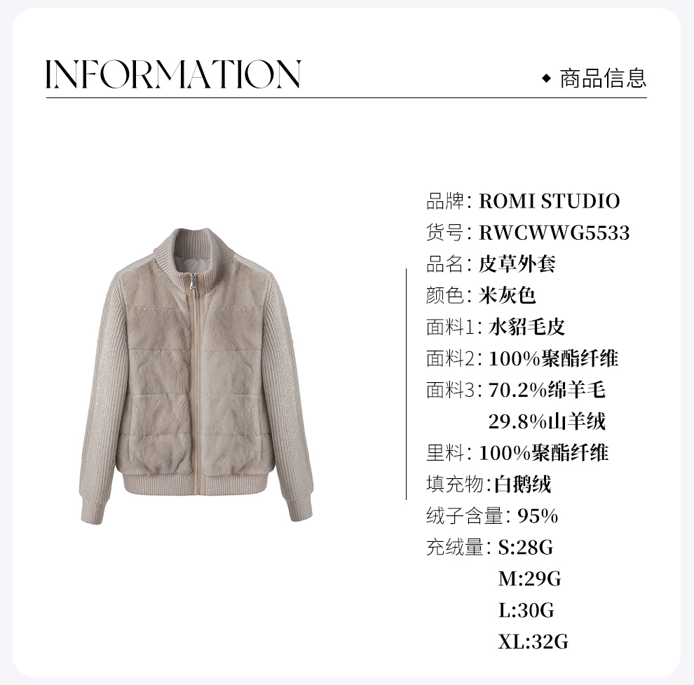 ROMI STUDIO“奢贵老钱”进口丹麦银兰水貂气质皮草羽绒 RWCWWG5533
