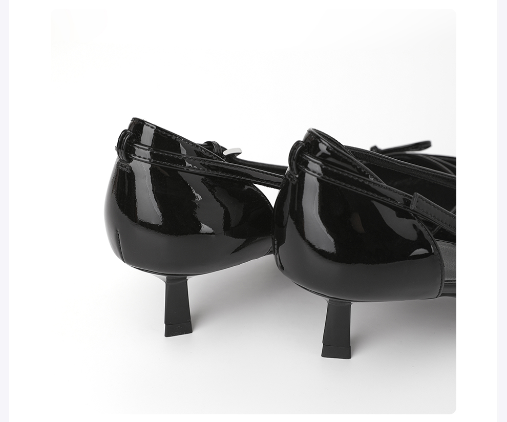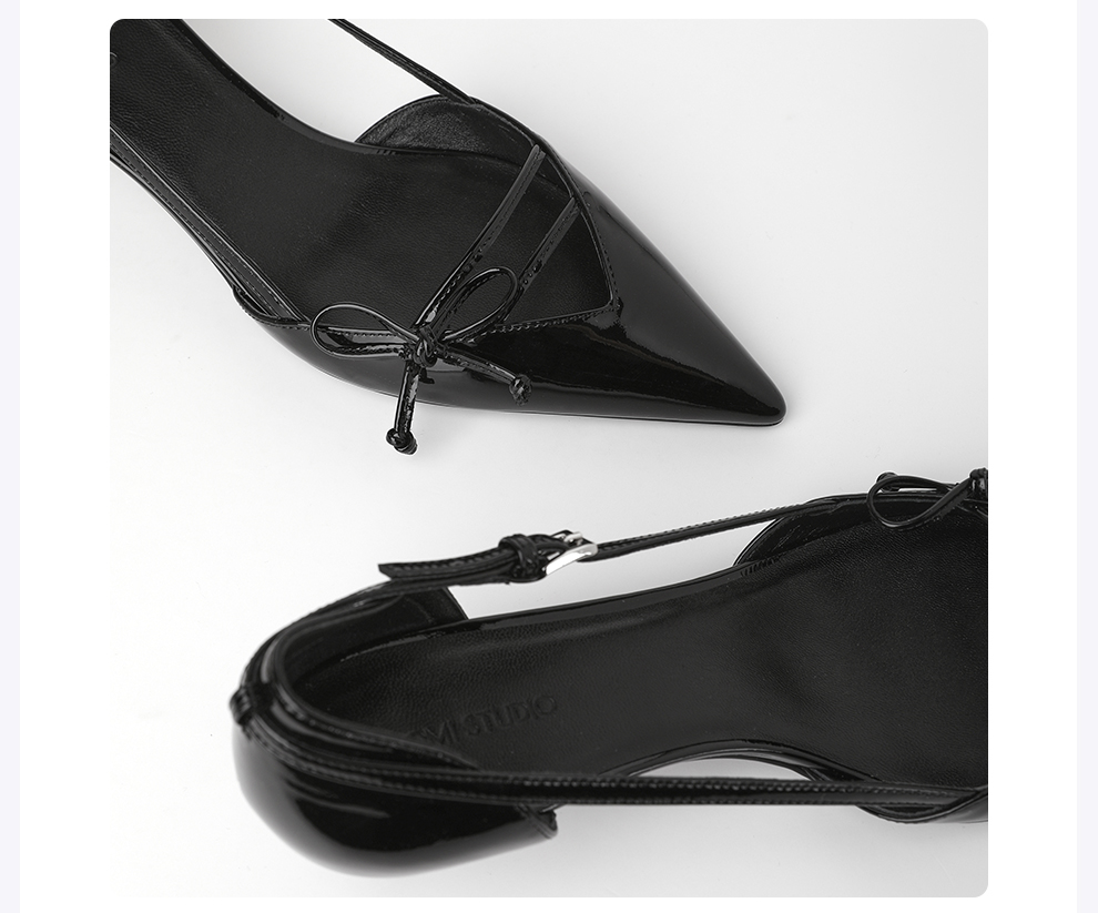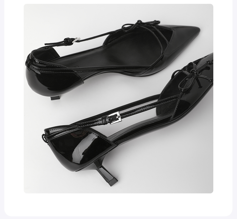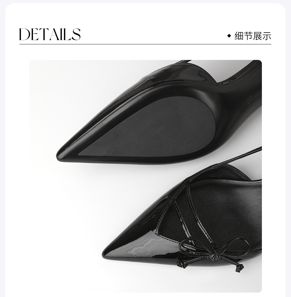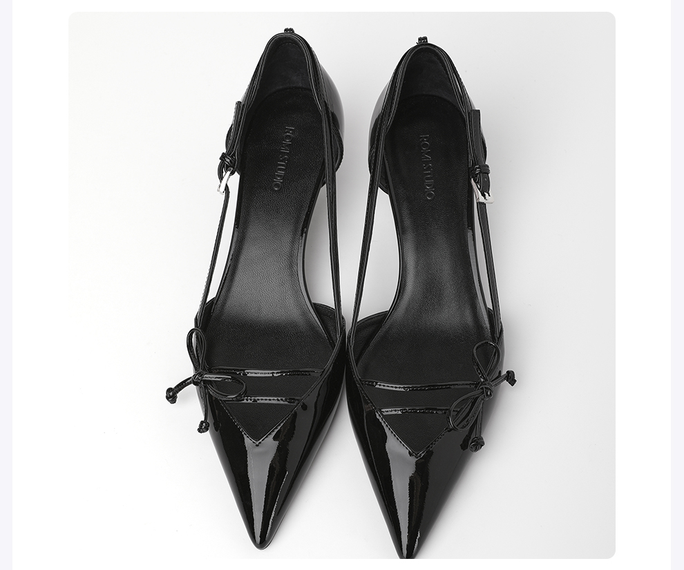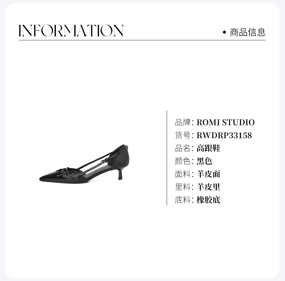 ROMI STUDIO“法式气质”漆面羊皮革尖头细跟黑色高跟鞋RWDRP33158