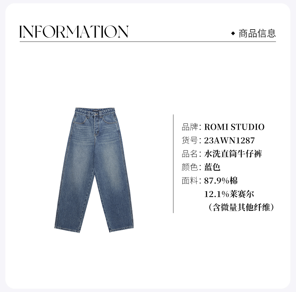 ROMI STUDIO“Cozy Design" 高比例棉重磅水洗直筒牛仔裤23AWN1287