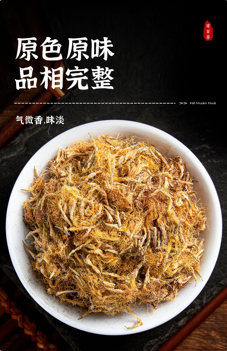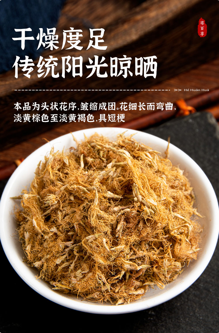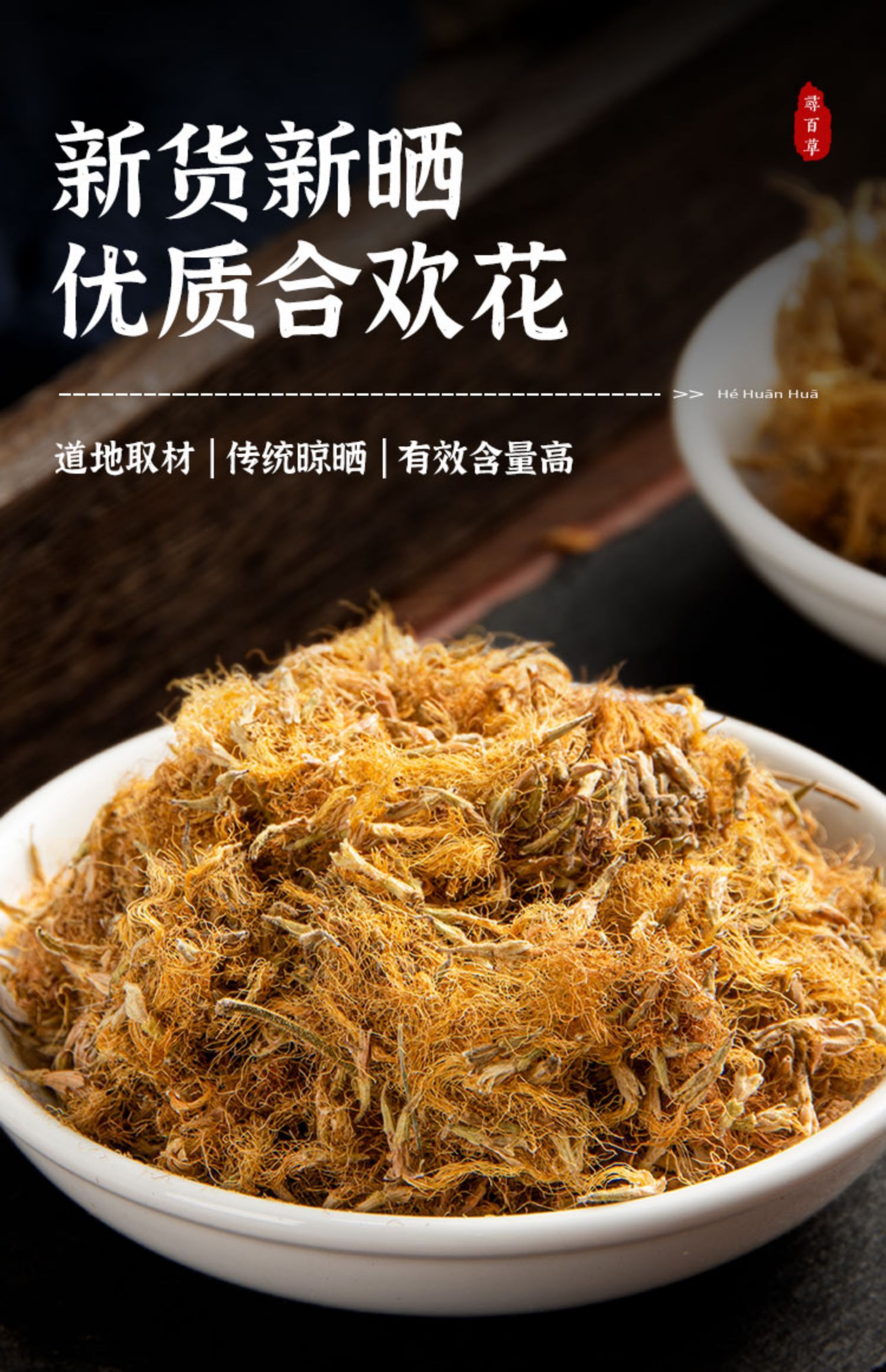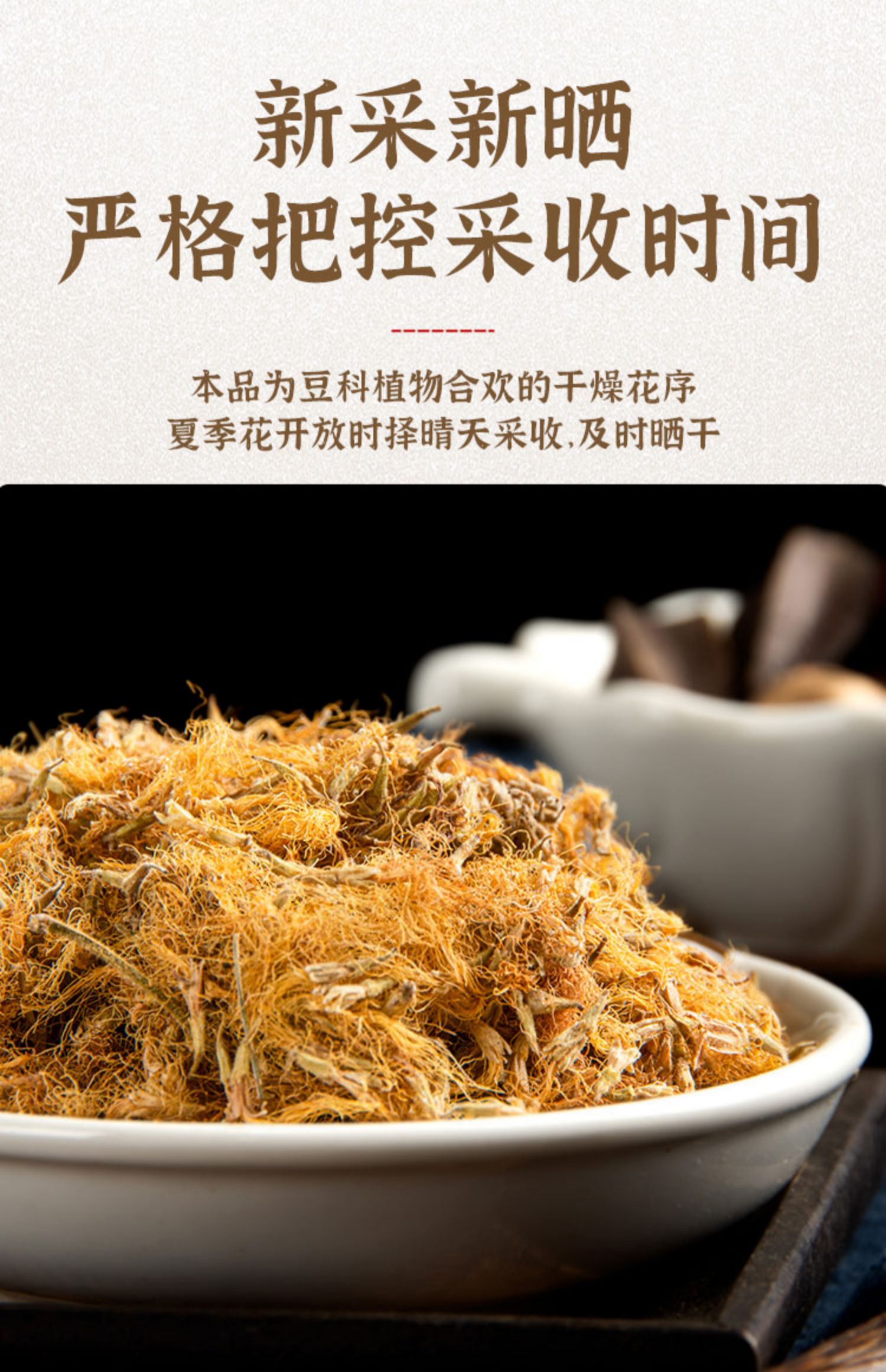 合欢花干花中药材野生合欢花茶干泡茶泡水枕头香囊和夜交藤的作用