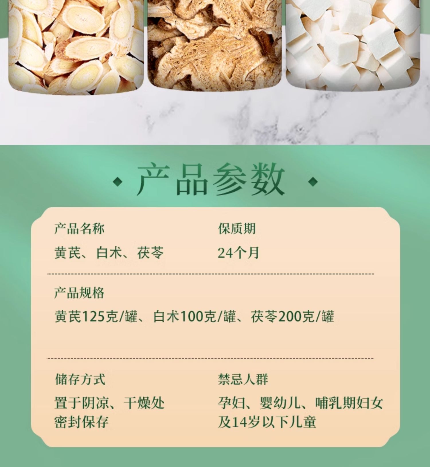 黄芪白术茯苓茶特级野生泡水干货500g克批发中药材正品官方旗舰店