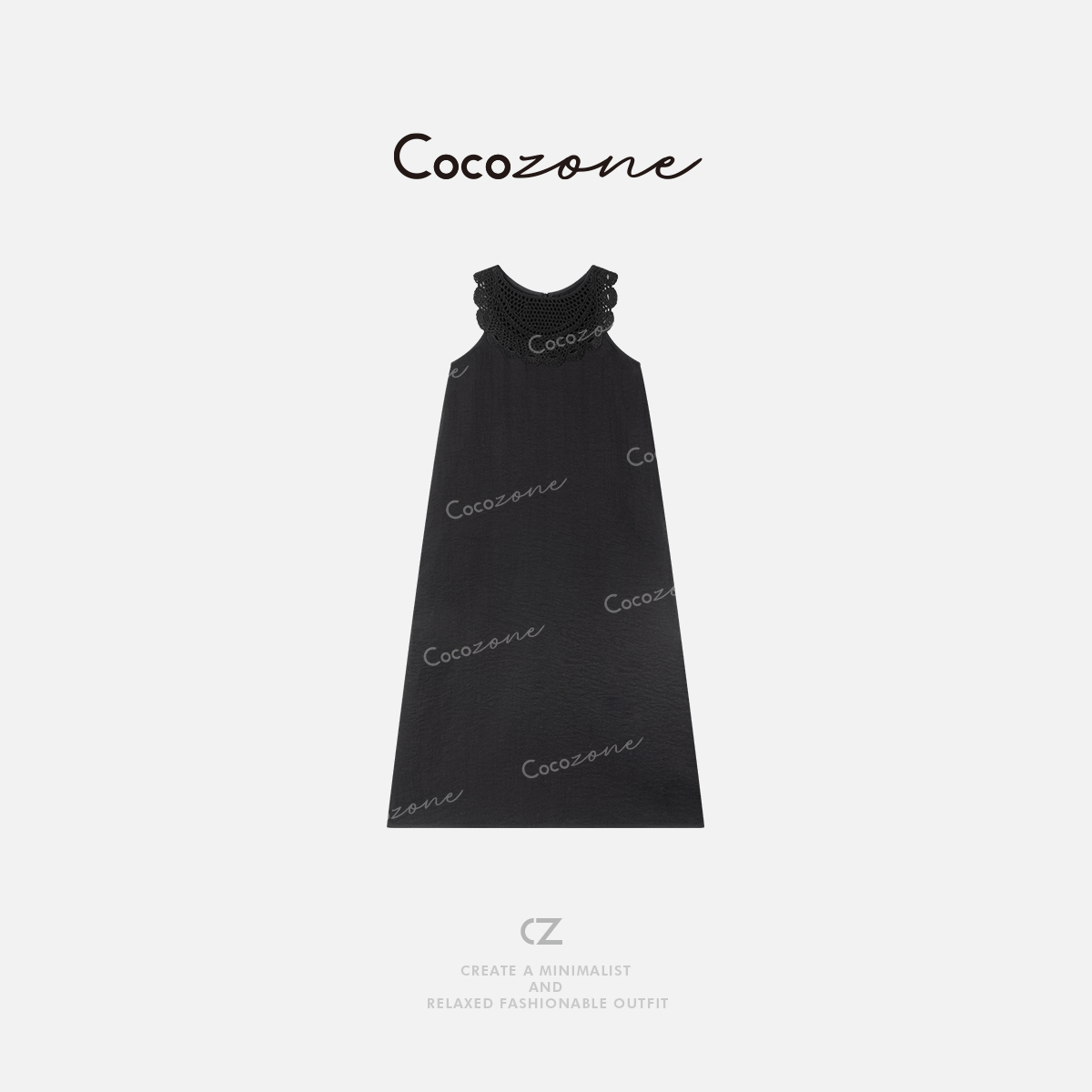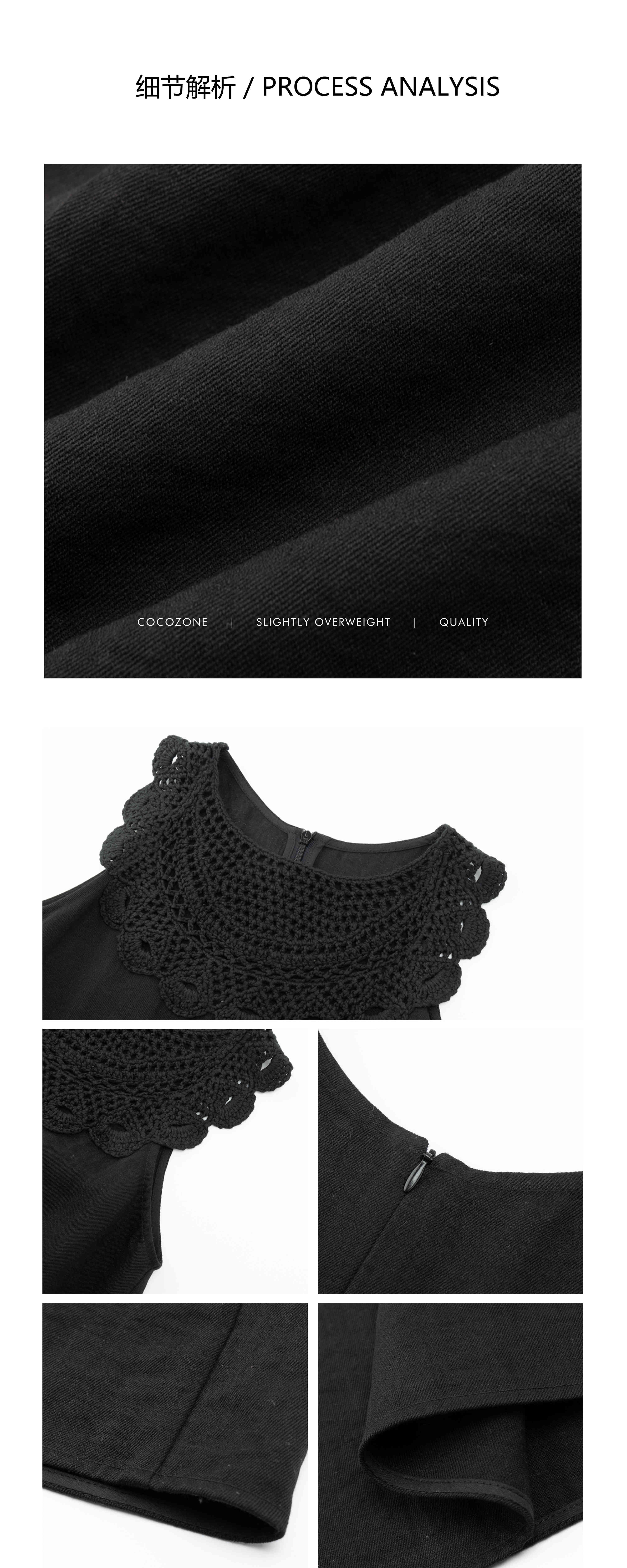 COCO ZONE 刘一一【人丝亚麻混纺】法式镂空圆领连衣裙ACD1A0212