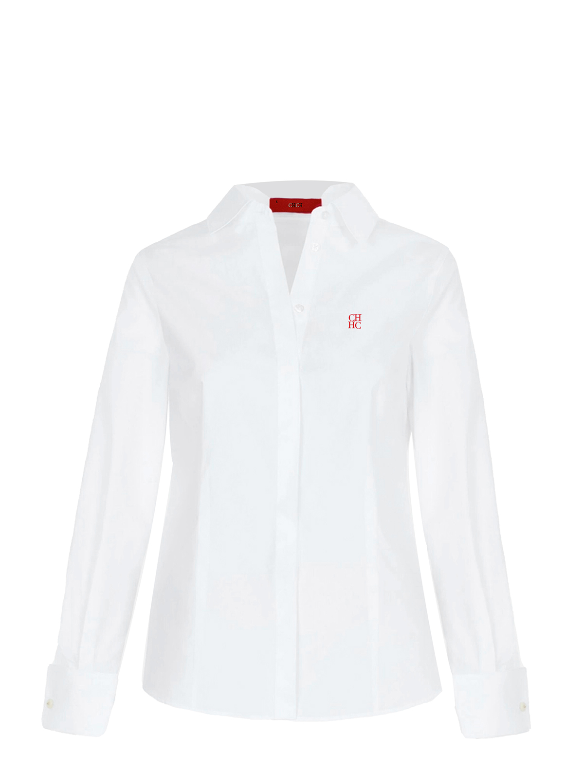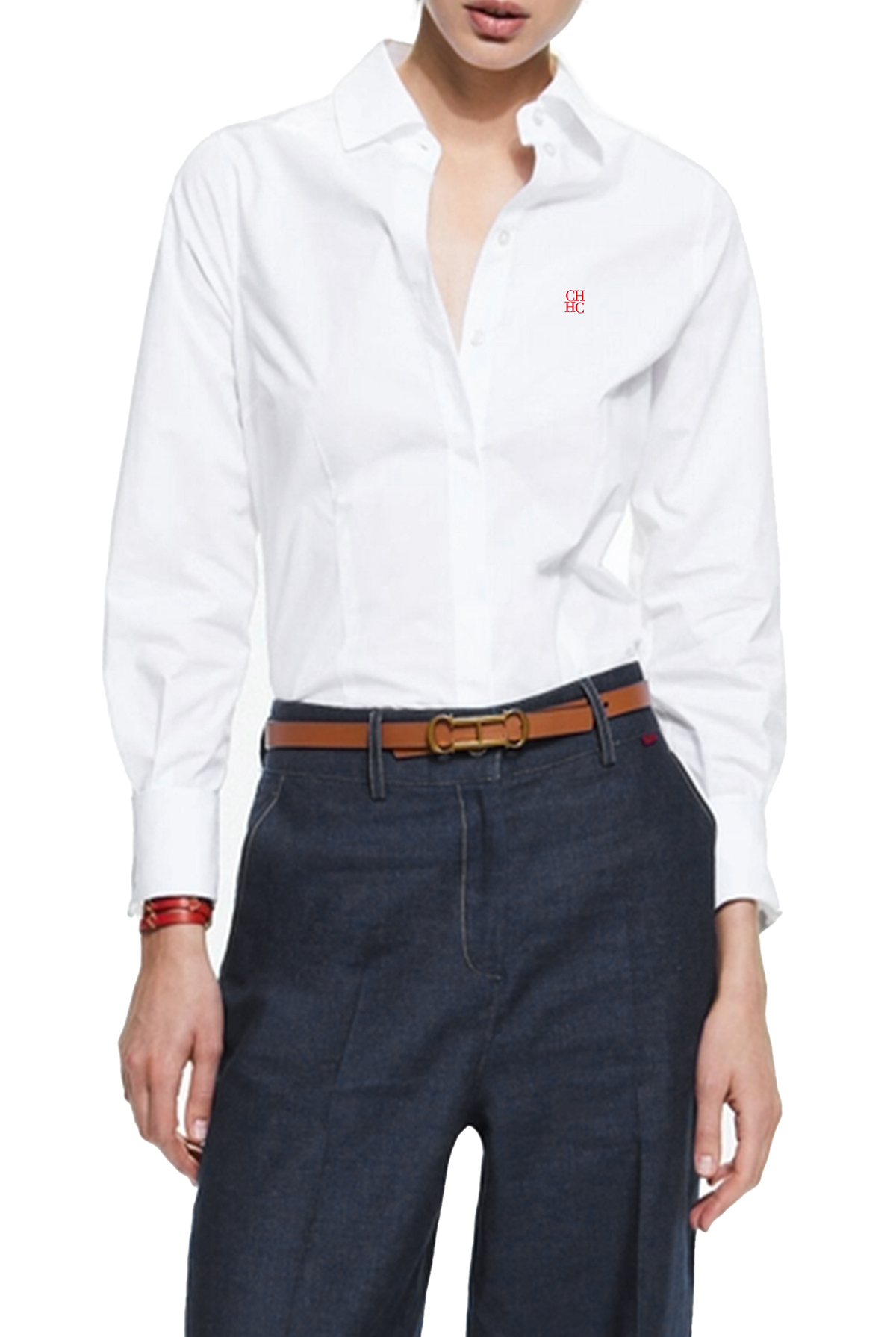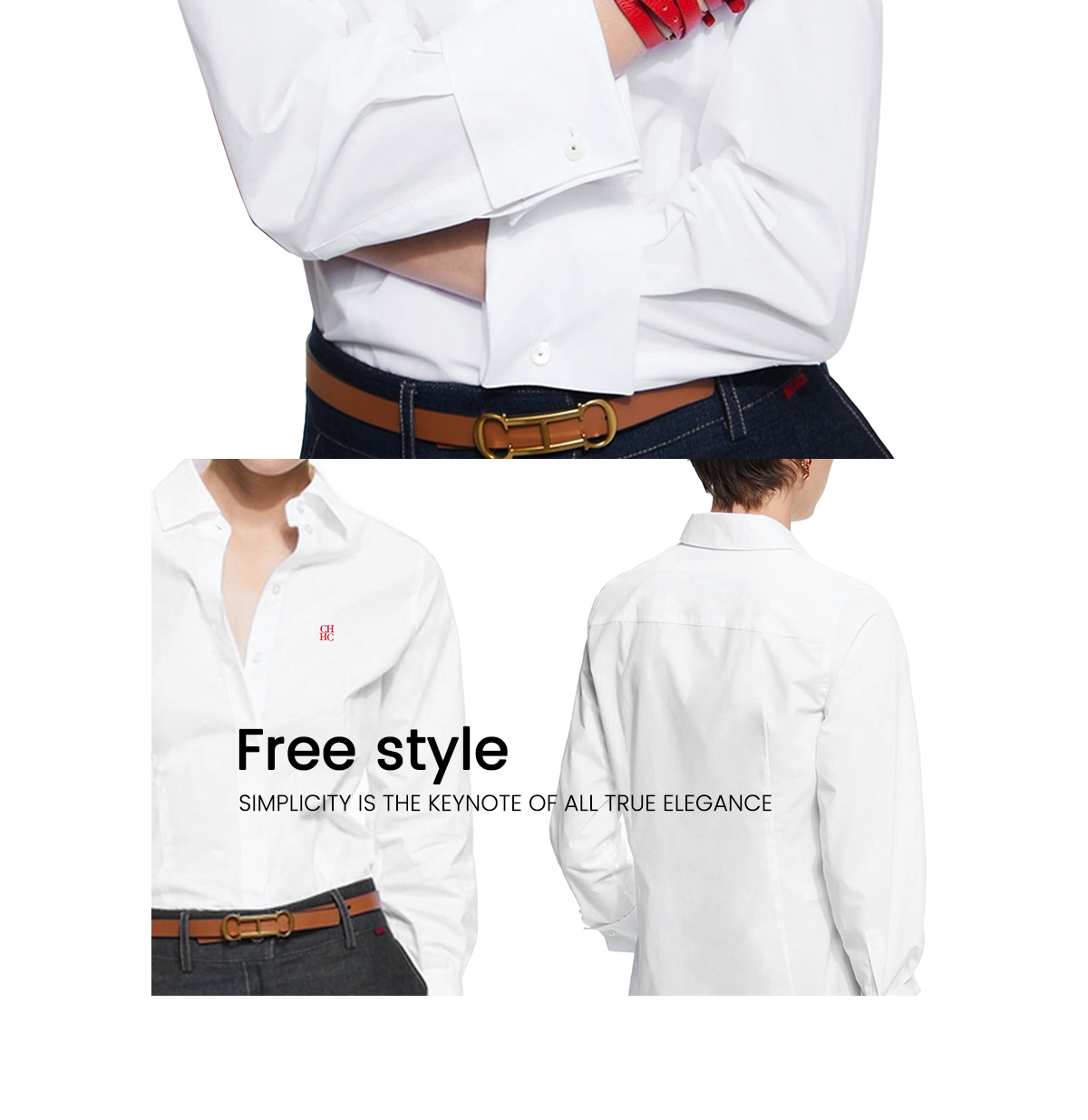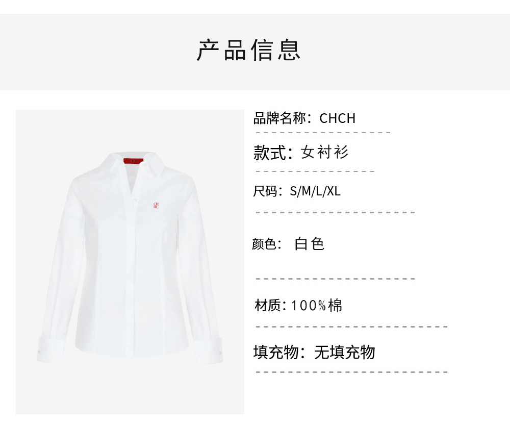 CHCH2025春夏休闲白色时髦衬衫女上衣修身设计感通勤衬衣