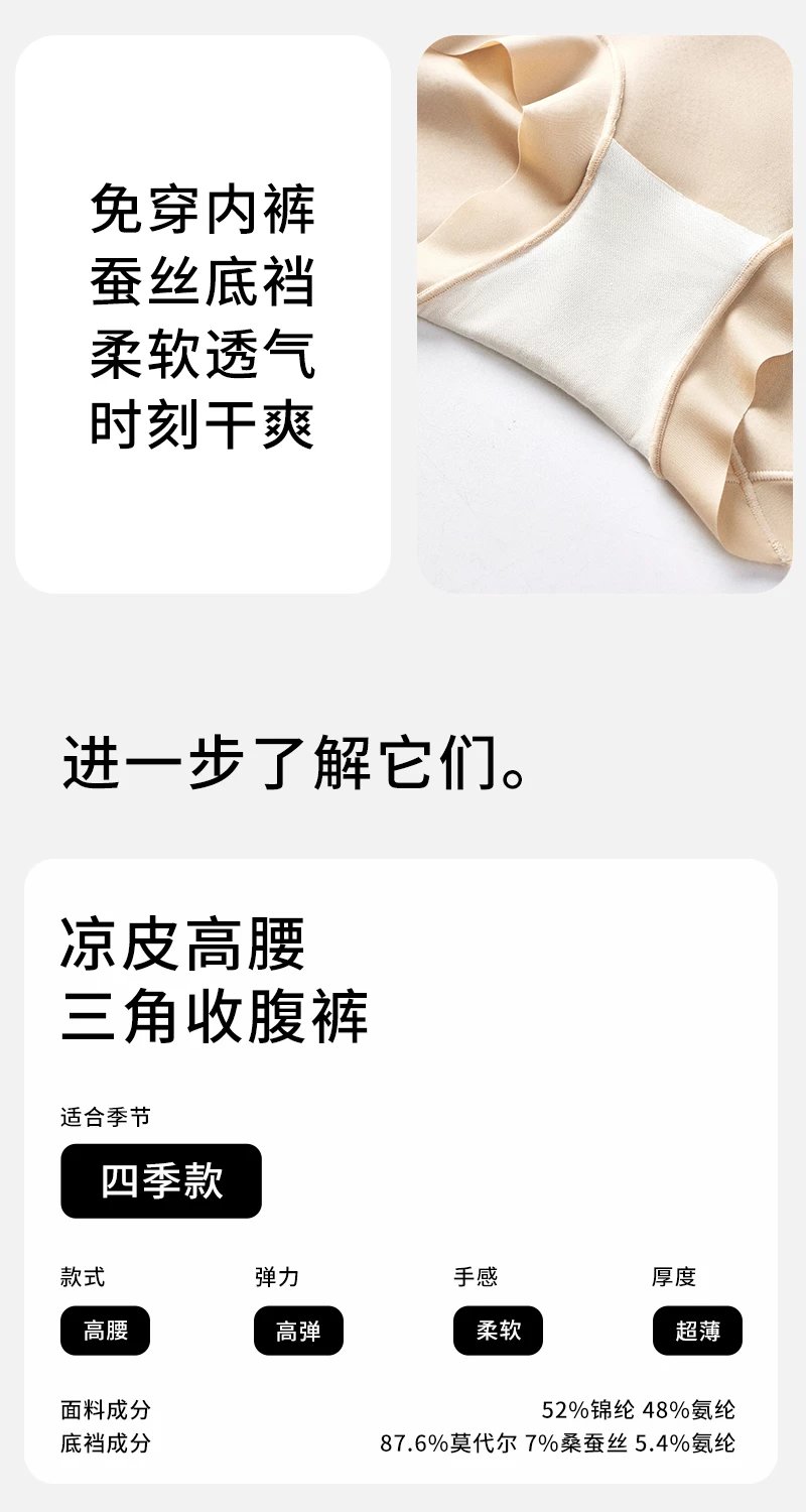半醒凉皮高腰三角收腹裤防滑不卷边抬腿无压力蚕丝底裆舒适免穿内裤一裤多用收腹内裤