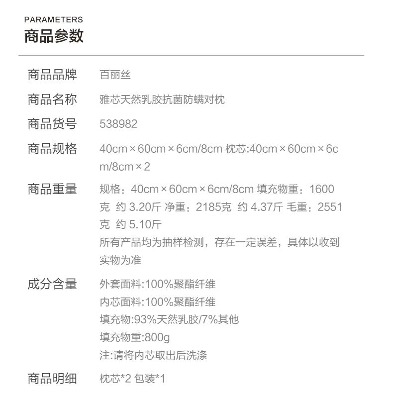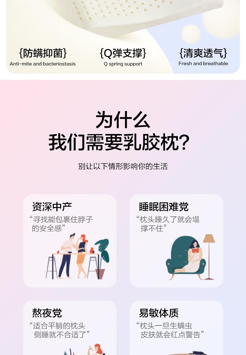 水星集团 乐岚天然乳胶枕抗菌防螨对枕