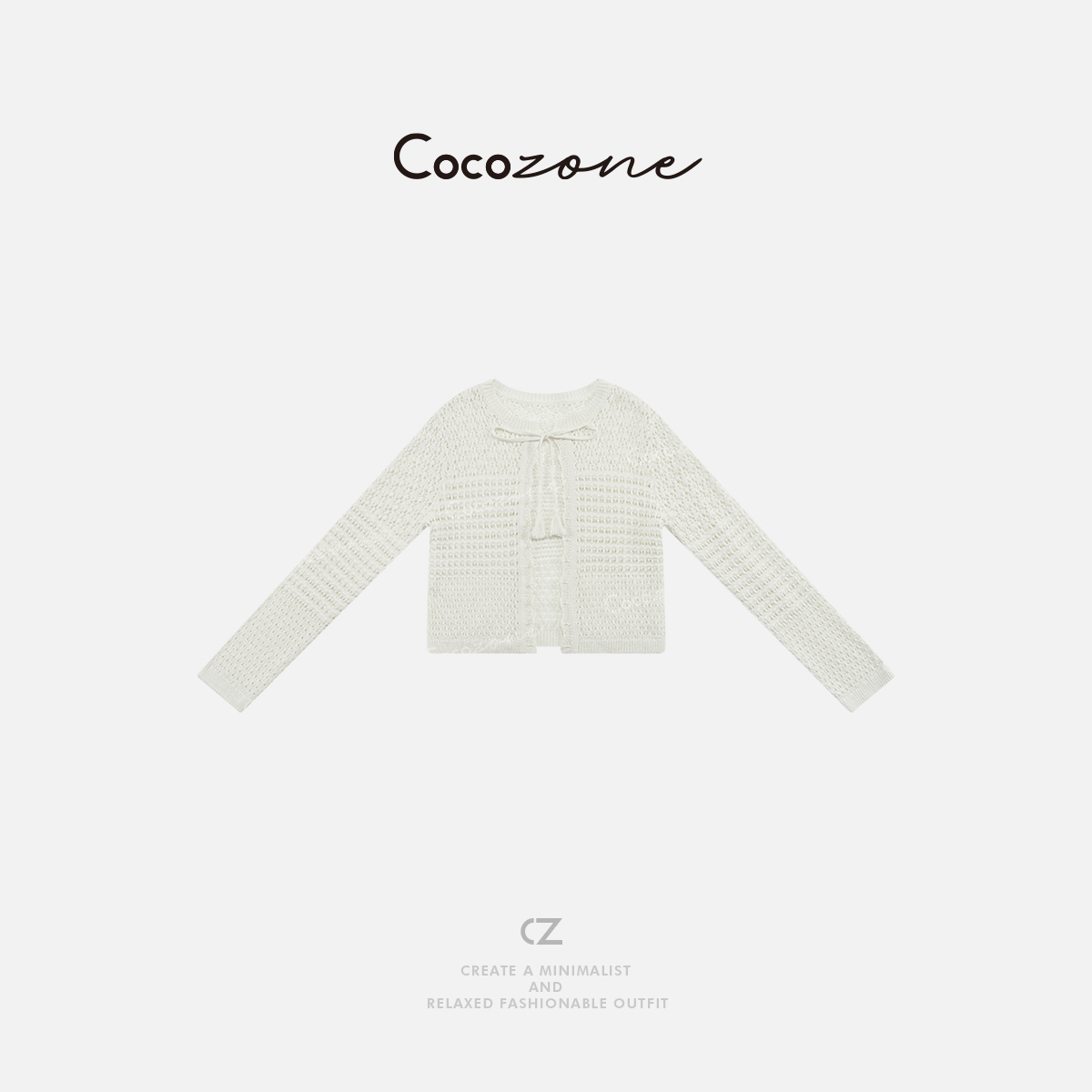 COCO ZONE 刘一一 早春减龄洋气镂空系带薄款针织衫ACD1A0109
