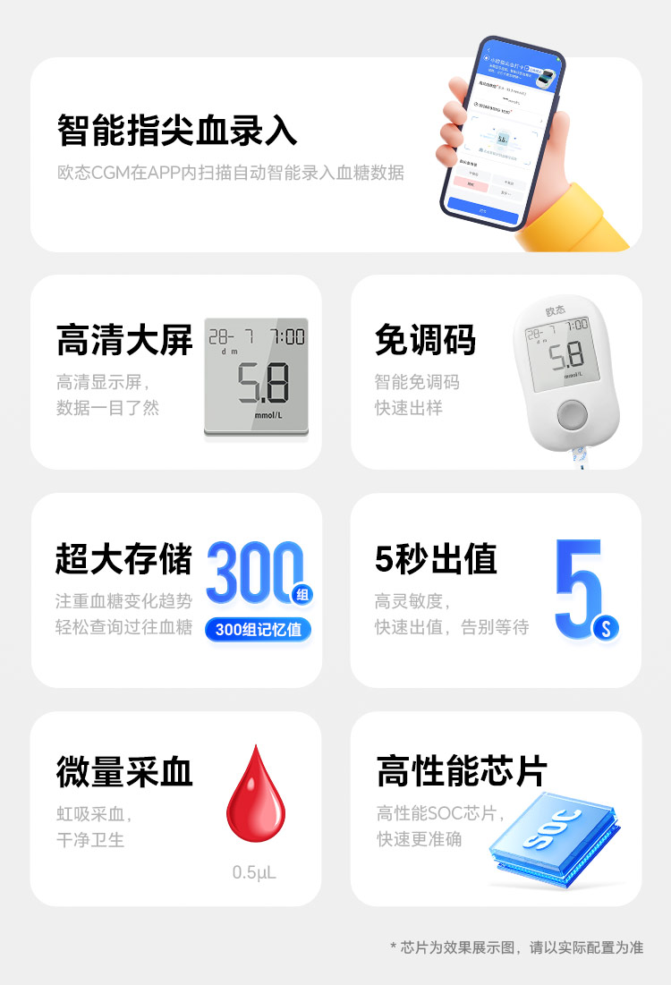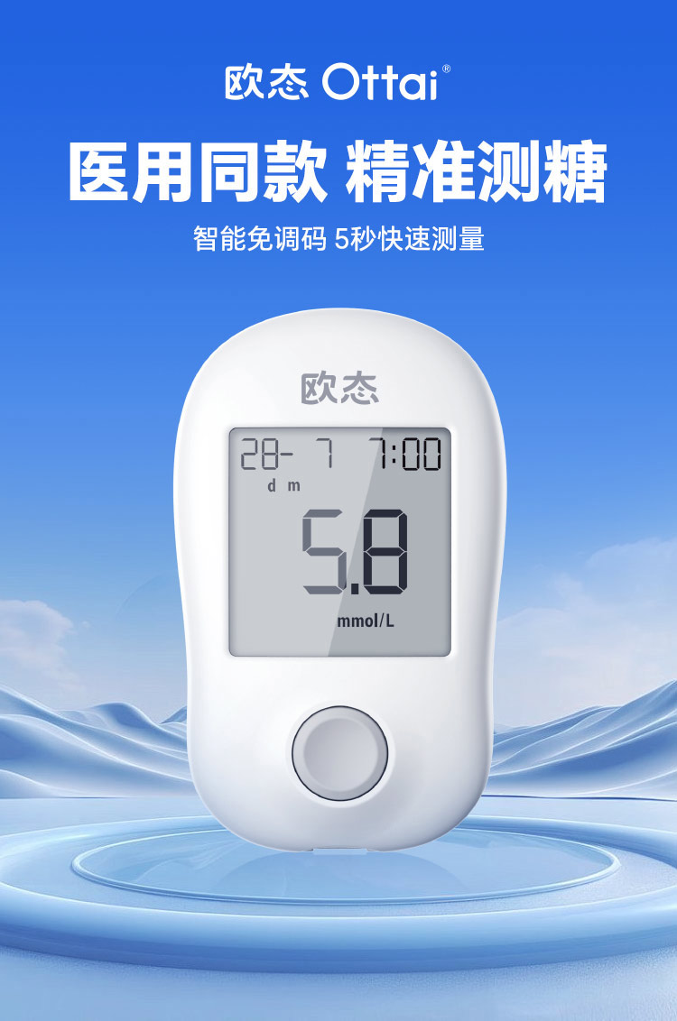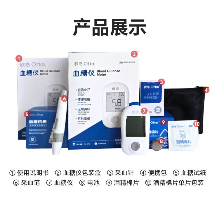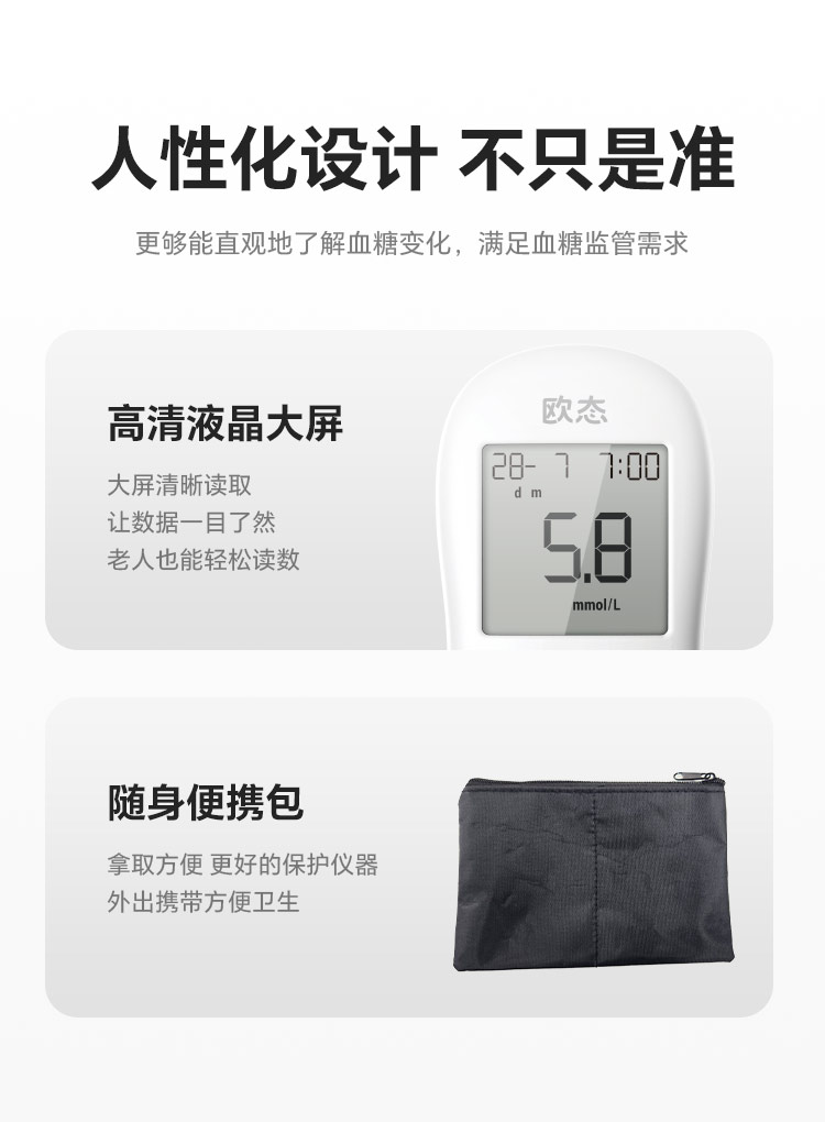 欧态血糖仪VGM02 家用免调指尖血糖检测仪 血糖仪 赠:50支装(血糖试纸+采血针+酒精棉片)+便携包