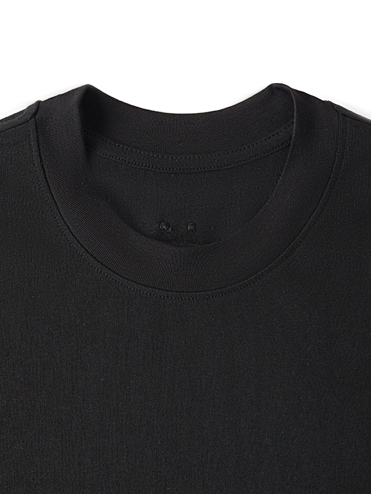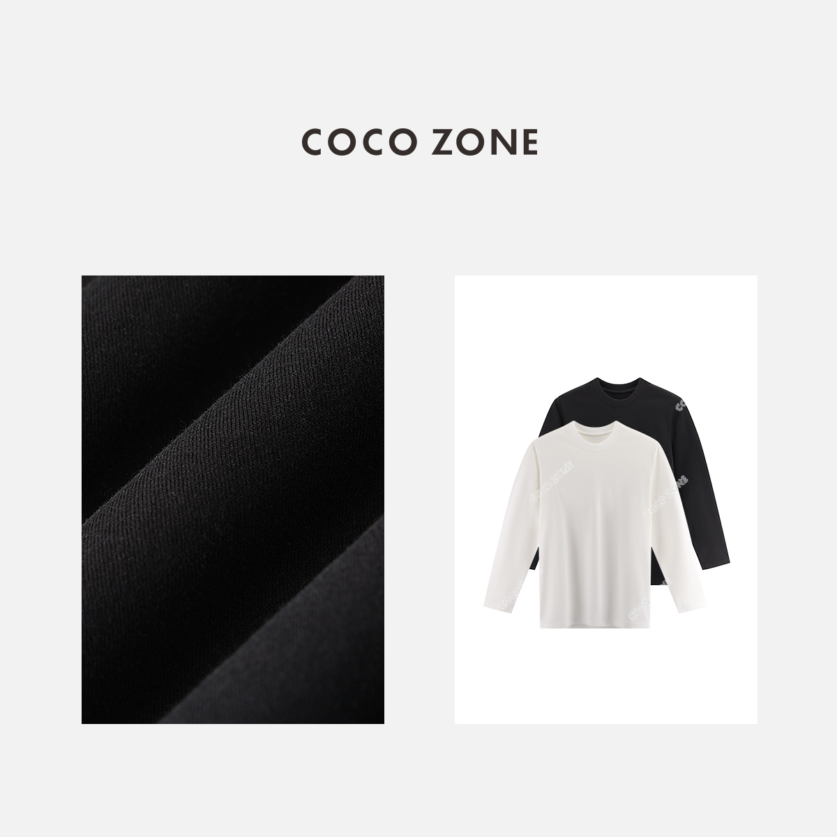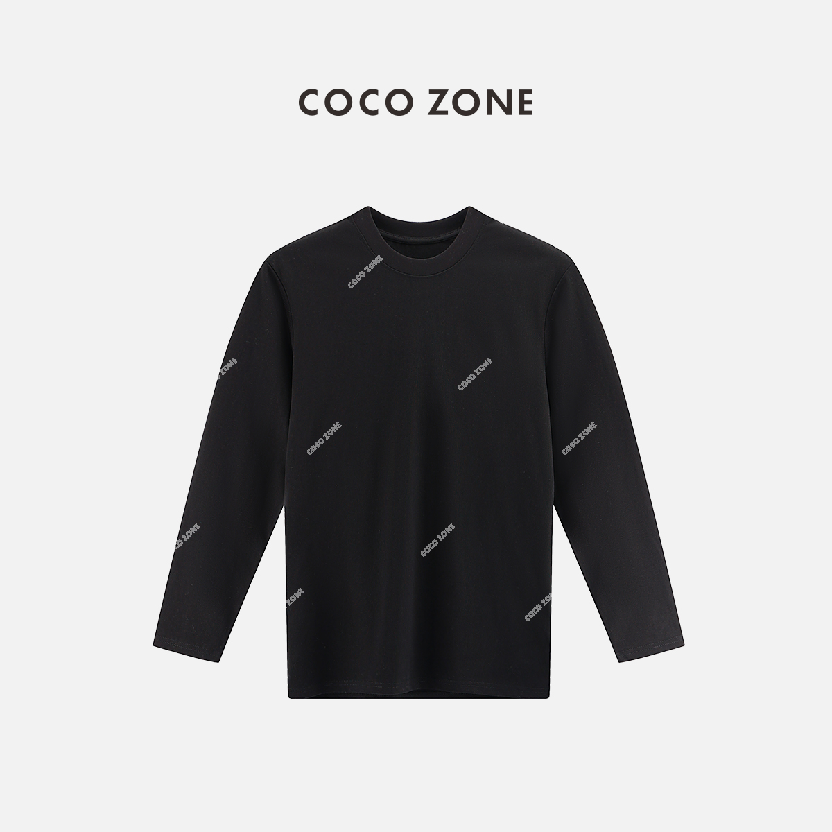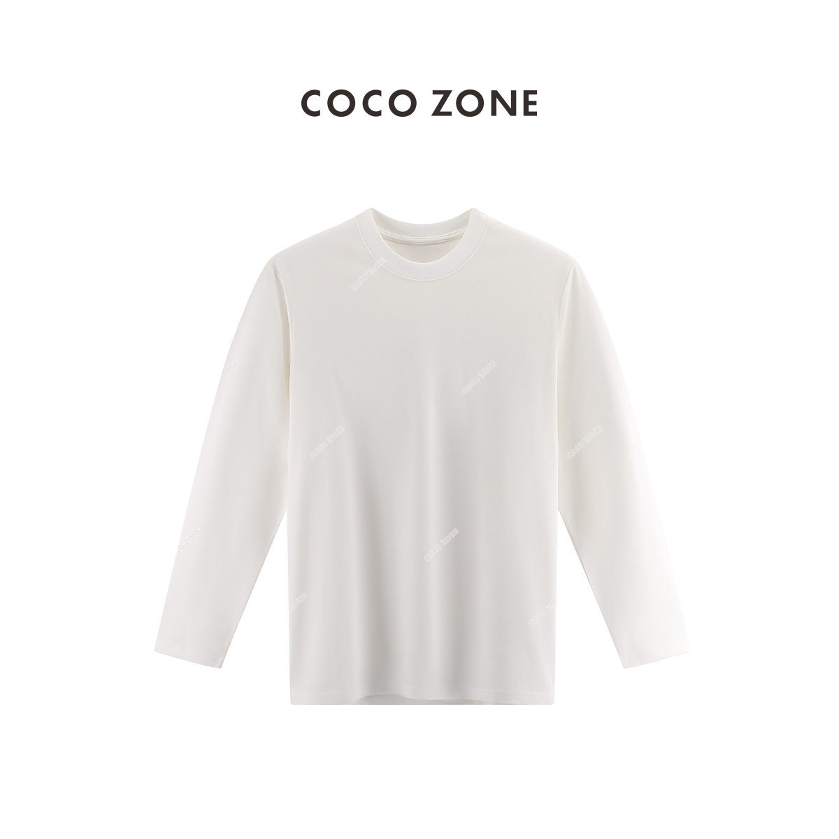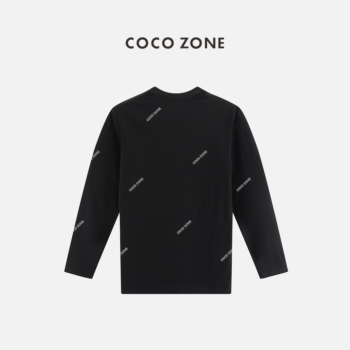 COCO ZONE100棉圆领雪花纱后幅绣花罗纹圆领长袖T恤24C10175