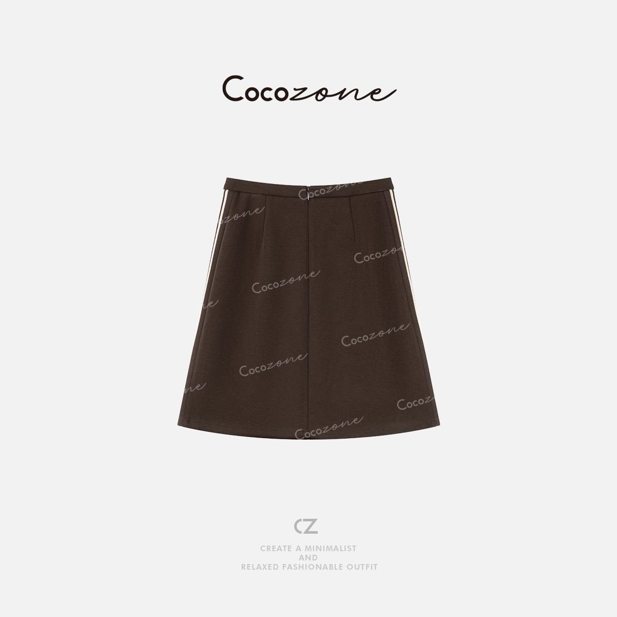 COCO ZONE 刘一一“棕咖半裙”简约侧边撞色条纹垂坠感半裙CD2A1420