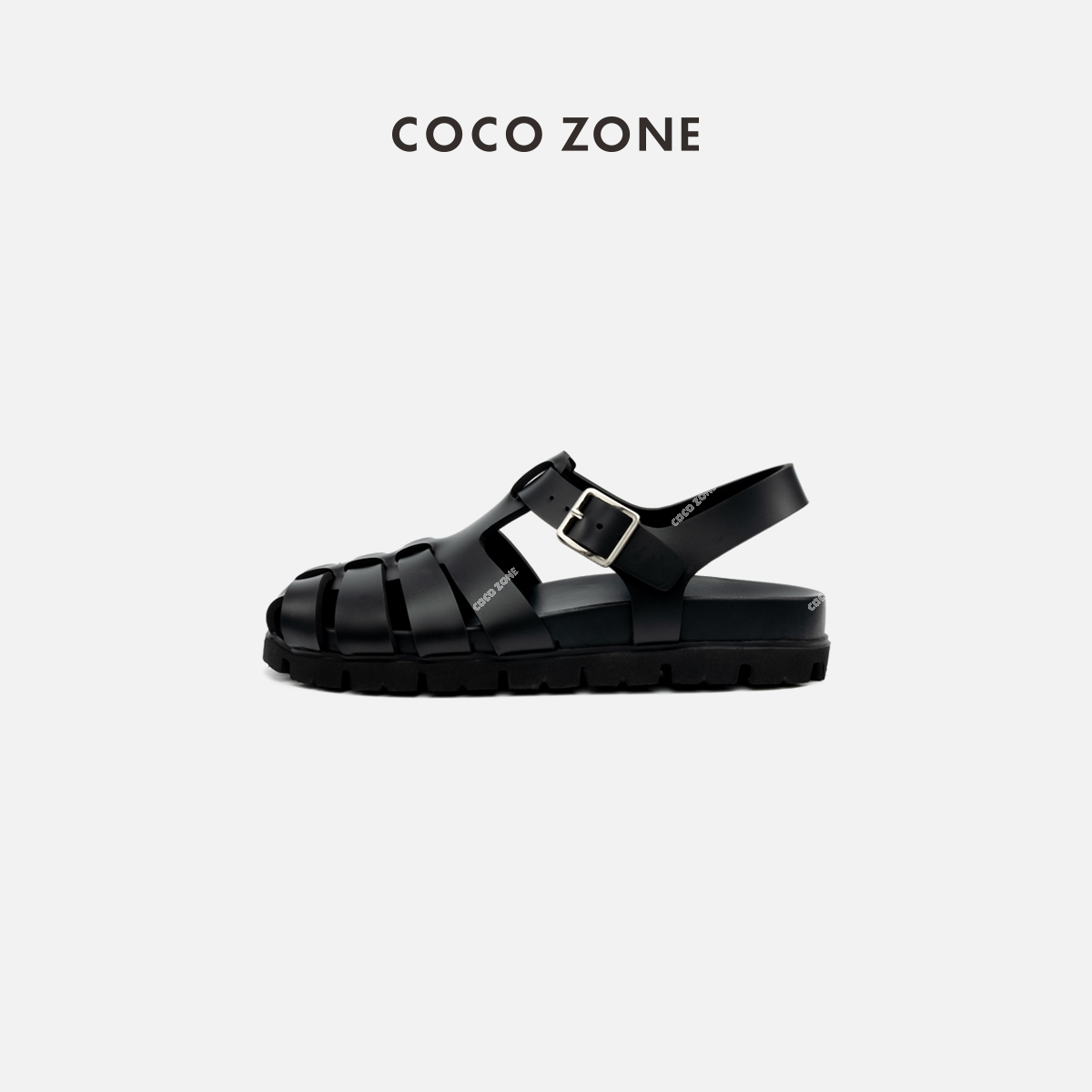 COCO ZONE2024夏季平底透气凉鞋复古镂空扣式纯色女鞋CC2B0450