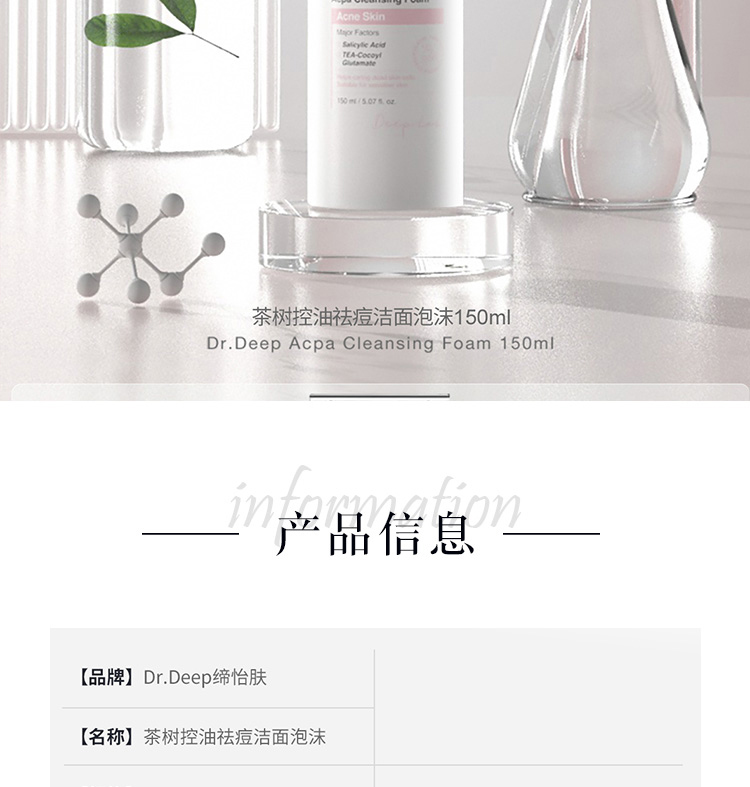 Dr.Deep缔怡肤茶树控油祛痘洁面泡沫150ml深层清洁水杨酸洗面奶