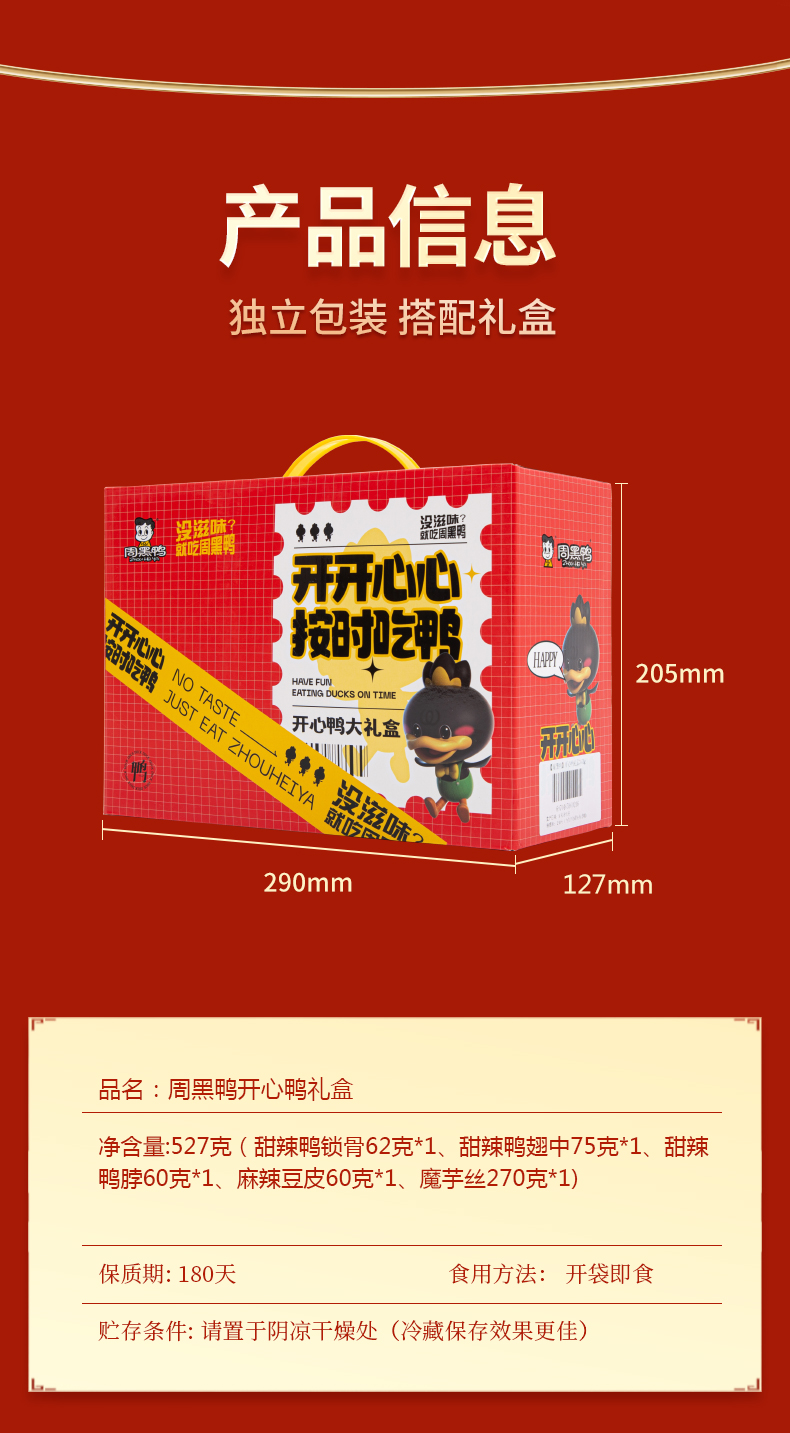 周黑鸭开心鸭卤味礼盒527g