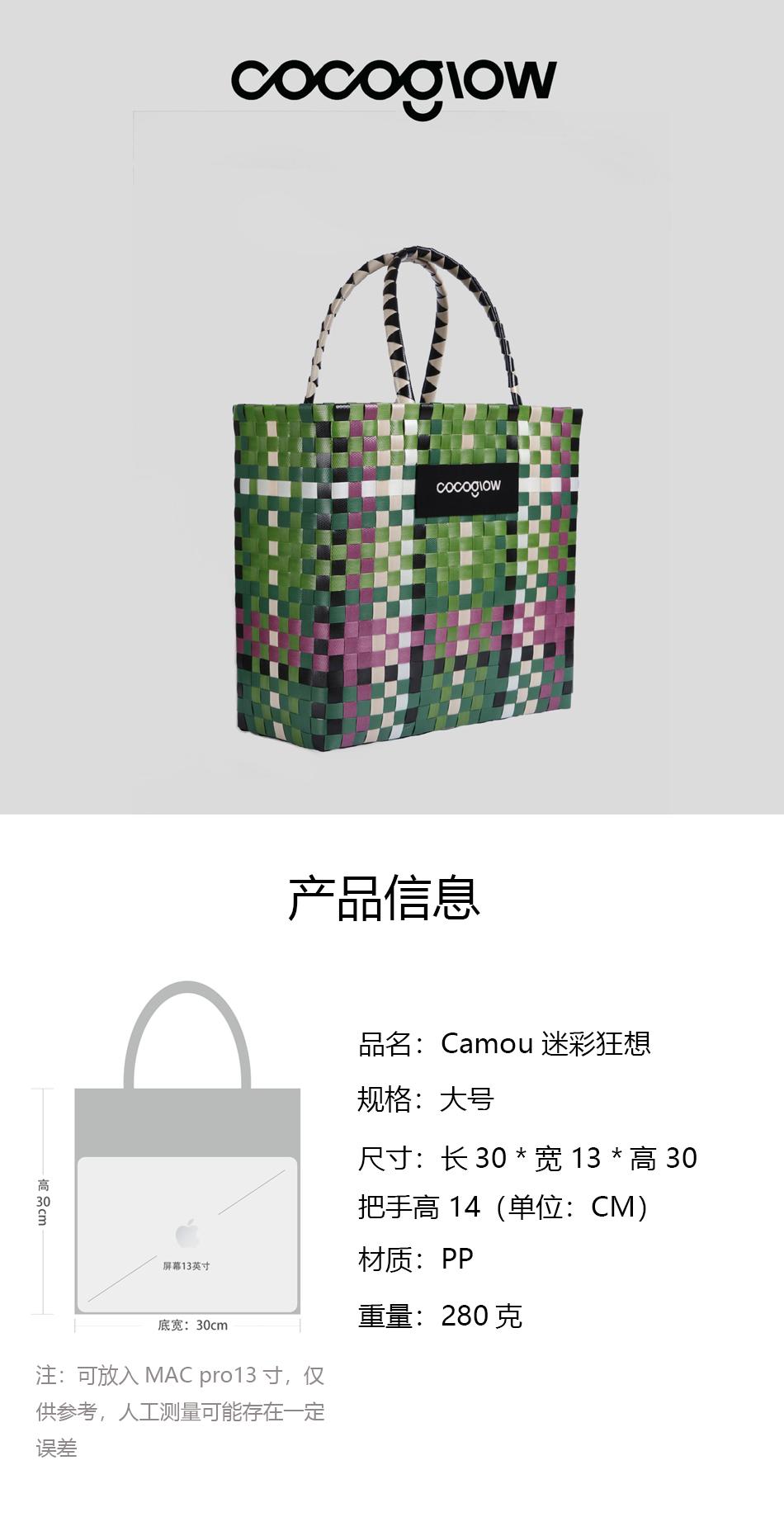 cocoglow·CAMOU_迷彩狂想大号女士手提包手工工艺编织菜篮子