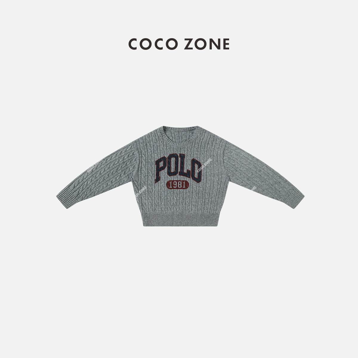 COCO ZONE 美式羊毛织慵懒风绞花纹字母针织衫 23C19894