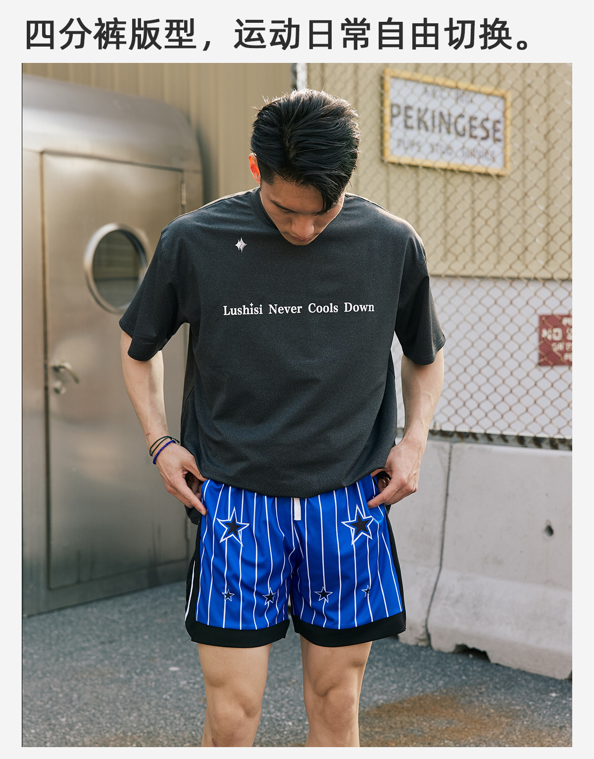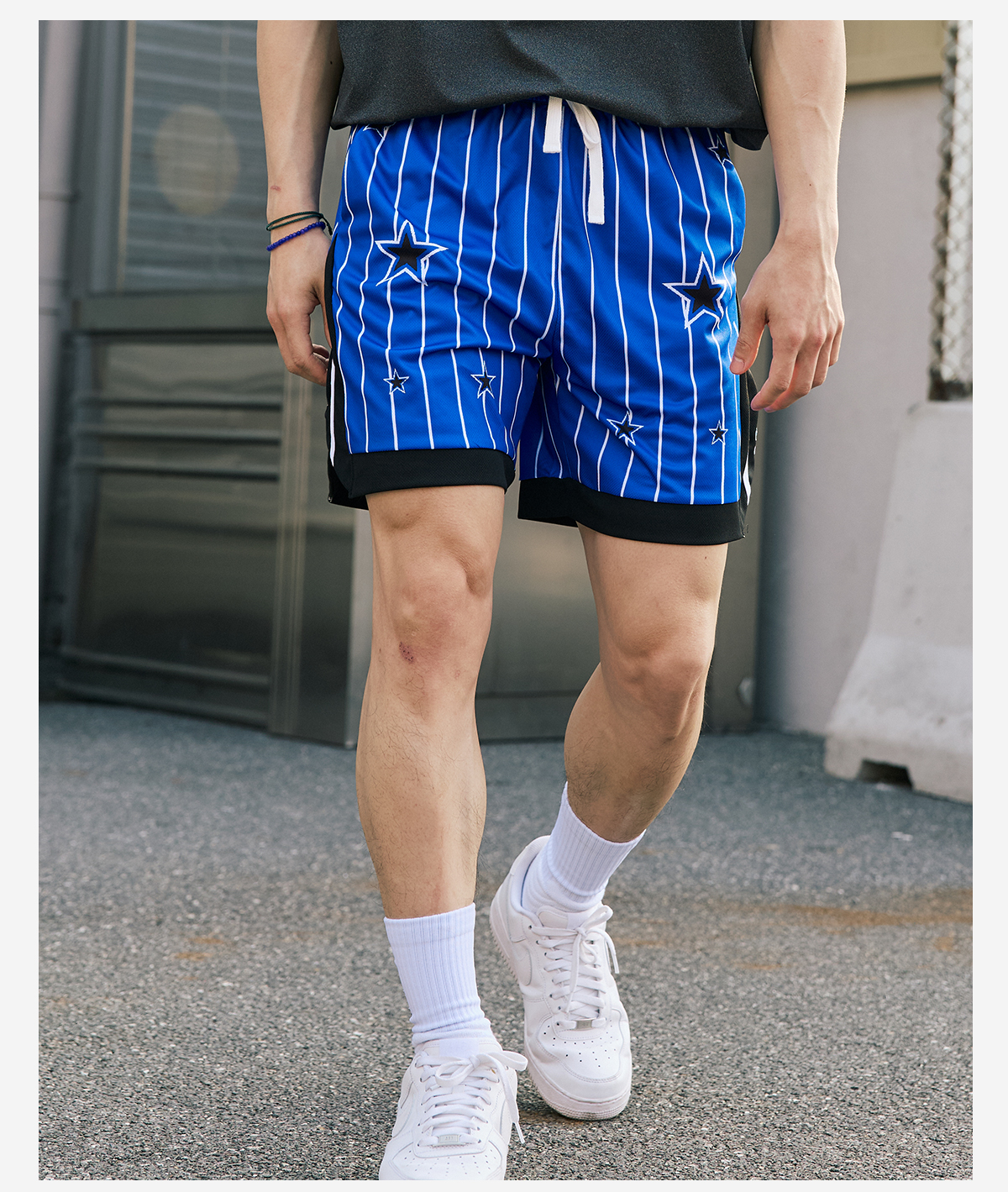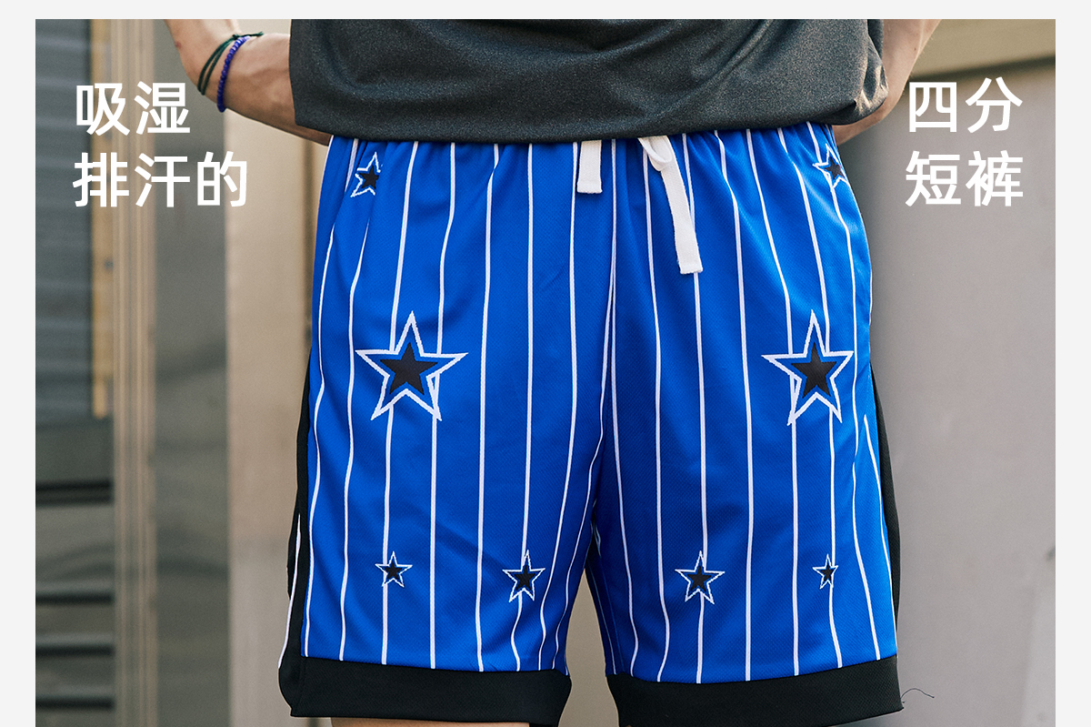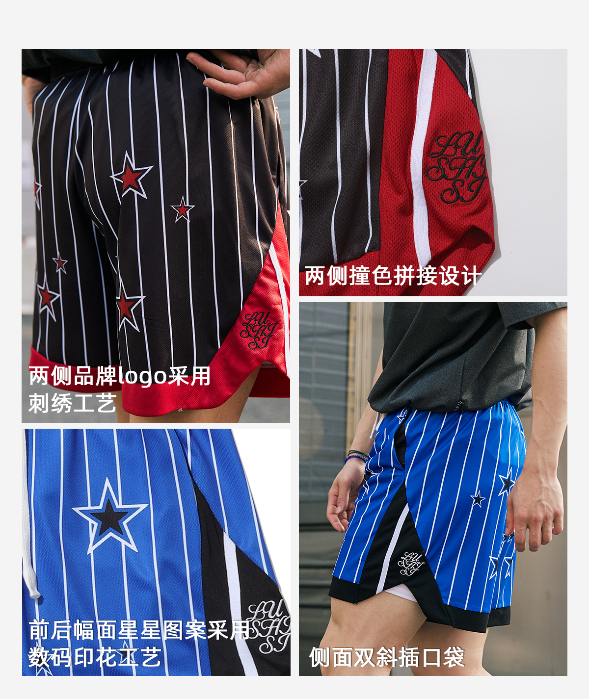 LUSHISI星蓝主题运动复古条纹篮球美式街头潮流训练跑步五分短裤