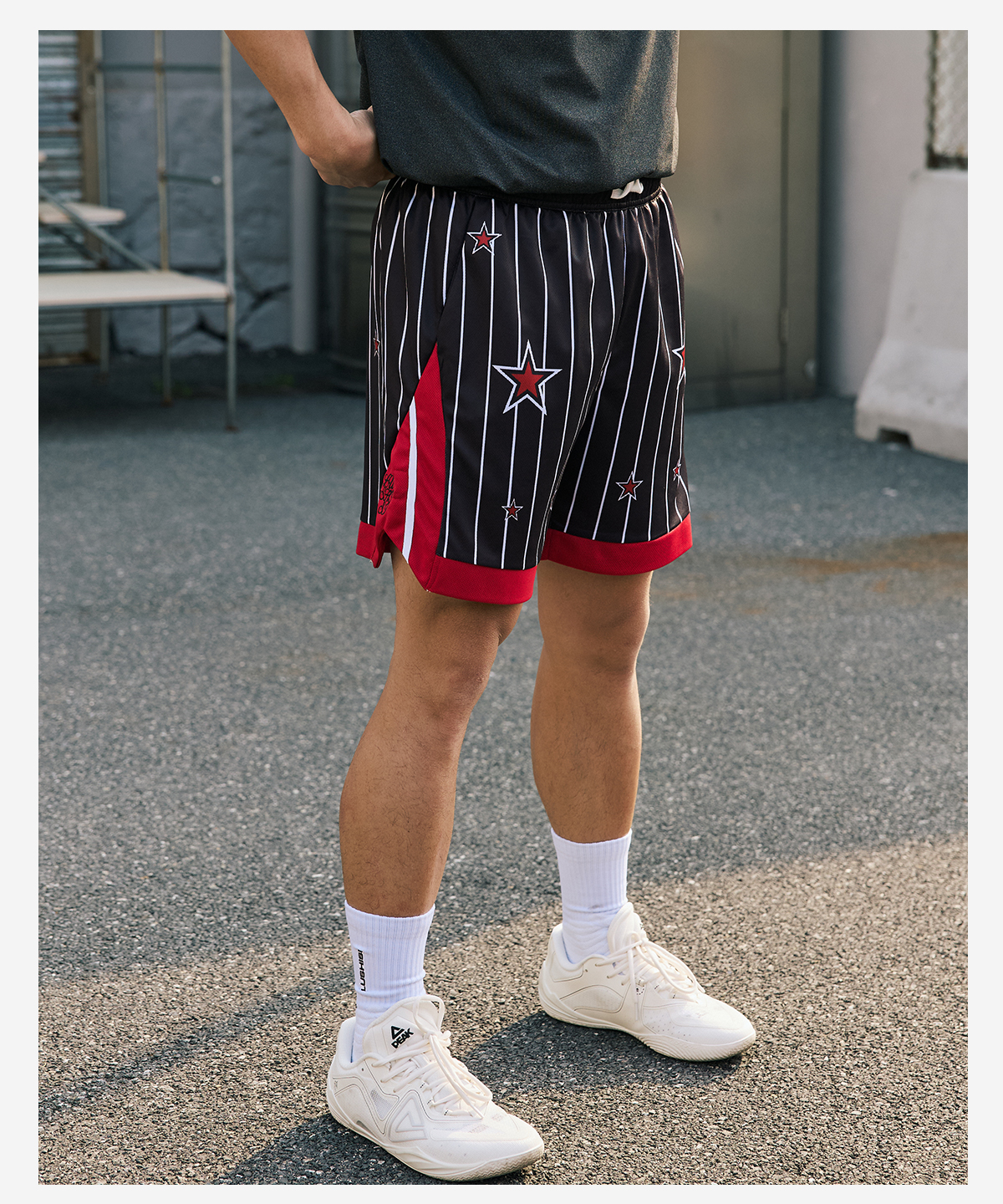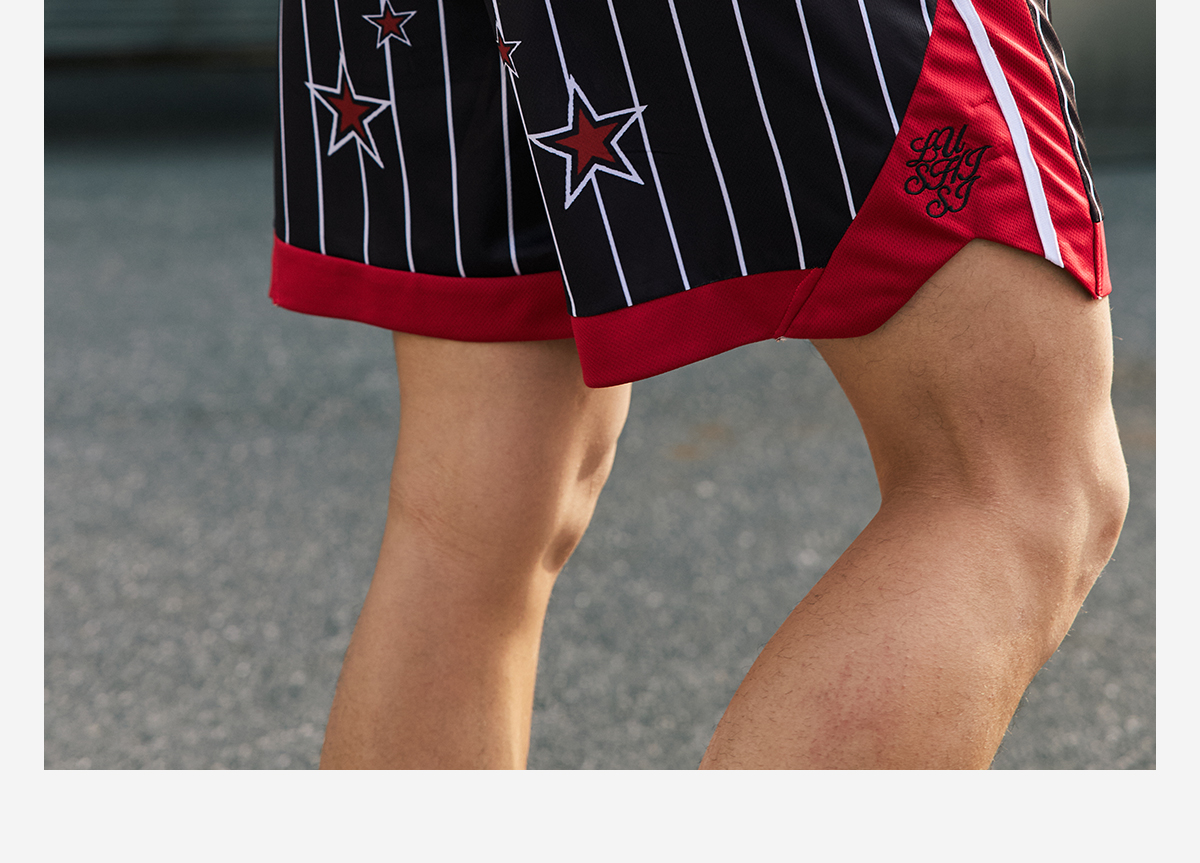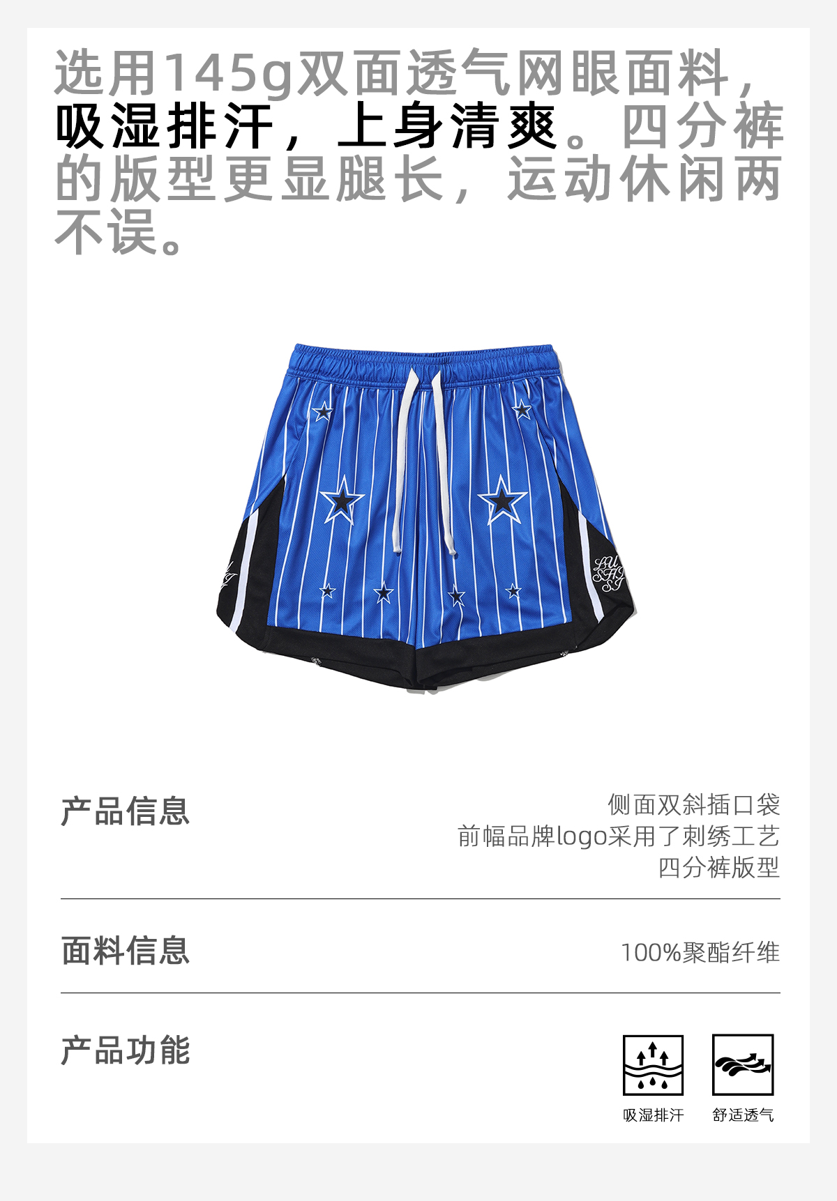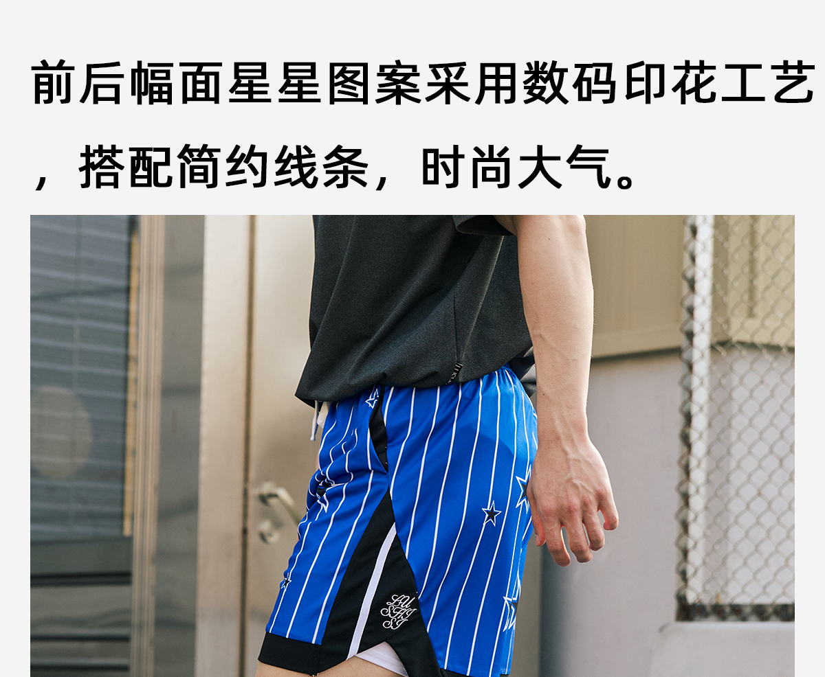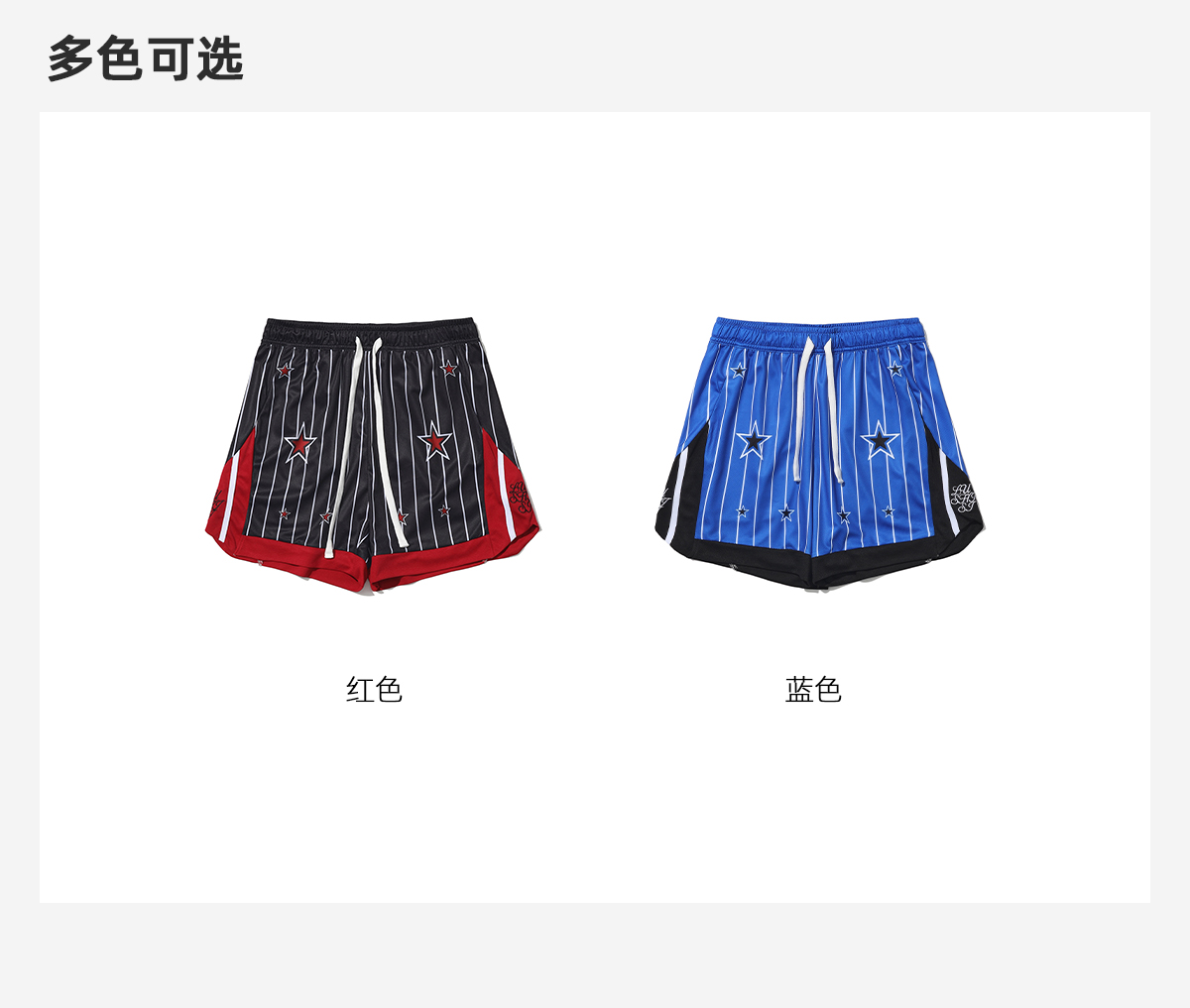 LUSHISI星蓝主题运动复古条纹篮球美式街头潮流训练跑步五分短裤