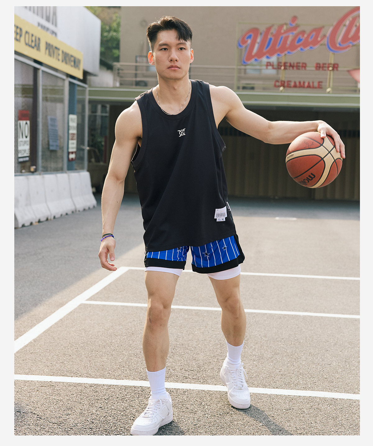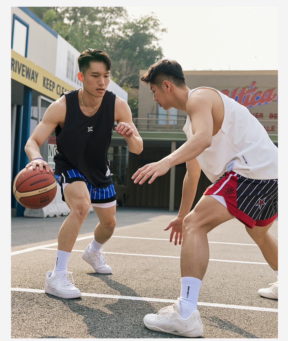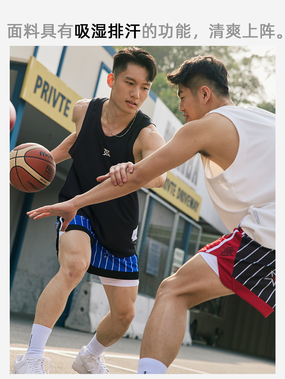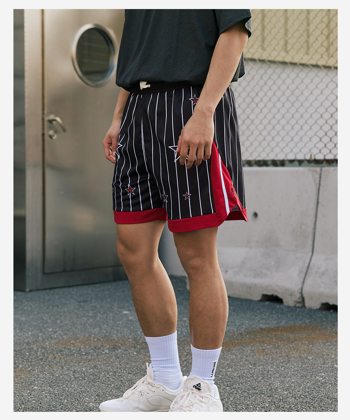 LUSHISI星蓝主题运动复古条纹篮球美式街头潮流训练跑步五分短裤