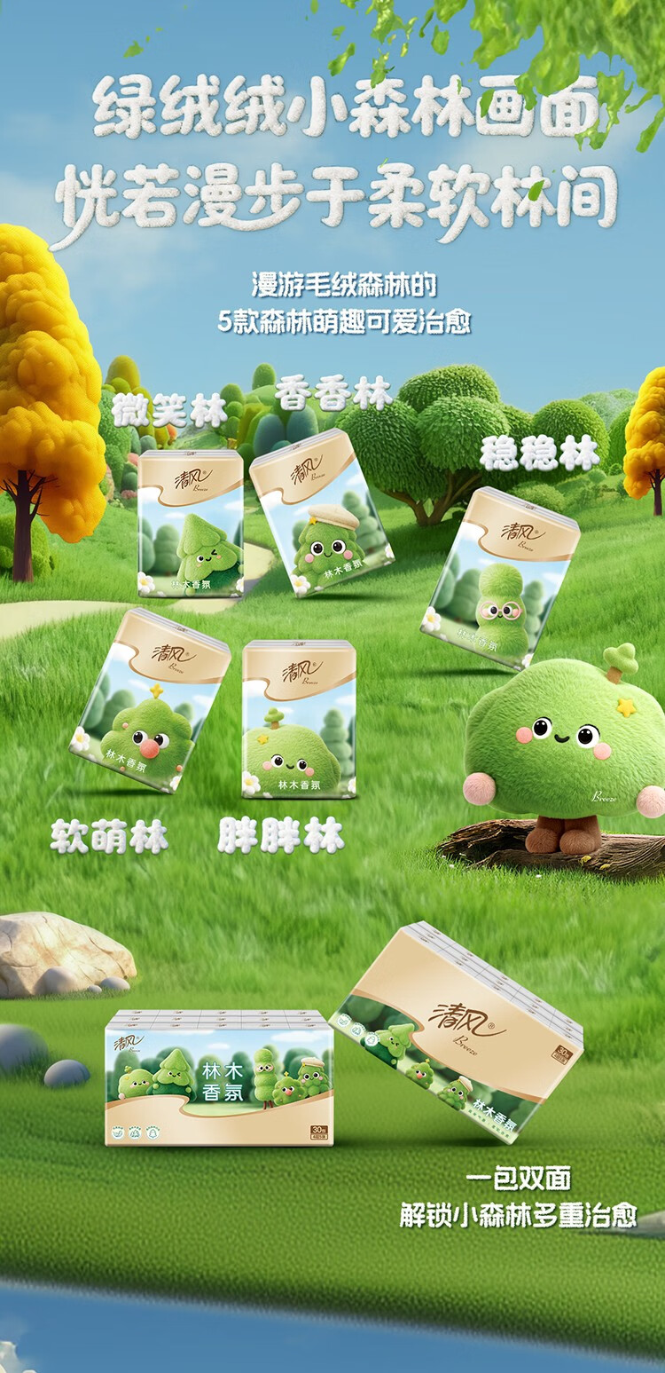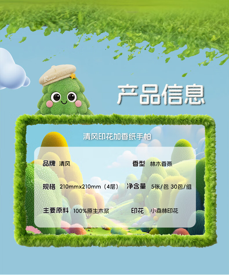 清风森林之息丝柔系列4层5张/包*30纸手帕