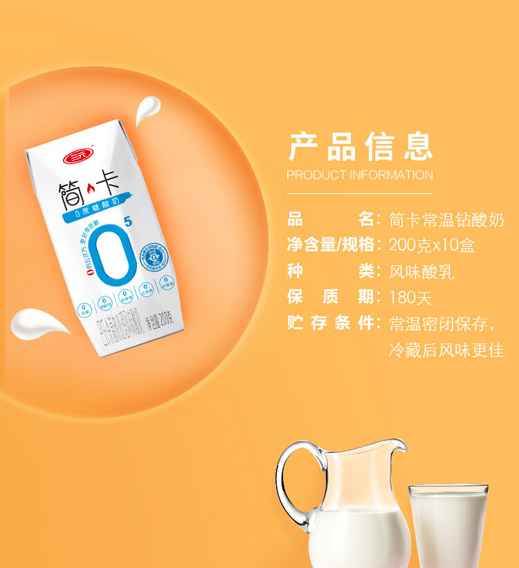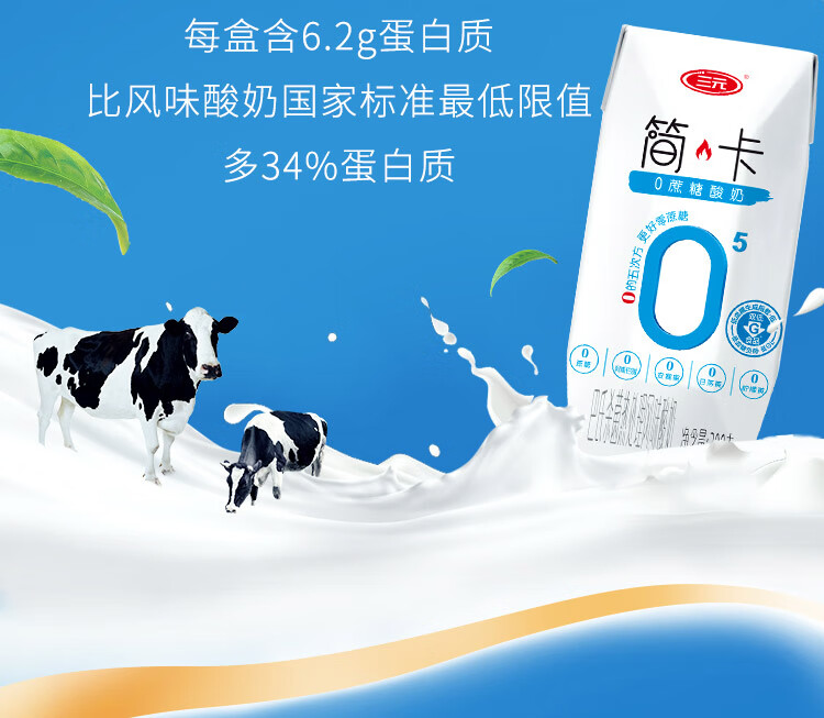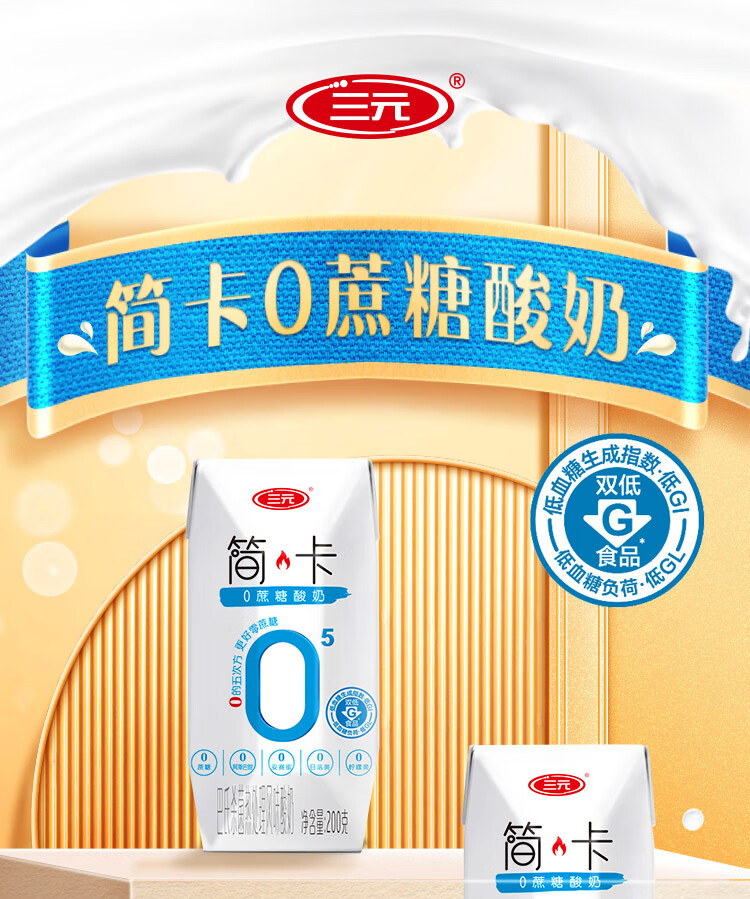 三元(SAN YUAN)简卡0蔗糖酸奶200g*10盒礼盒