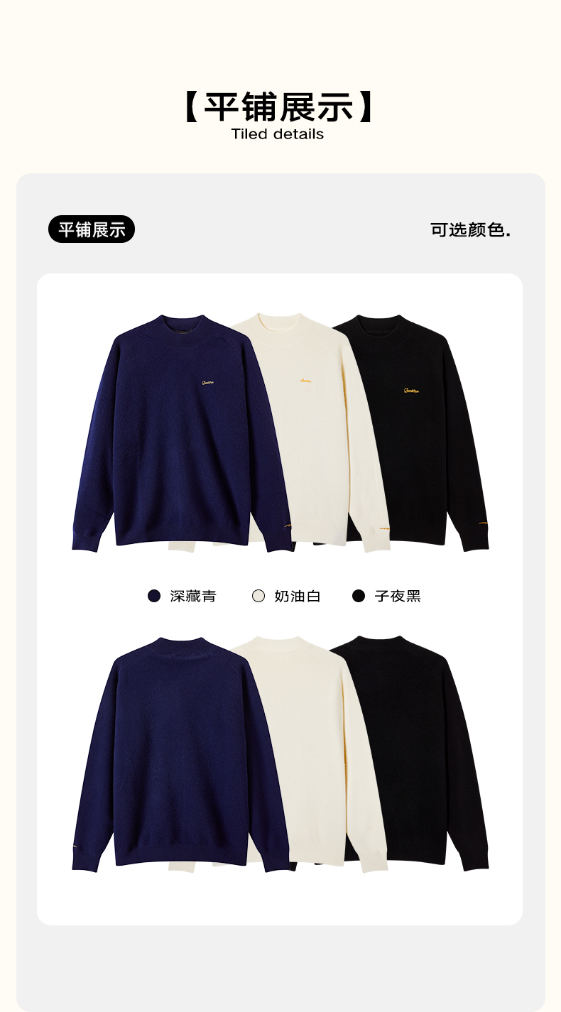 潮牌100%羊毛秋冬针织衫男士简约毛衣纯色长袖毛衣时NP5ASW21