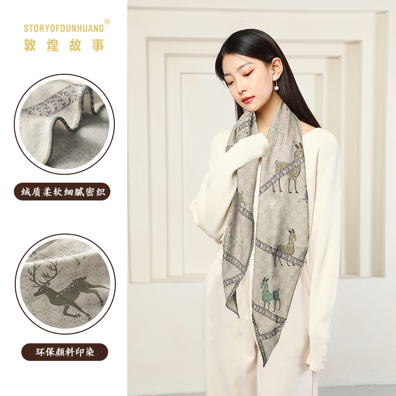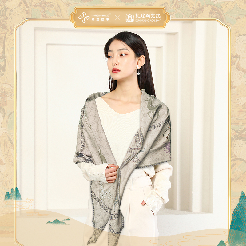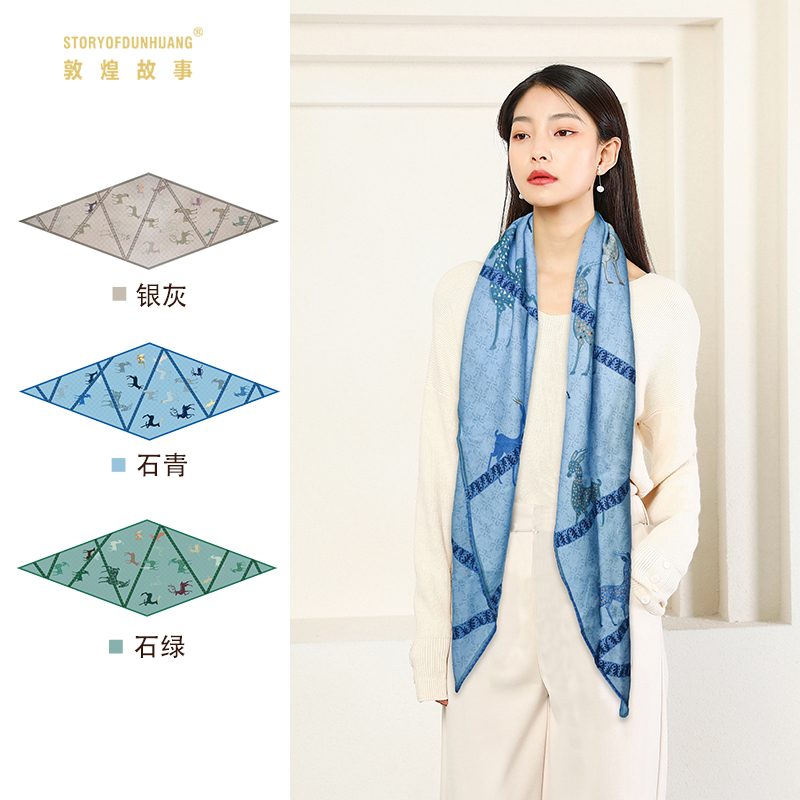 敦煌故事桑蚕丝春秋印花送礼中国风女丝巾