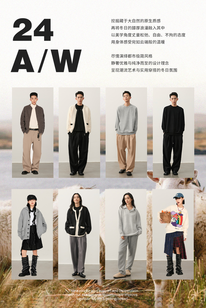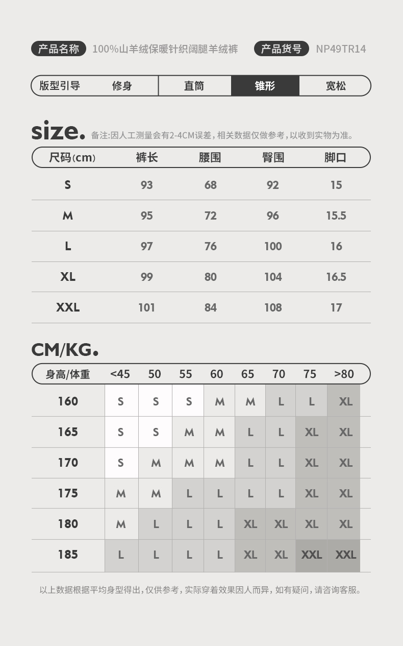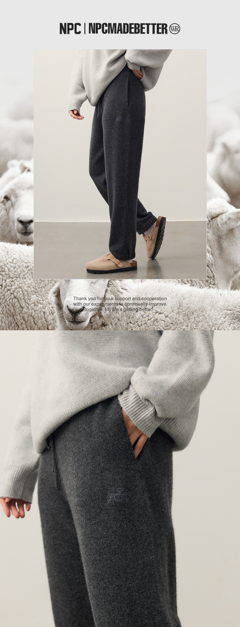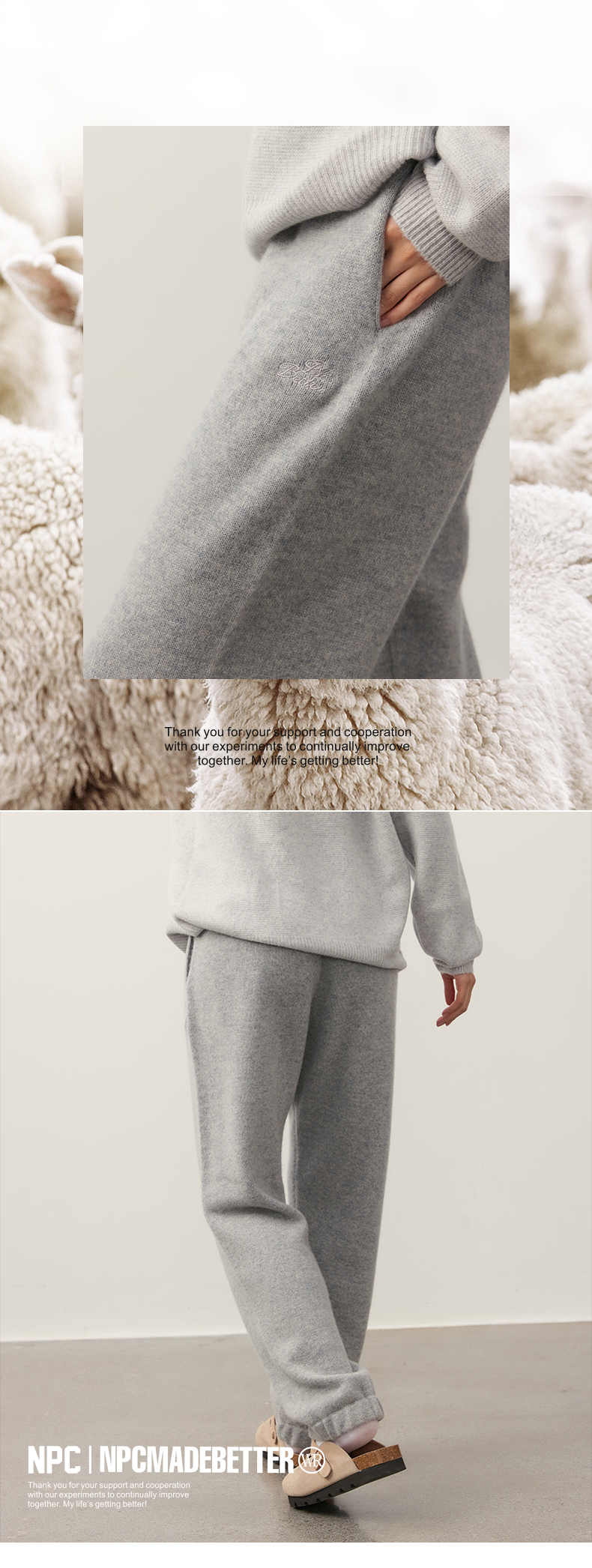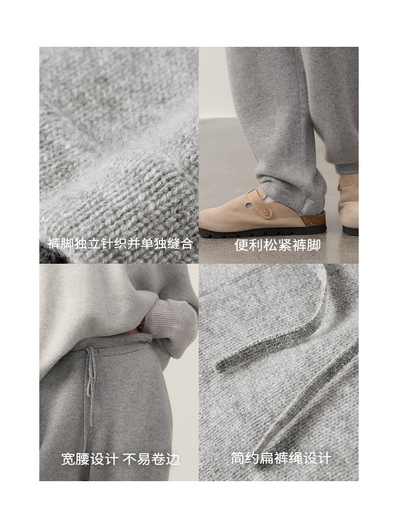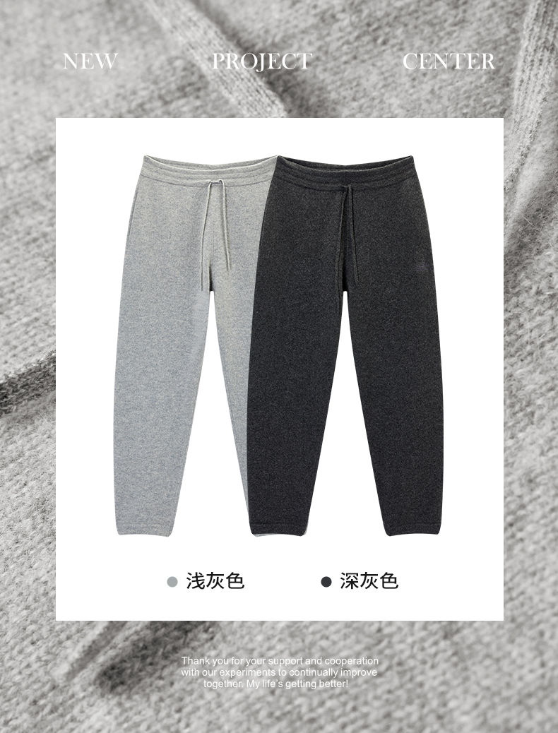 NPC潮牌100%山羊绒针织休闲阔腿长裤男保暖宽松抽绳春秋NP49TR14
