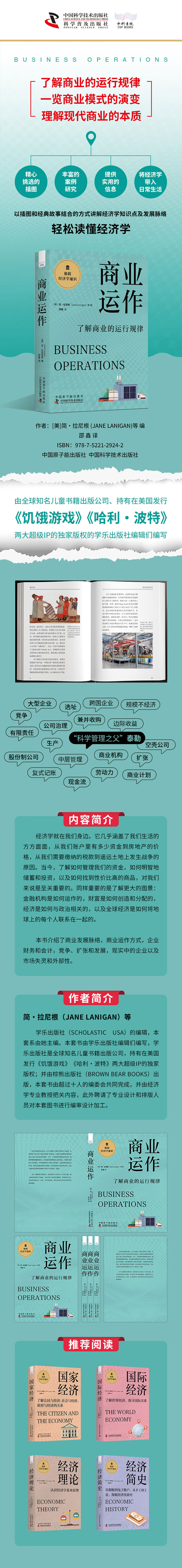 从个人理财到全球经济,该套系的6本书被分成6个不同主题,深入探讨经济的方方面面。本书介绍了商业发展脉络,商业运作方式,企业财务和会计,竞争、扩张和发展,现实中的企业以及市场失灵和外部性。