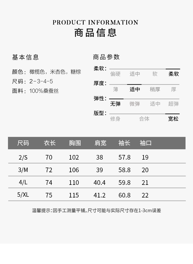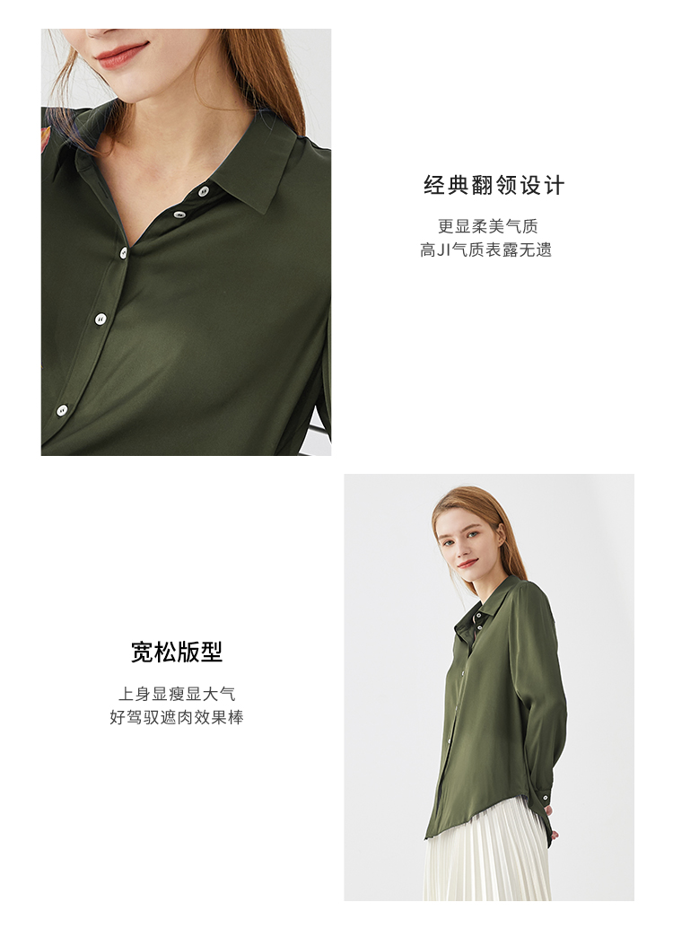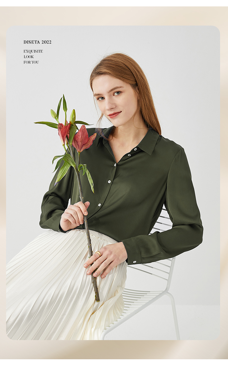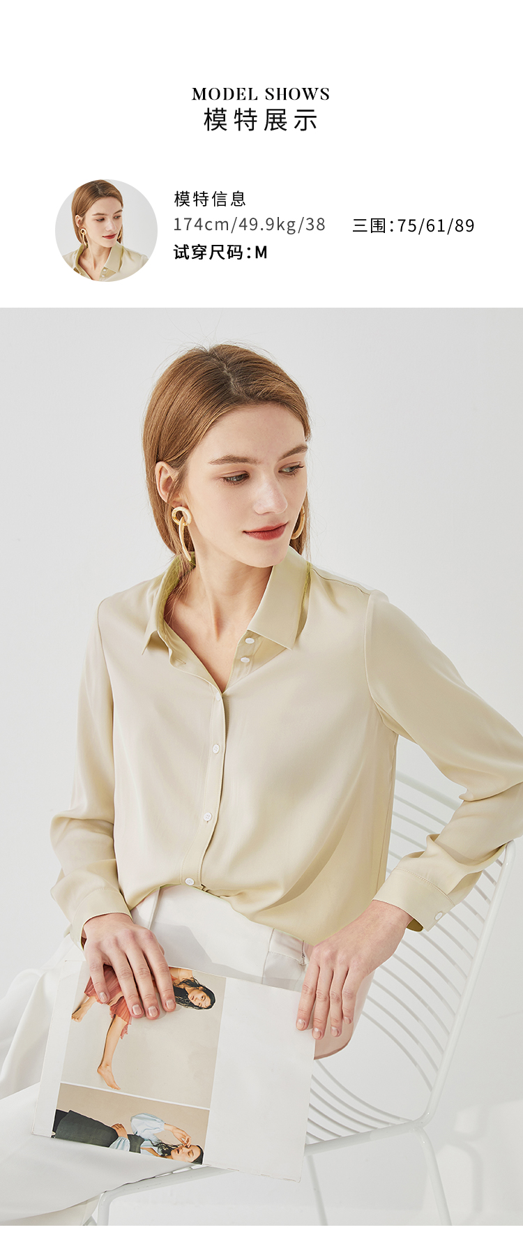 玳莎重磅100%桑蚕丝女式经典翻领真丝衬衫 CC31322