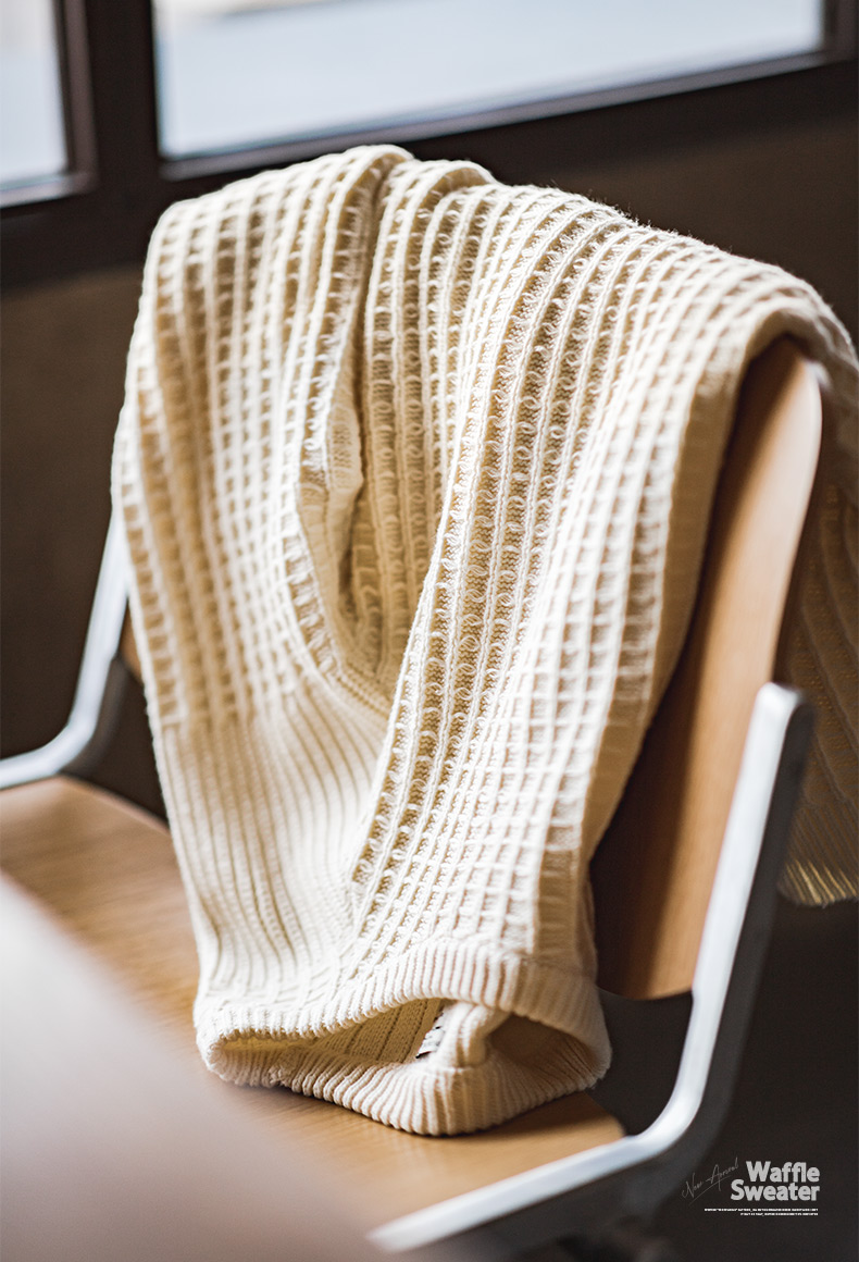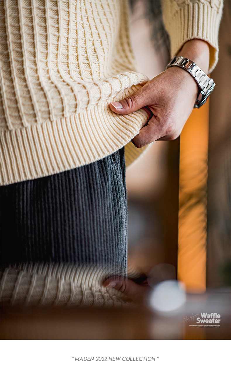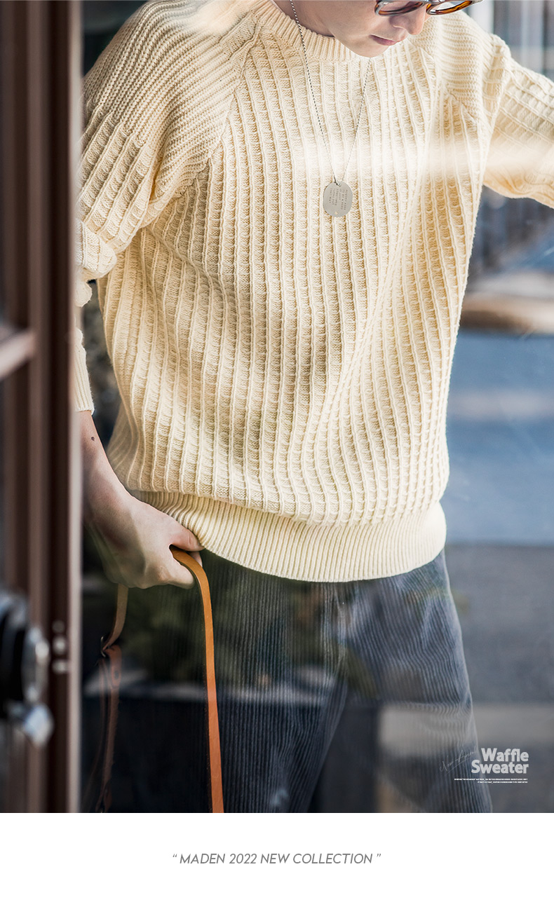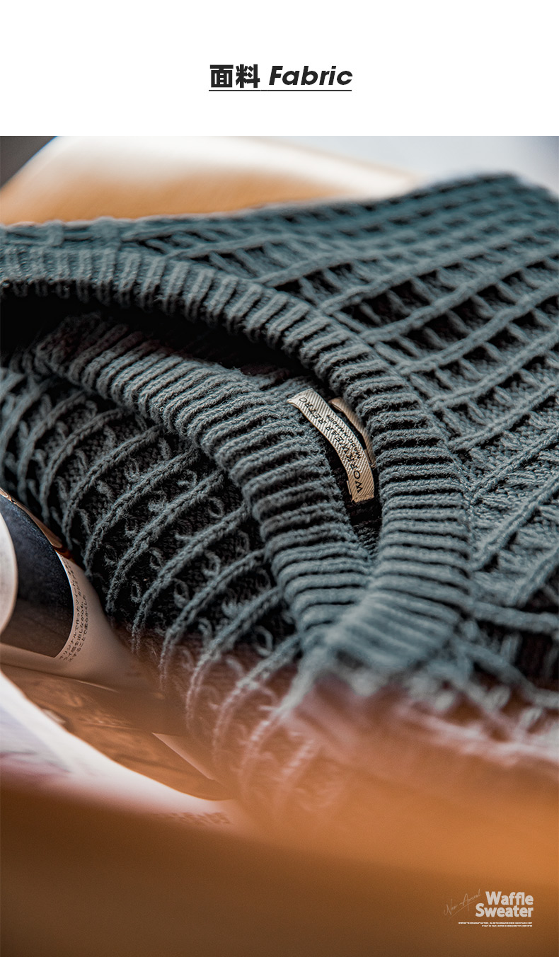 工装优选 美式休闲华夫格圆领针织衫保暖套头内搭打底毛衣男秋冬