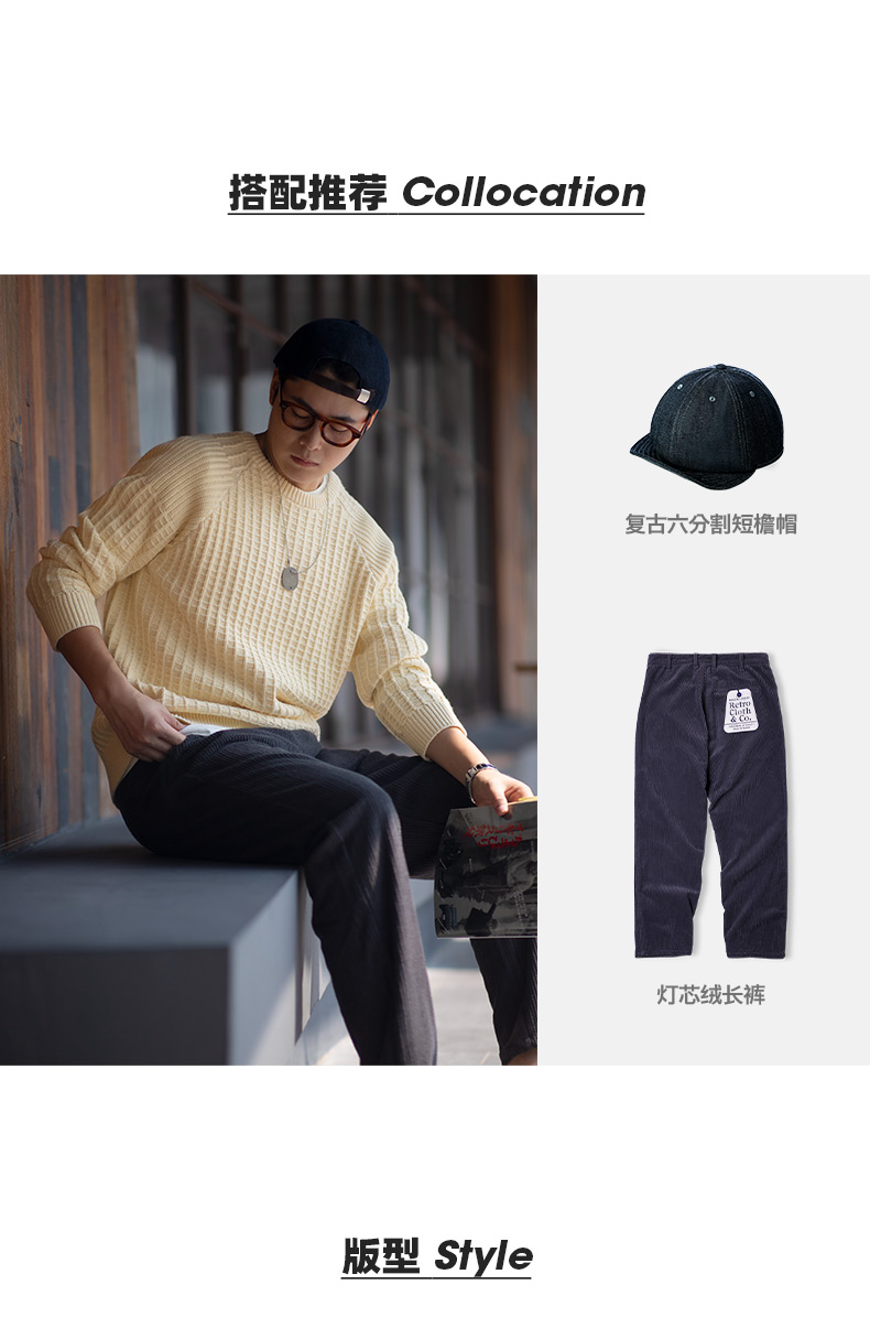 工装优选 日系复古圆领加厚粗毛线秋冬毛衣阿美咔叽宽松针织衫男装