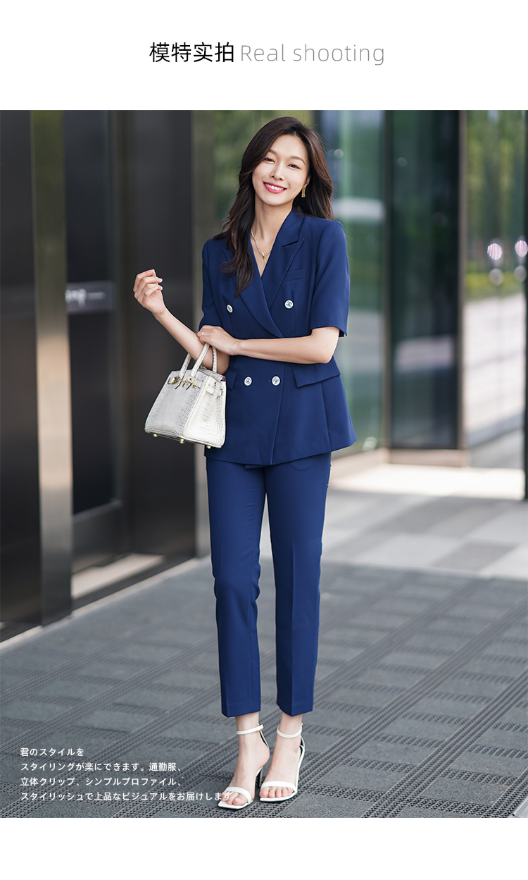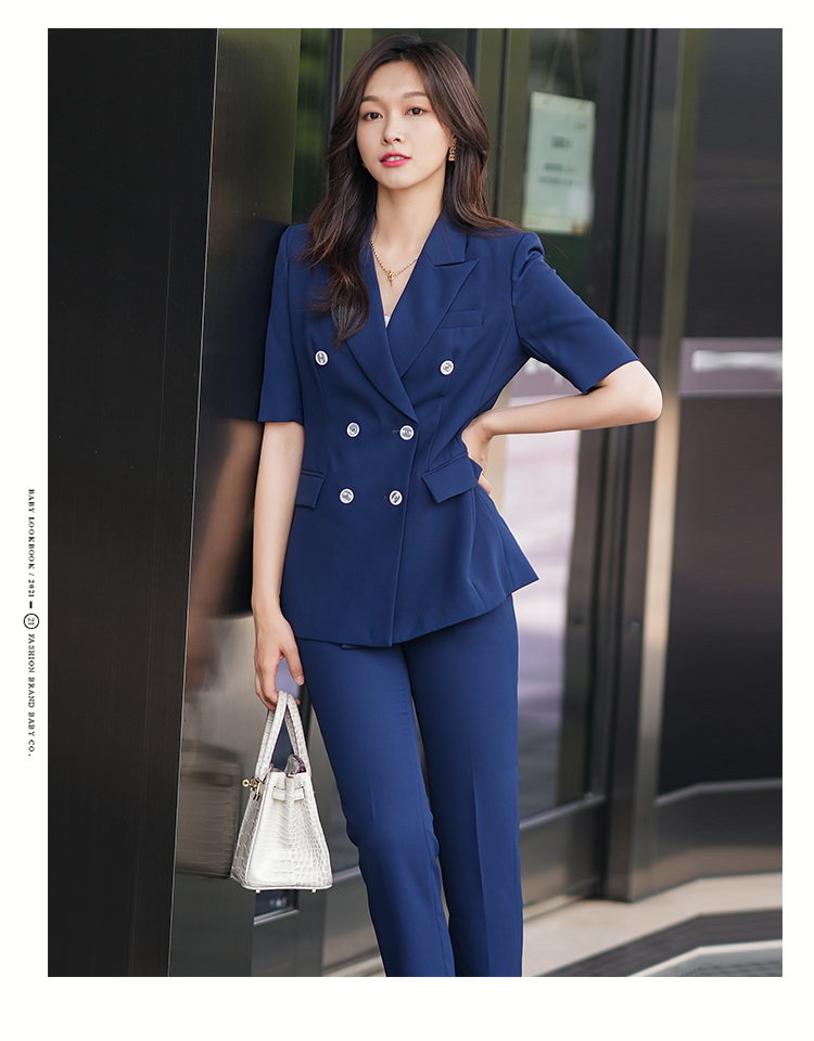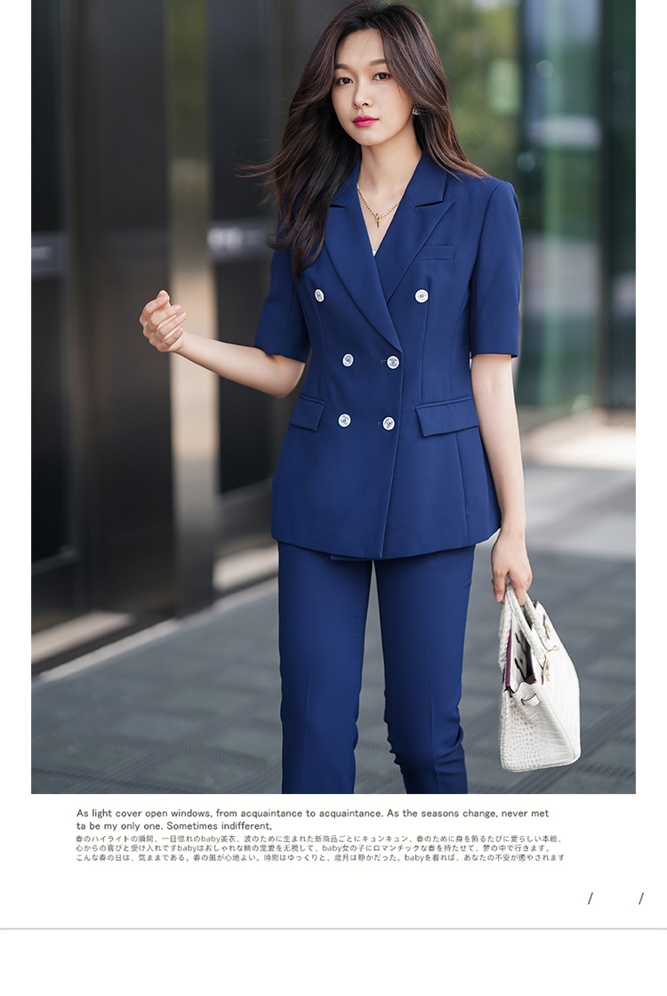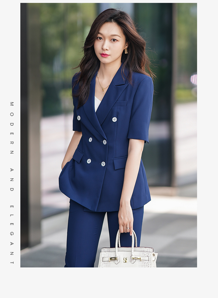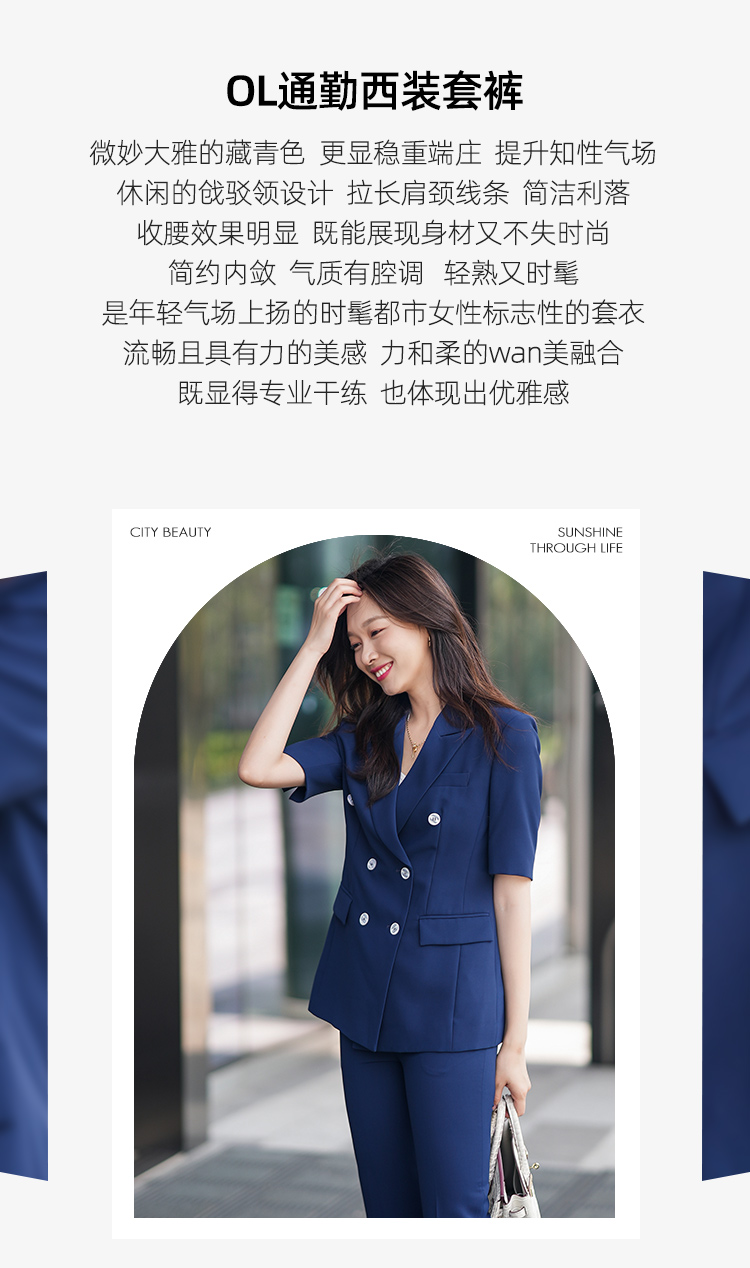 夏季薄款西装套装女藏蓝色高级感气质干练面试正装职业西服