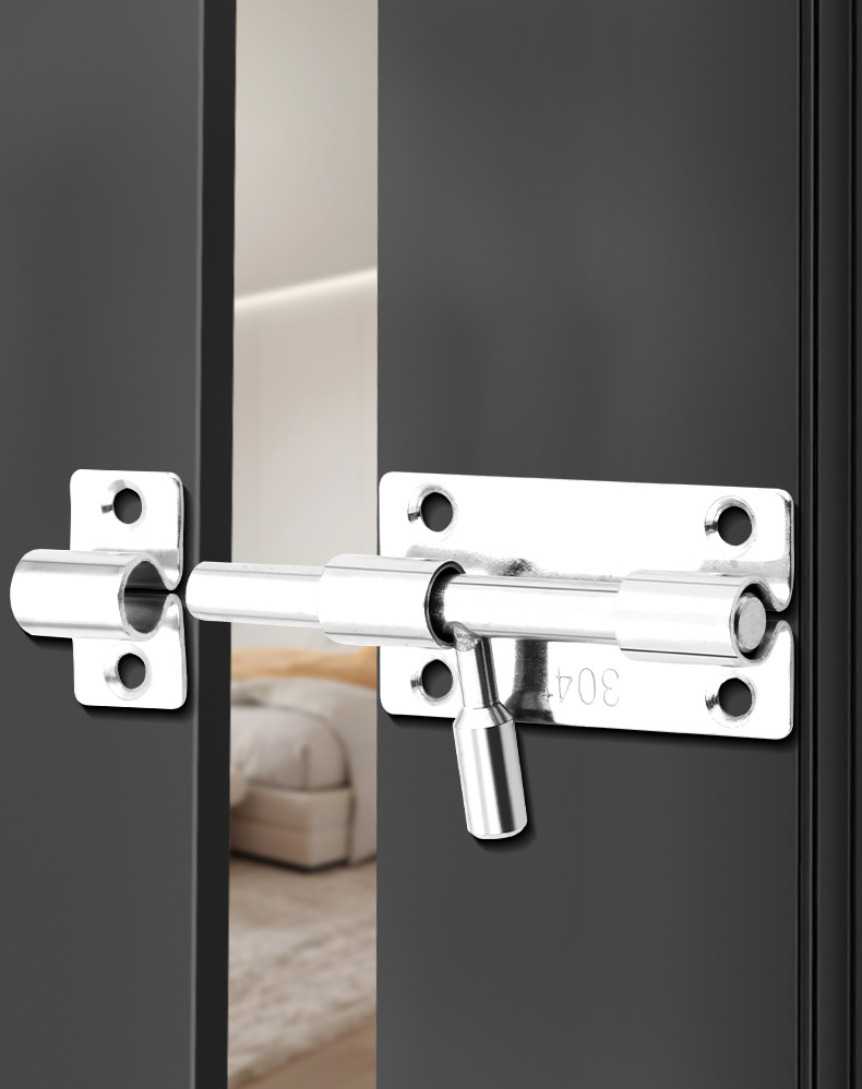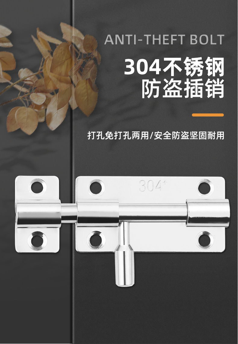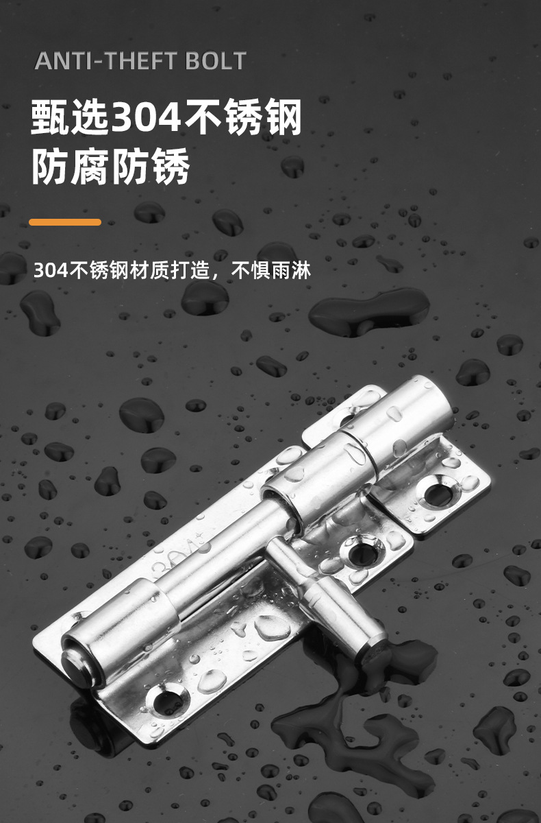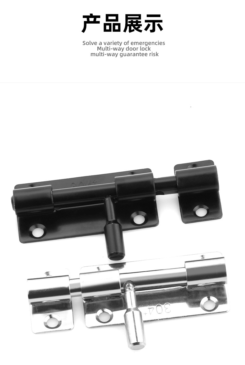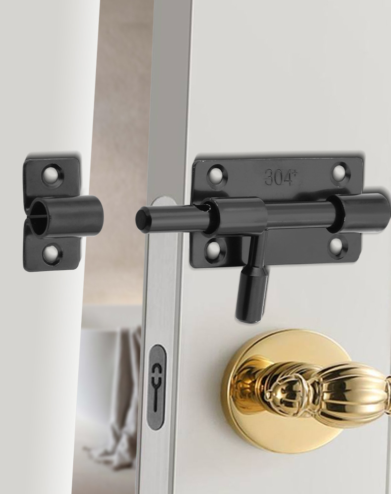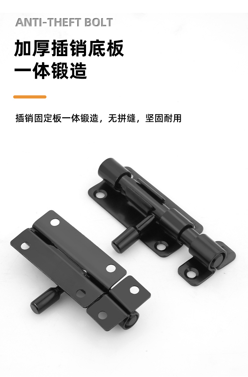 定制304不锈钢插销实心加厚明装门锁扣明装防盗左右通开黑色插销 1个