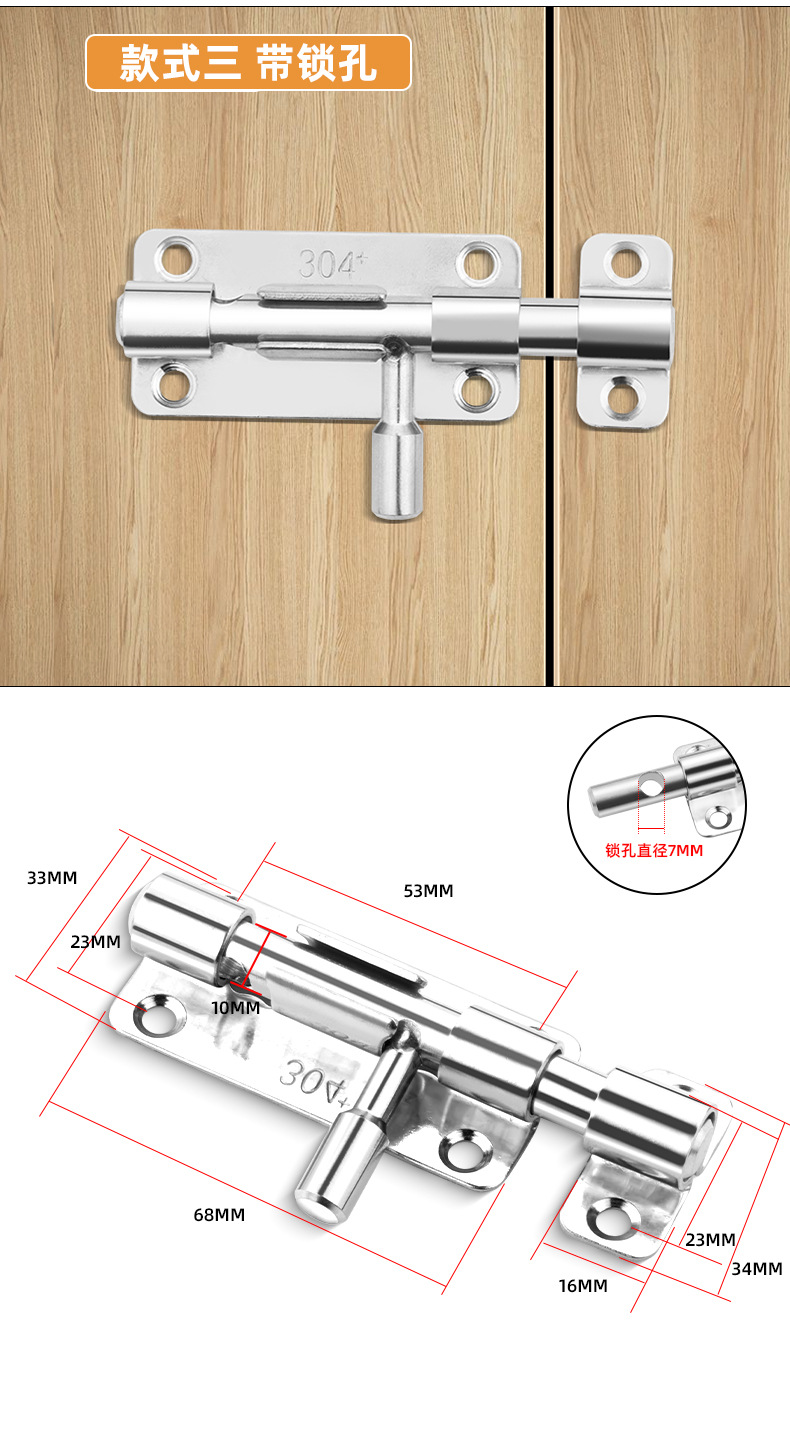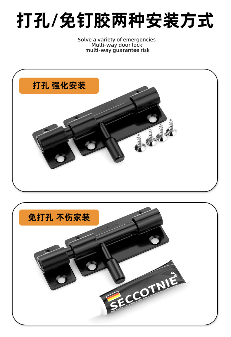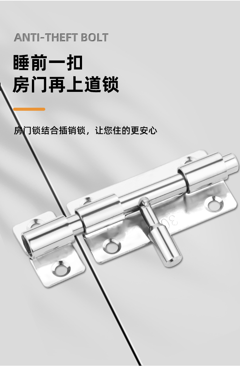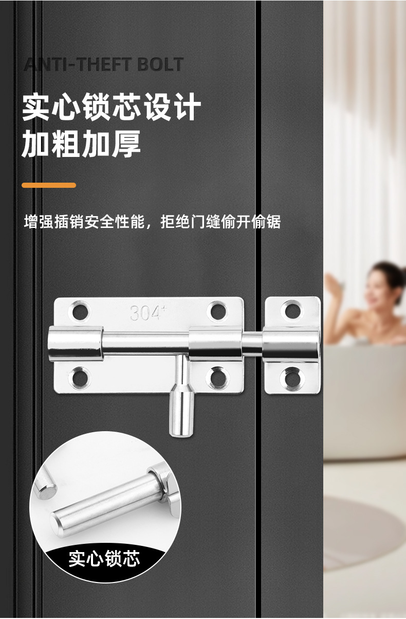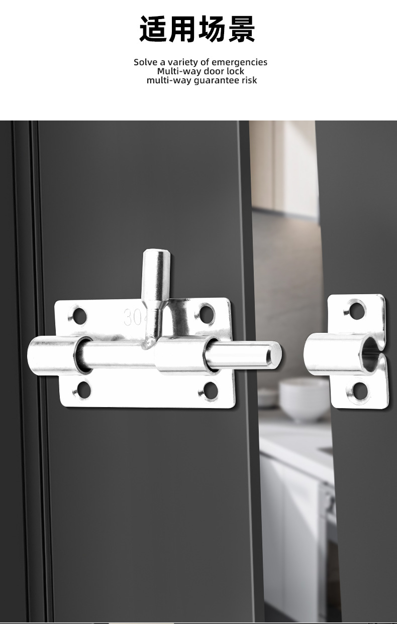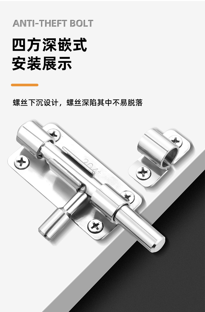 定制304不锈钢插销实心加厚明装门锁扣明装防盗左右通开黑色插销 1个