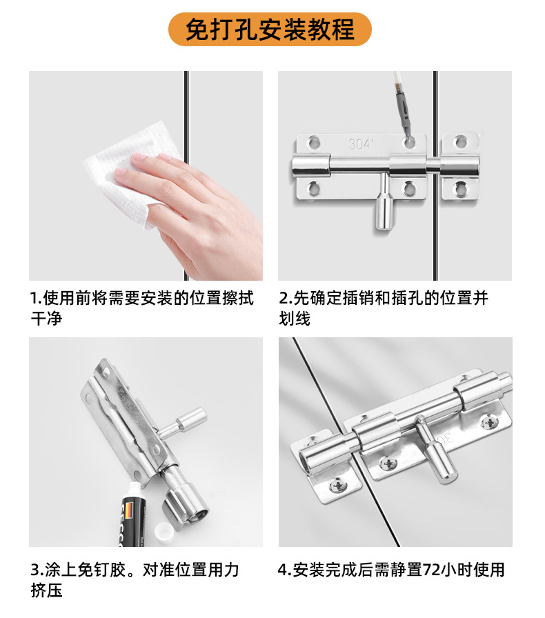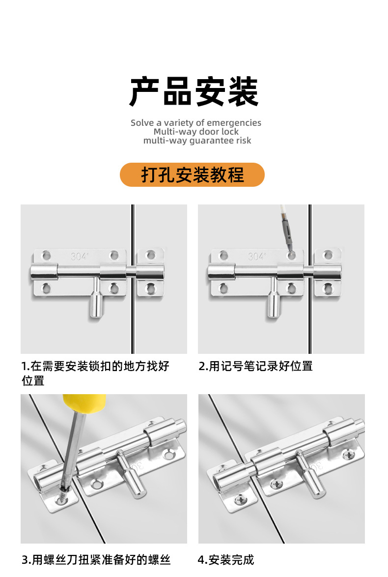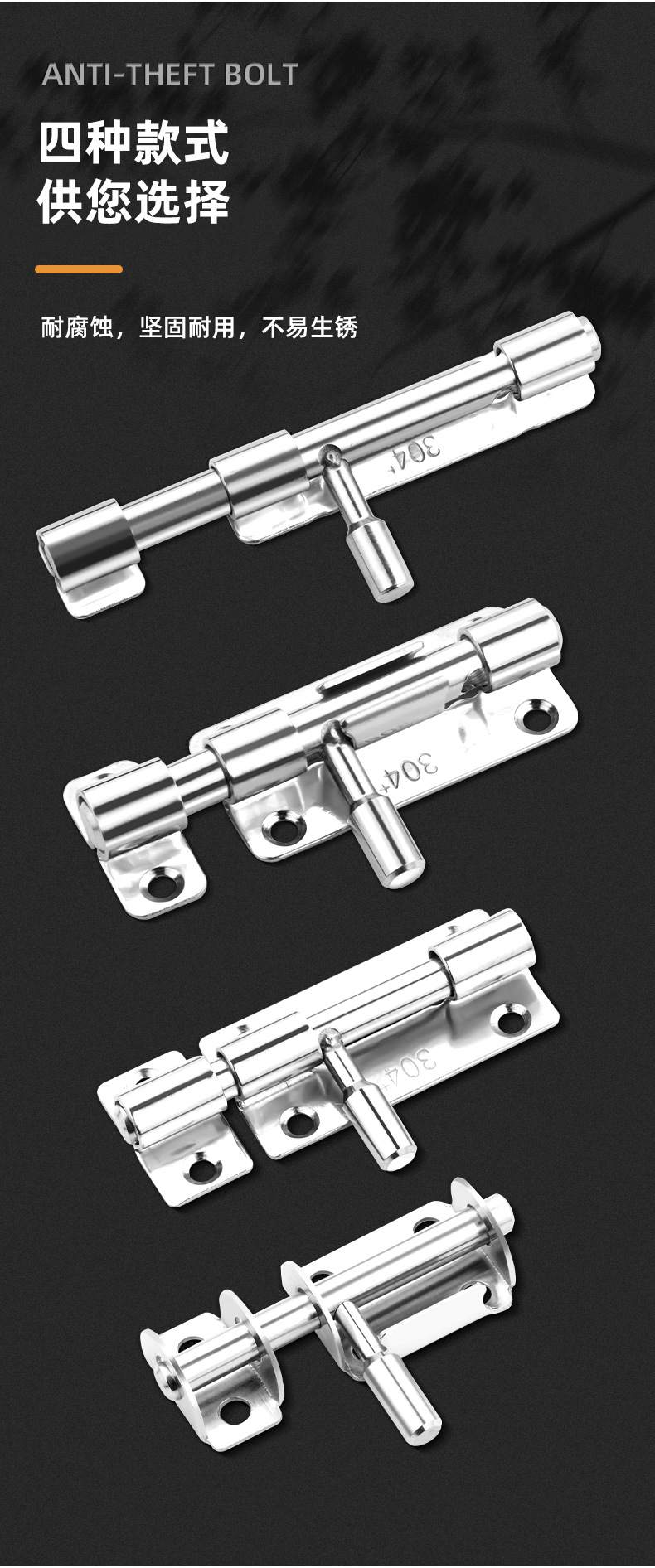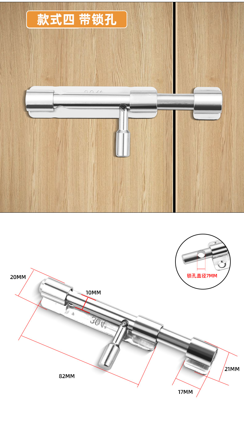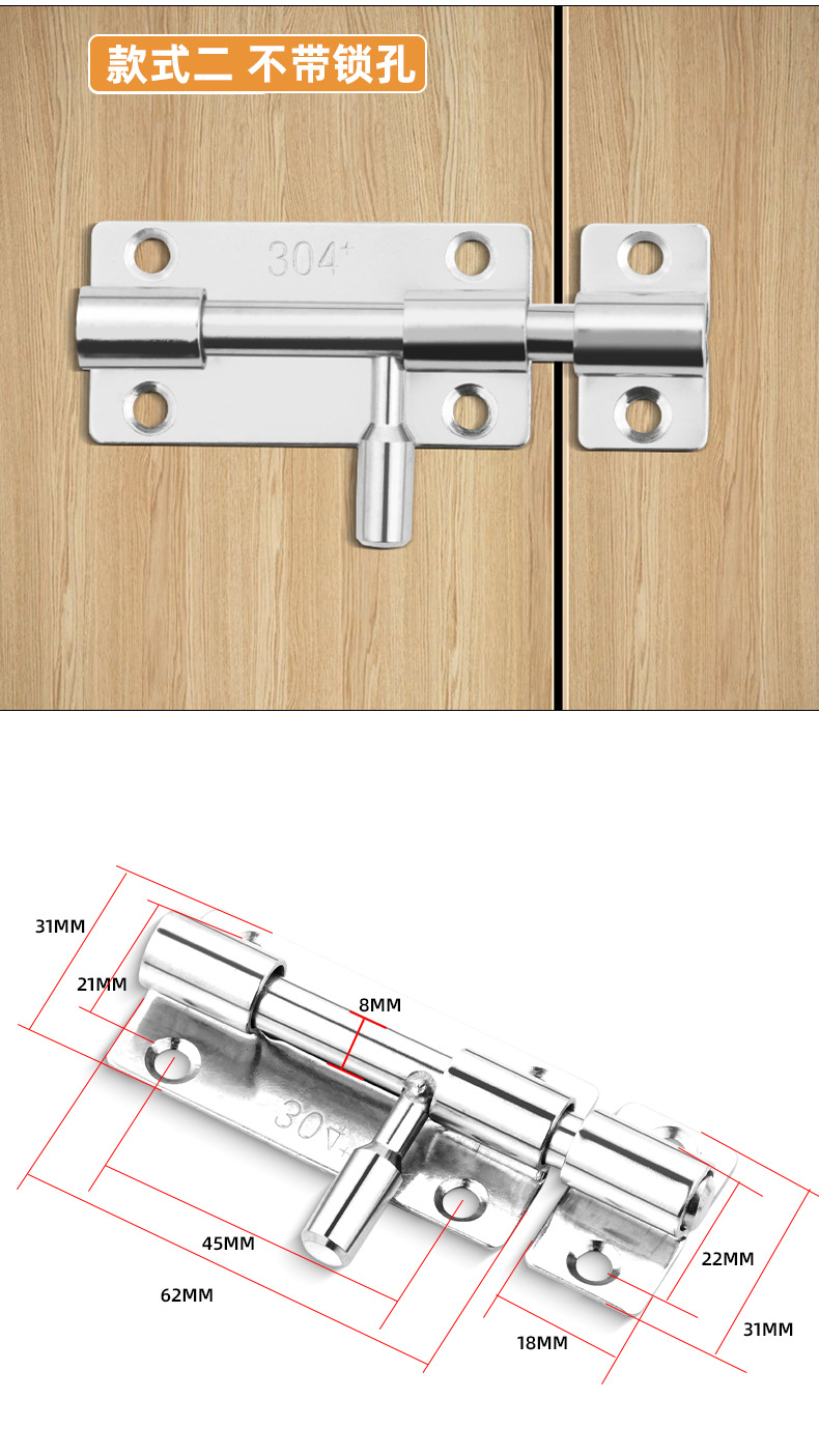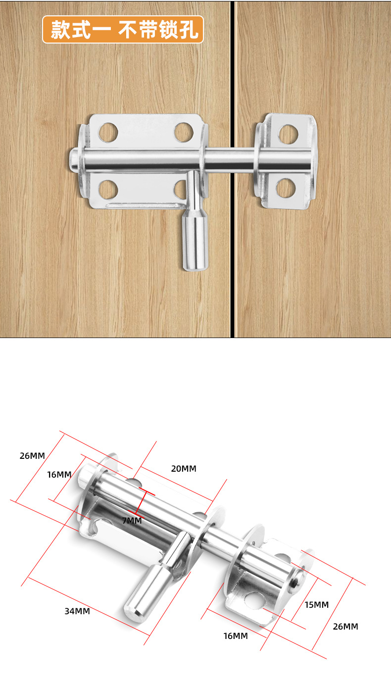 定制304不锈钢插销实心加厚明装门锁扣明装防盗左右通开黑色插销 1个