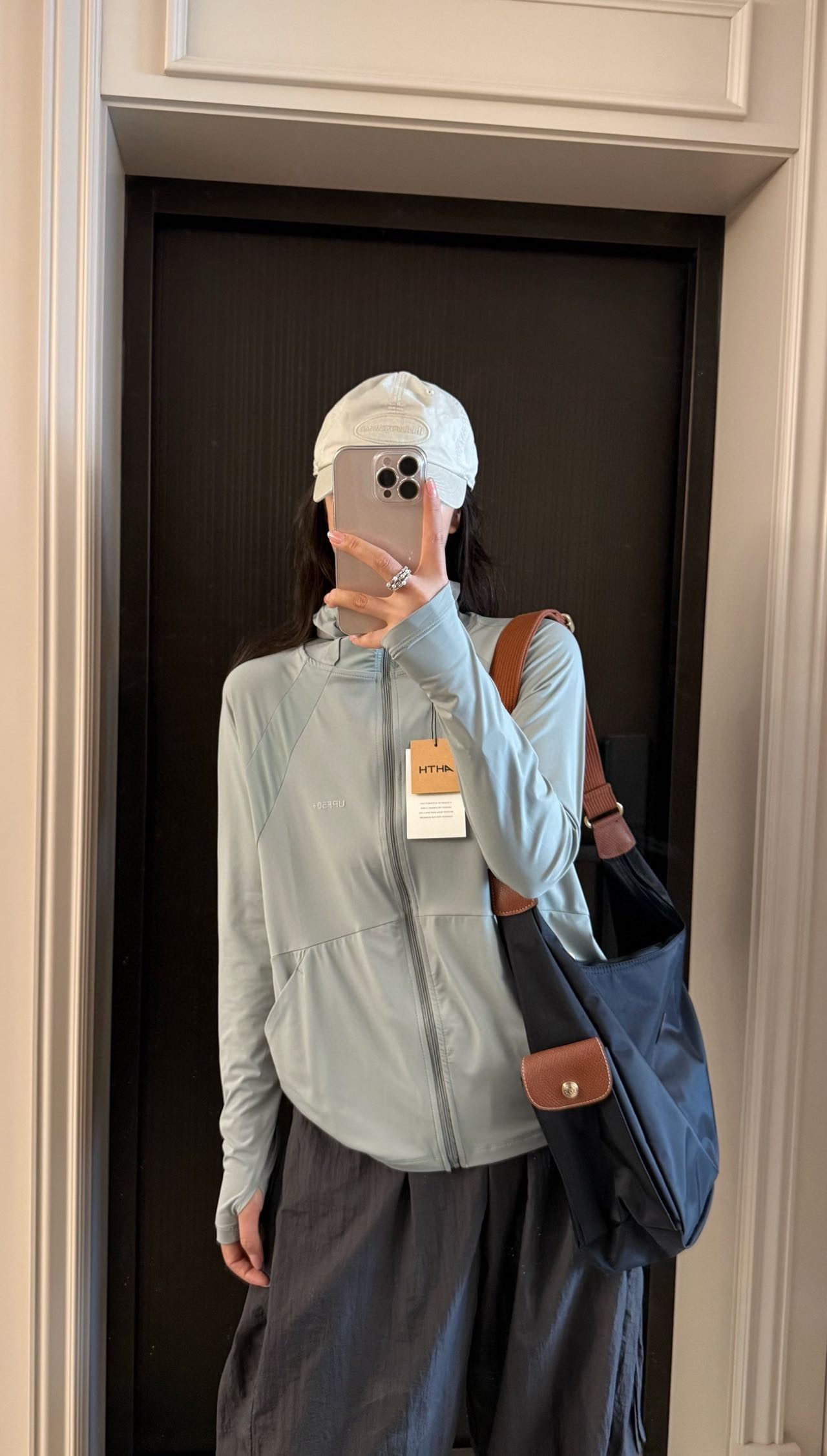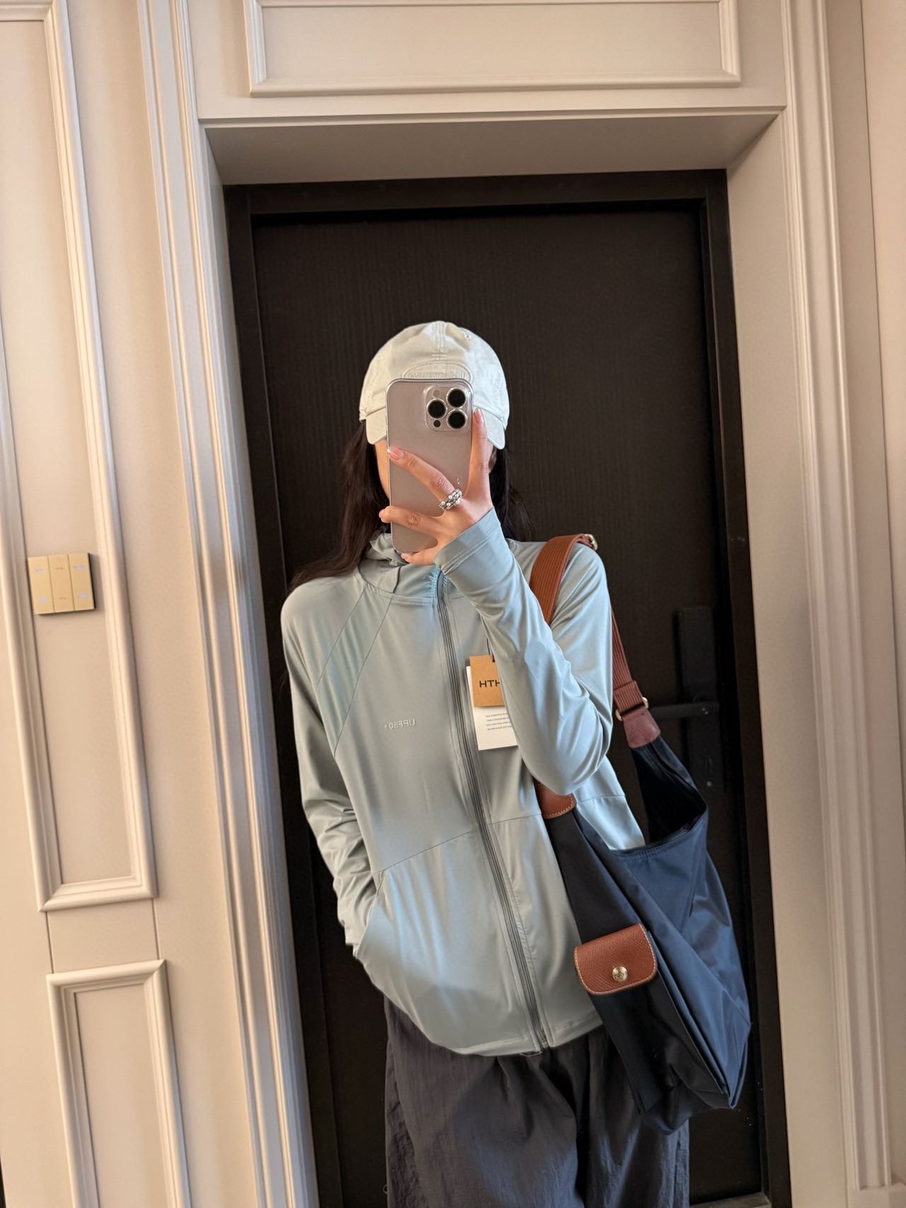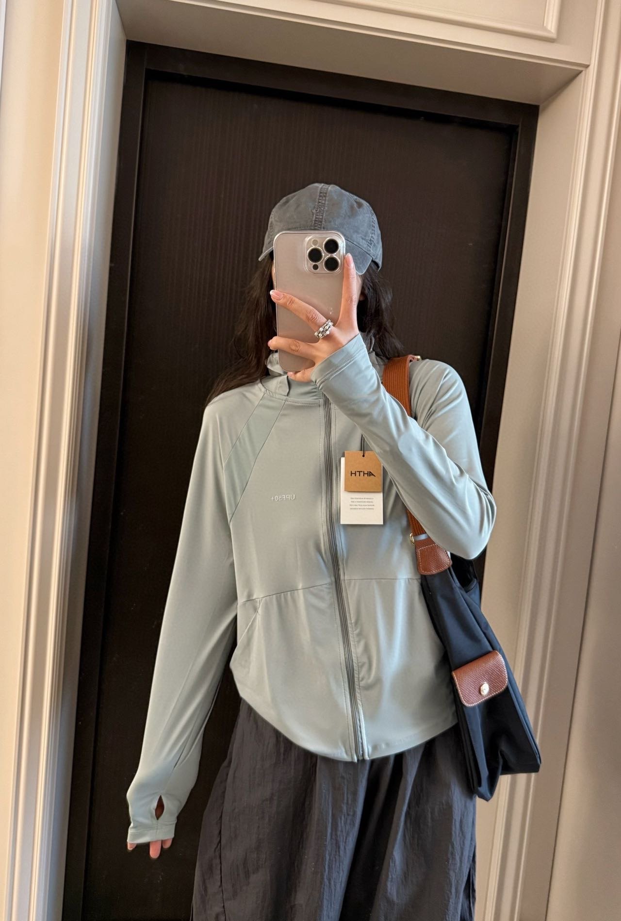 所拍所得,采用云朵原纱材质,实测值UPF大于260+ ,从材质根源上保障防晒效果,且手感柔软,接触皮肤时带来冰感体验,在炎热天气中能瞬间降温,让肌肤感受清凉。