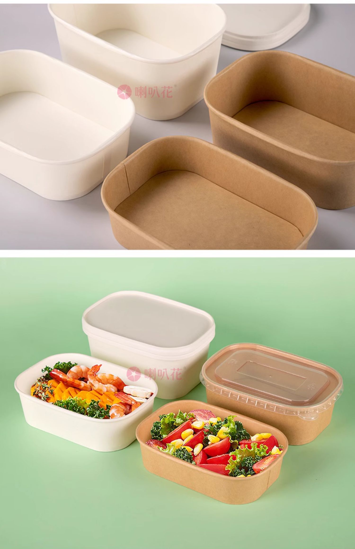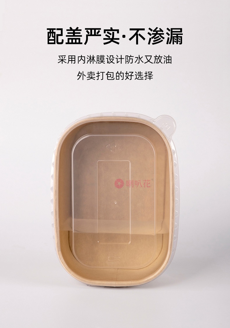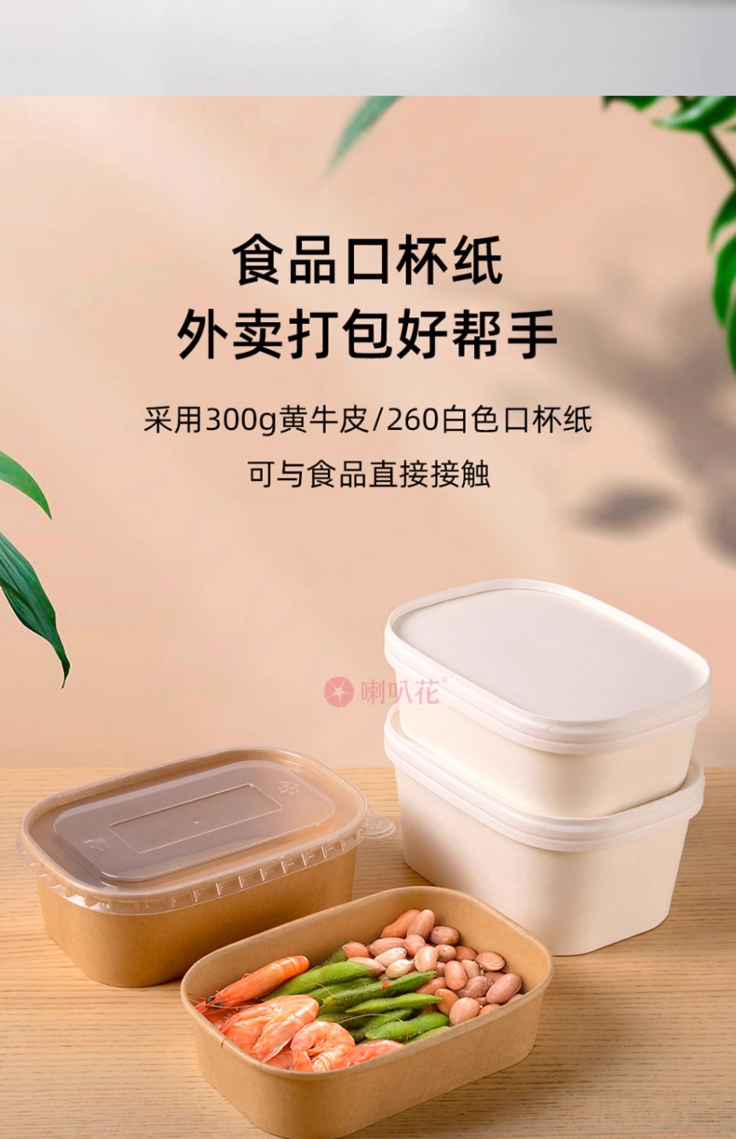 喇叭花一次性长方形牛皮方形铝箔纸碗饭盒加厚带盖外卖打包快餐盒