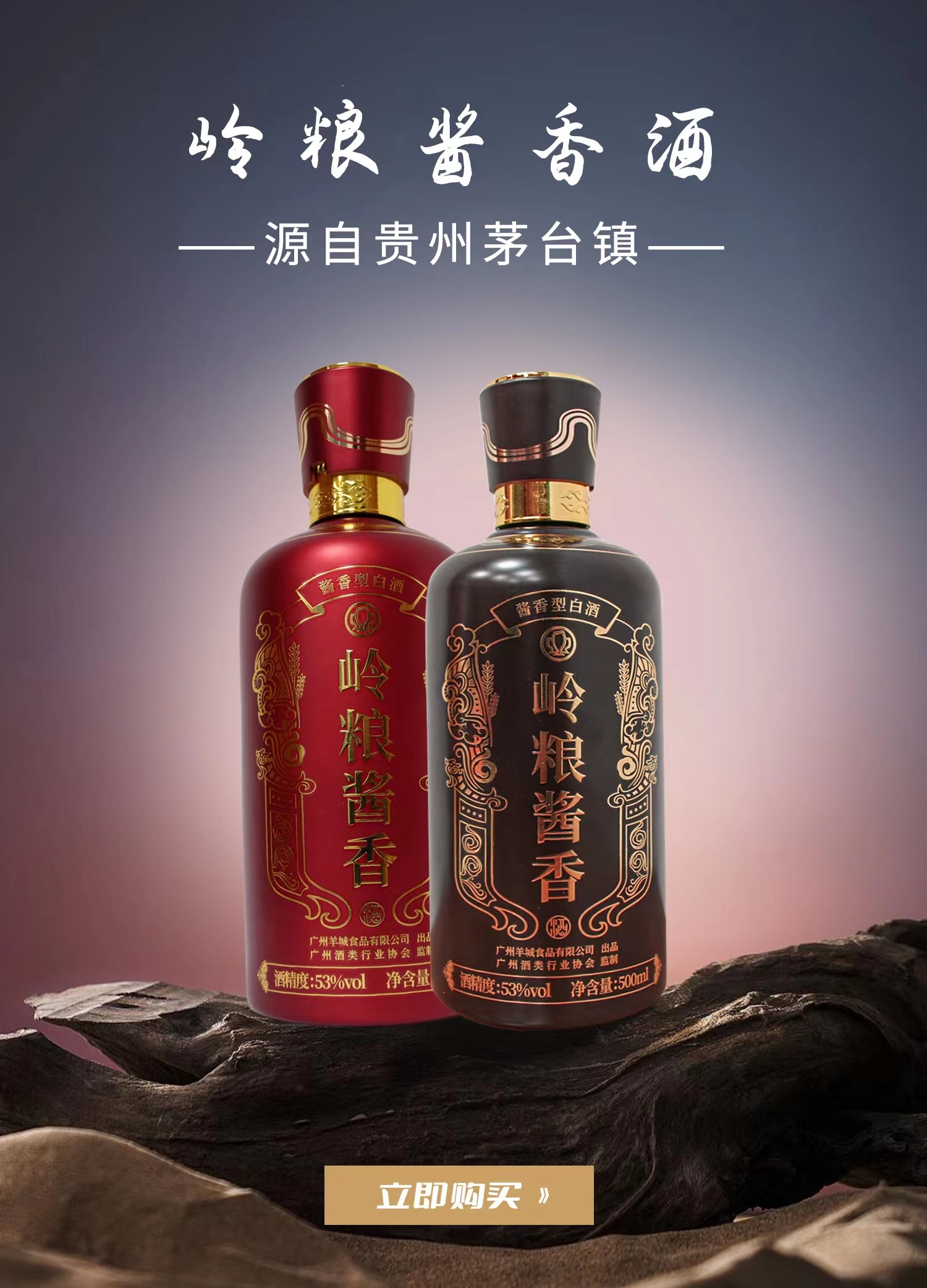 【快递包邮】53°岭粮酱香酒3号(2022年新款)500ml 商品图0