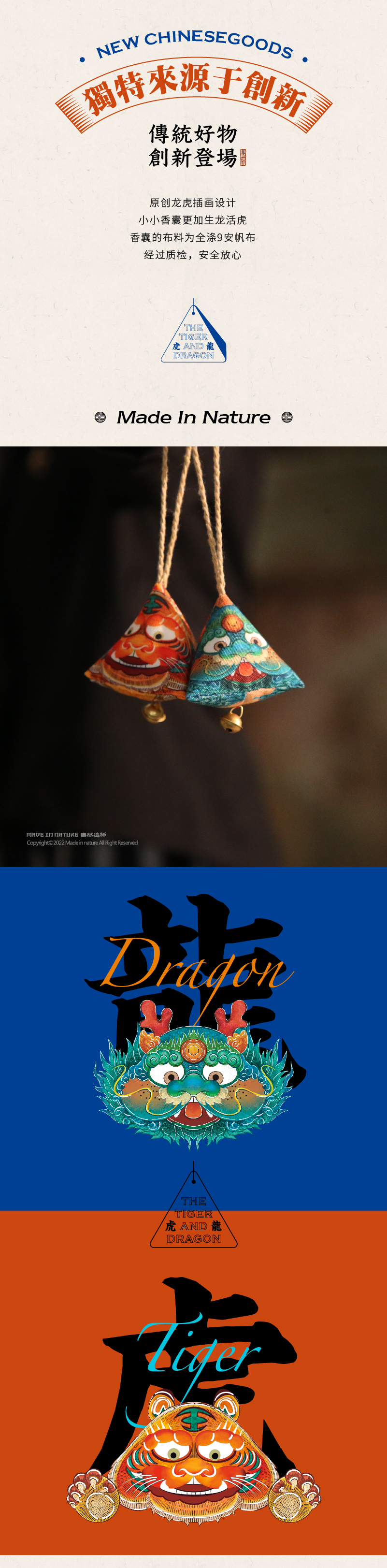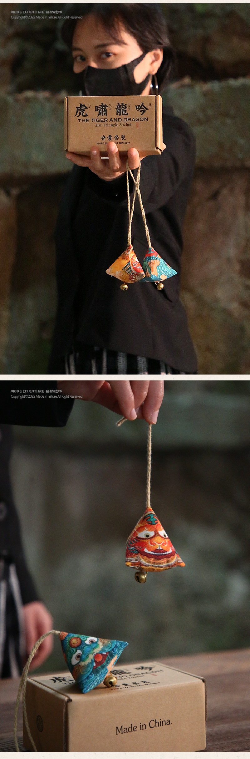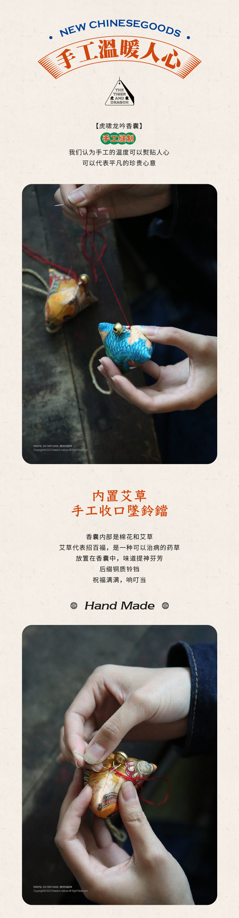自然造物随身香囊原创老虎祥龙图案挂件艾草香包护身铃铛趣味香囊