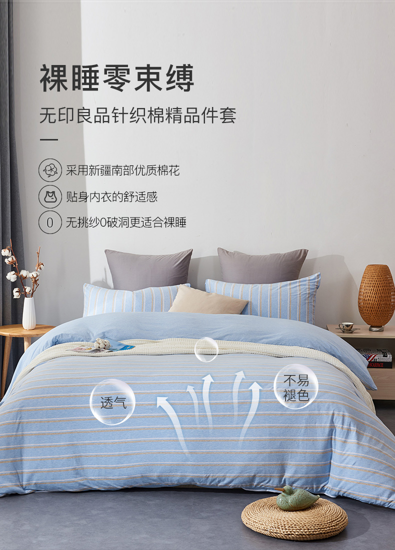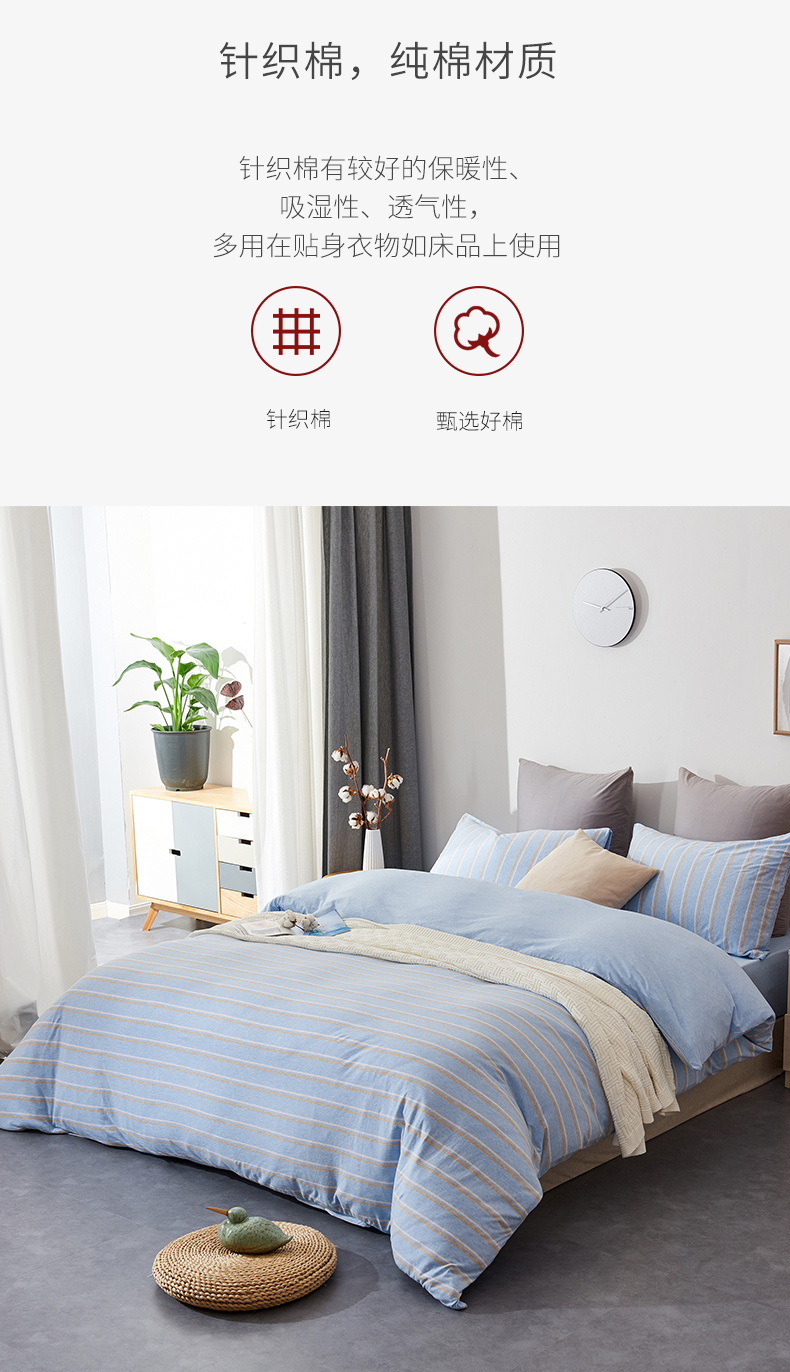 海棠花谷纯棉四件套全棉针织面料被罩床笠枕套无印良品