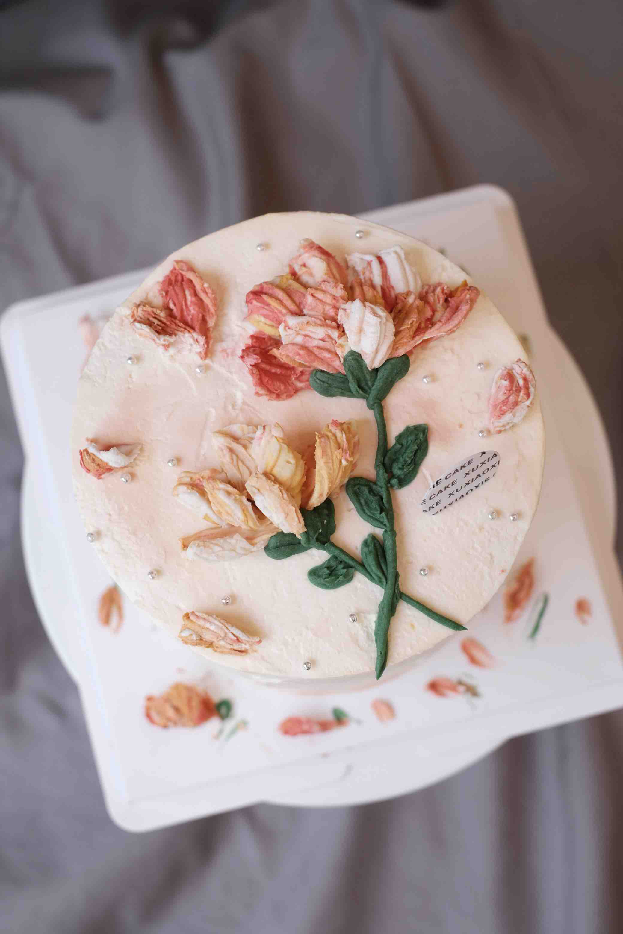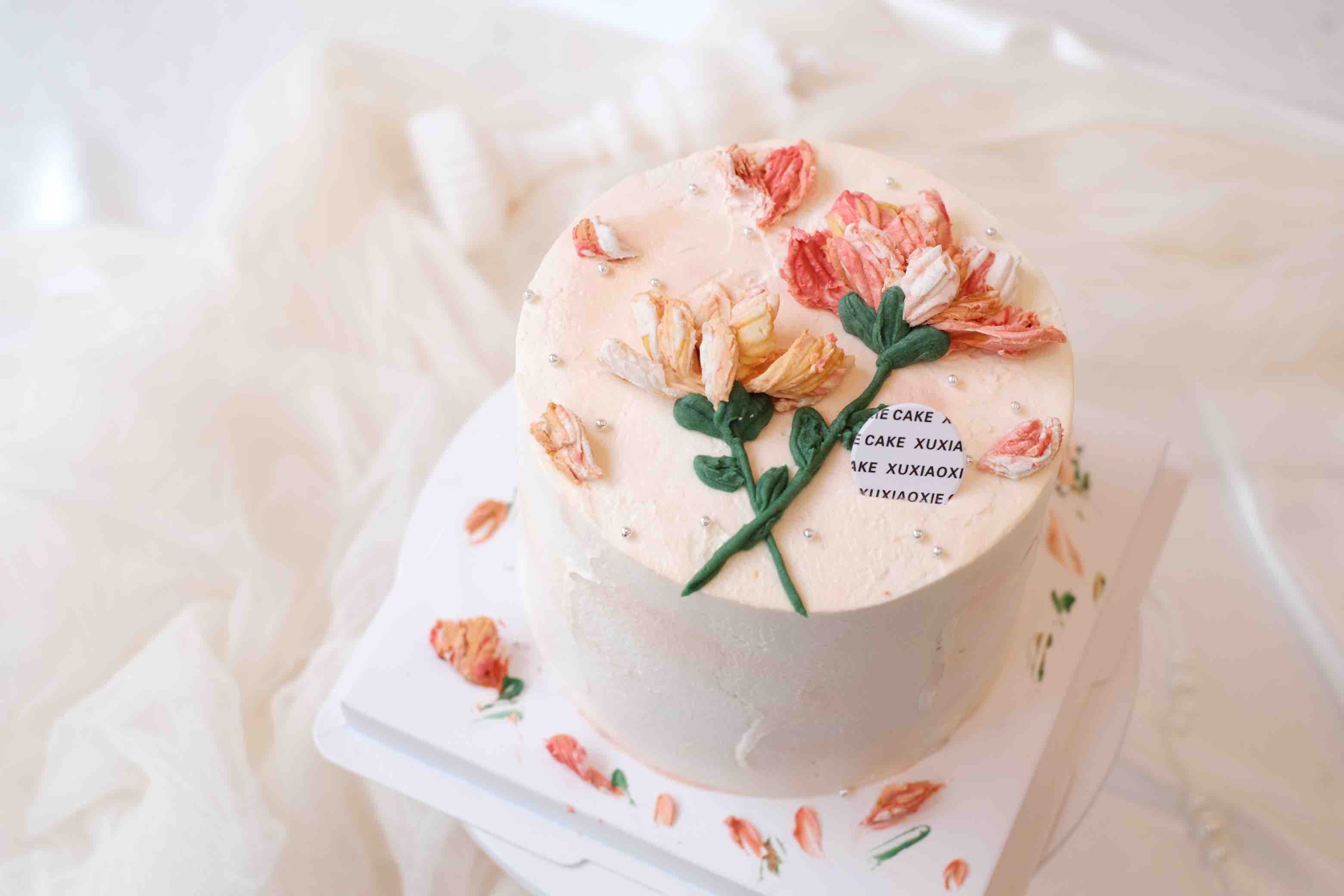 康乃馨豆沙刮刀花 (4层蛋糕胚,奶油抹面,3层夹心,水果默认火芒)