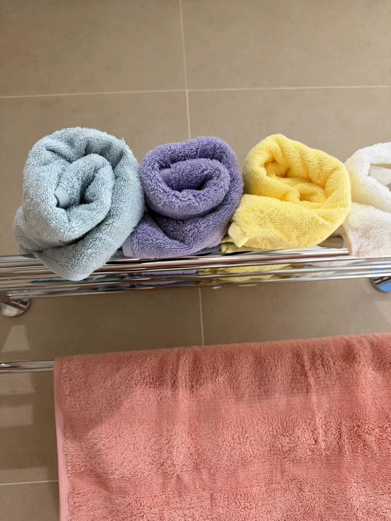 精密包边工艺,耐洗耐穿,不易脱线?毛圈紧密排列,吸水性与柔软度双在线 无荧光剂、无甲醛,母婴级安全标准,全家放心细节实拍:?高品纯棉面料,柔软吸水更亲肤 100优质纯棉织造,毛圈蓬松浓密,触感像云朵般柔软,擦脸擦身不刺激肌肤 ?强吸水速干设计,洗完脸瞬间吸干水分,避免潮湿滋生细菌,久洗不易掉毛、不变形?多场景适用,实用与颜值并存 日常洁面:柔软亲肤,呵护娇嫩肌肤 运动健身:便携吸汗,擦身清爽不粘腻 ?浴室装饰:色彩清新,提升居家格调 ?礼盒送礼:适合闺蜜、家人、同事,传递生活小确幸 马卡龙毛巾礼盒套装浴室氛围感拉满 开箱瞬间被治愈了~奶fufu马卡龙色系毛巾礼盒 白/黄/紫/绿/粉五个颜色,像把彩虹揉进了浴室里。摸起来软乎乎的像云朵,吸水性也超在线 洗完澡裹住整个人都被温柔包裹 挂在浴室里本身就是一道治愈风景 送礼或者给自己安排都超有仪式感 生活的小确幸,从一条柔软的毛巾开始