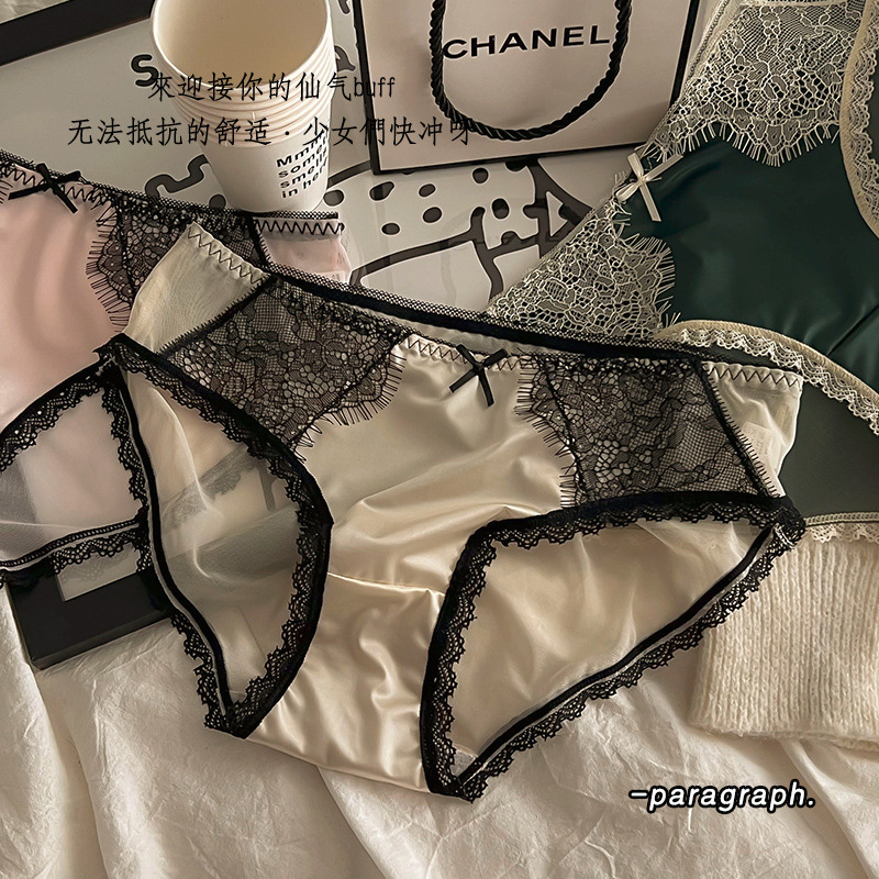 【69.9抢5条装❗法式宫廷冰丝内裤】有颜值有舒适,上身完全0束縛感,女网纱中腰蝴蝶结纯棉裆女士三角裤女QQ