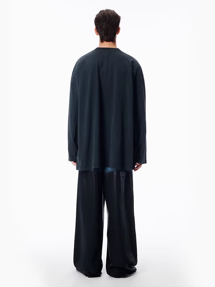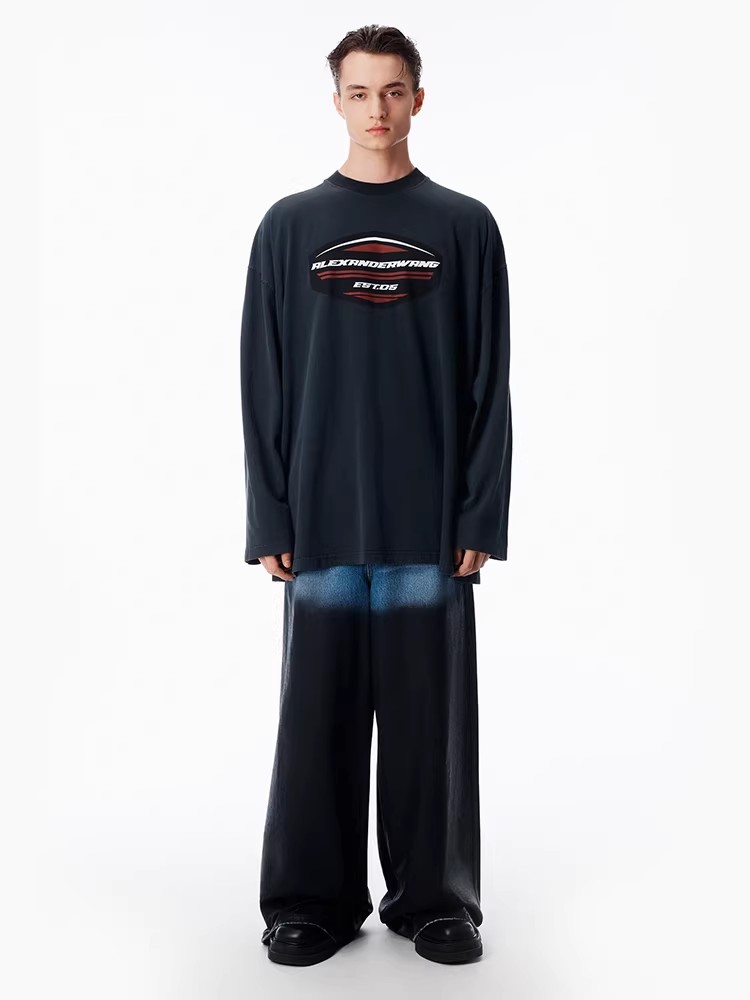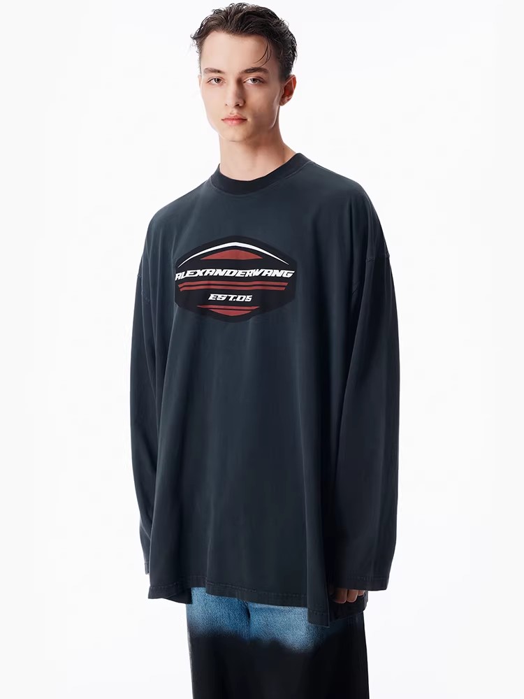 Oversize大魔王tee,胸口印花设计。纯棉锁边圆领长袖上衣E010868