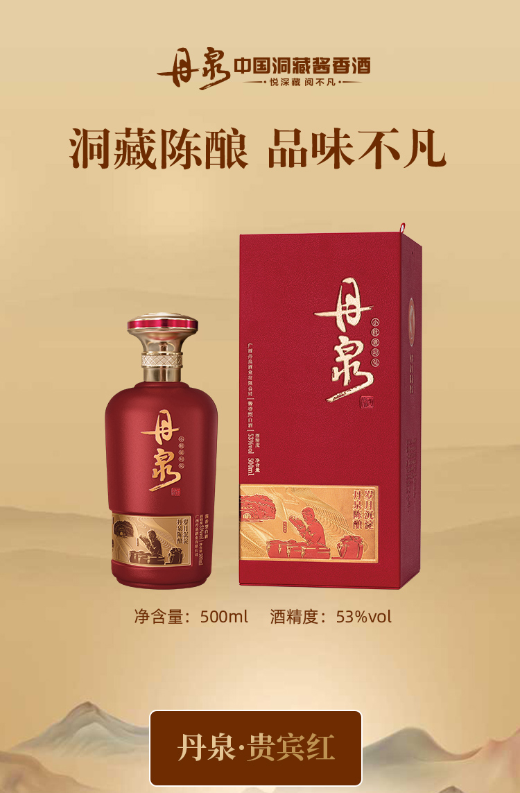广西丹泉酒 贵宾红 酱香型白酒53度纯粮食酱酒 送礼收藏大曲坤沙 500ml单瓶
