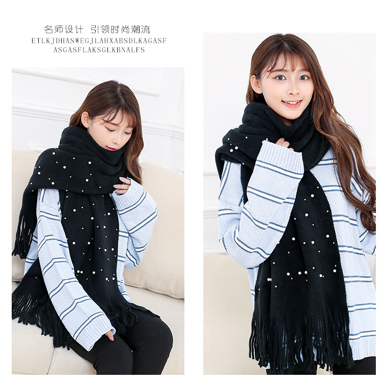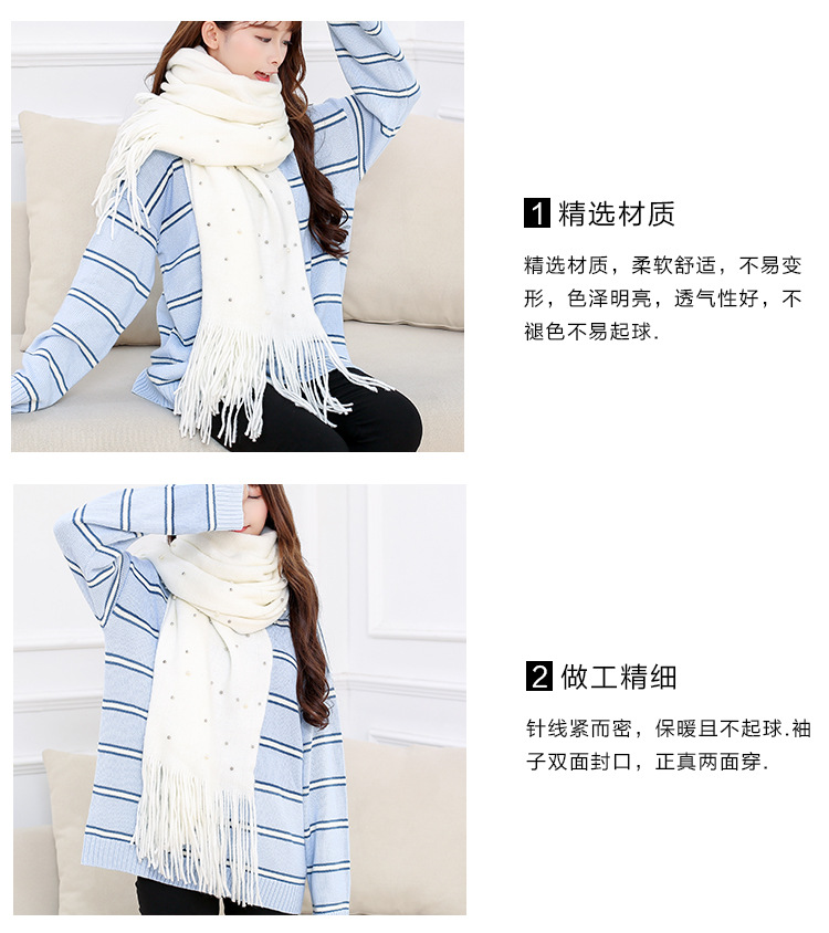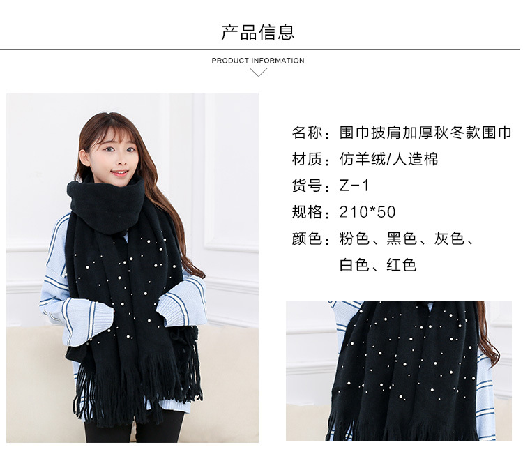 【围巾】秋季女士围巾 披肩加厚秋冬款围脖围巾 冬季珍珠保暖潮