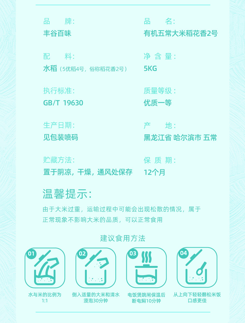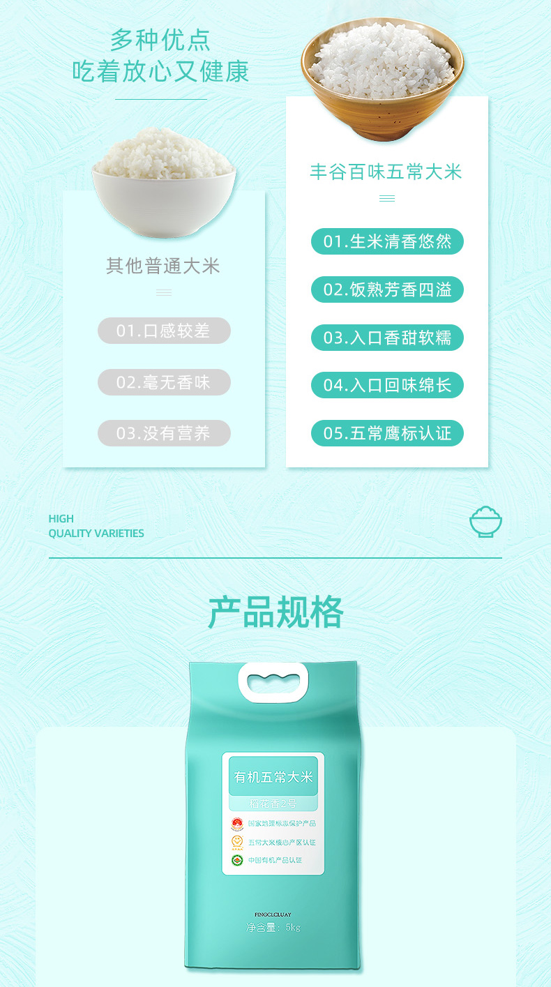 丰谷百味 五常大米有机稻花香2号 5kg