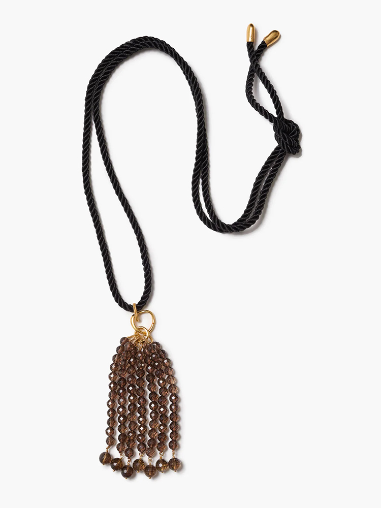 订购6周到|Chan Luu-PAMPILLE-烟晶 扭纹缎带 流苏 长项链[美国设计师]