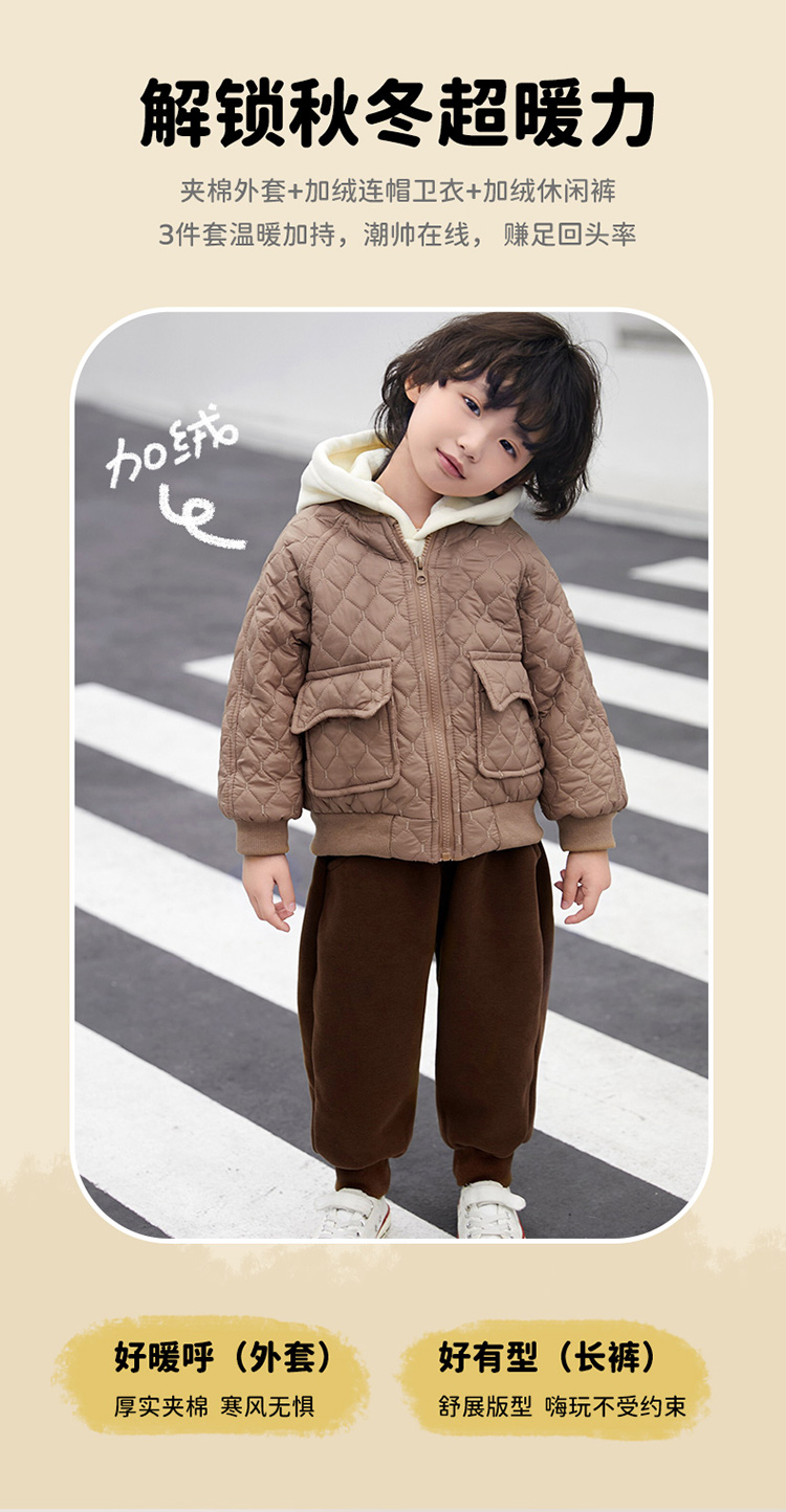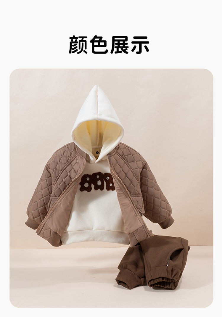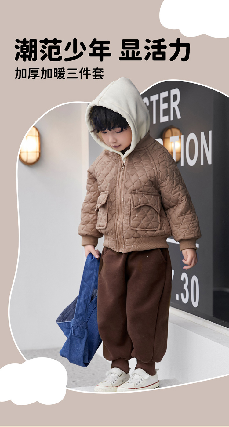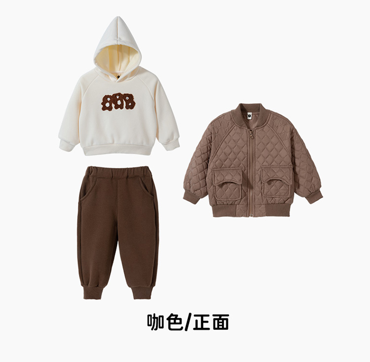 贝贝怡童装男童套装冬季新款时尚百搭三件套休闲卫衣中大童外套男ZB4CT007