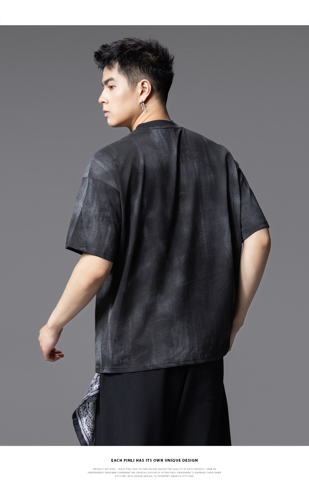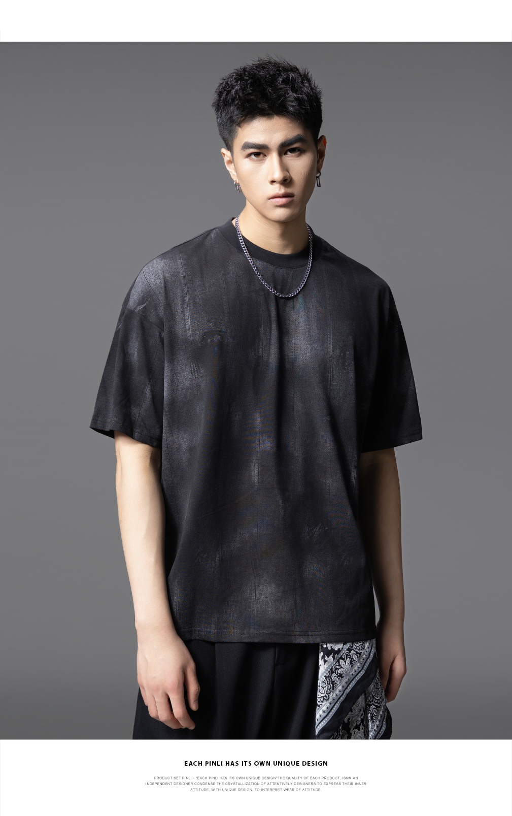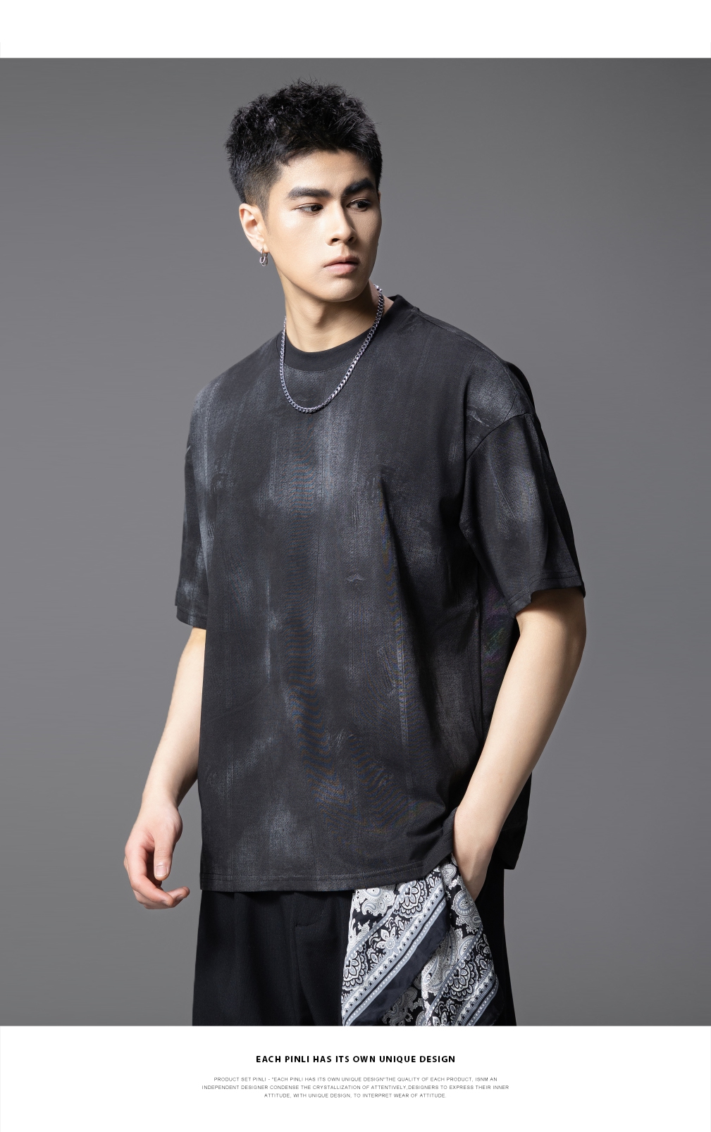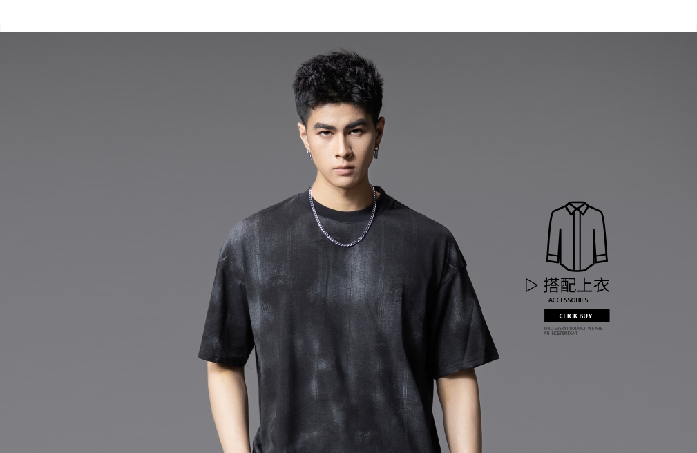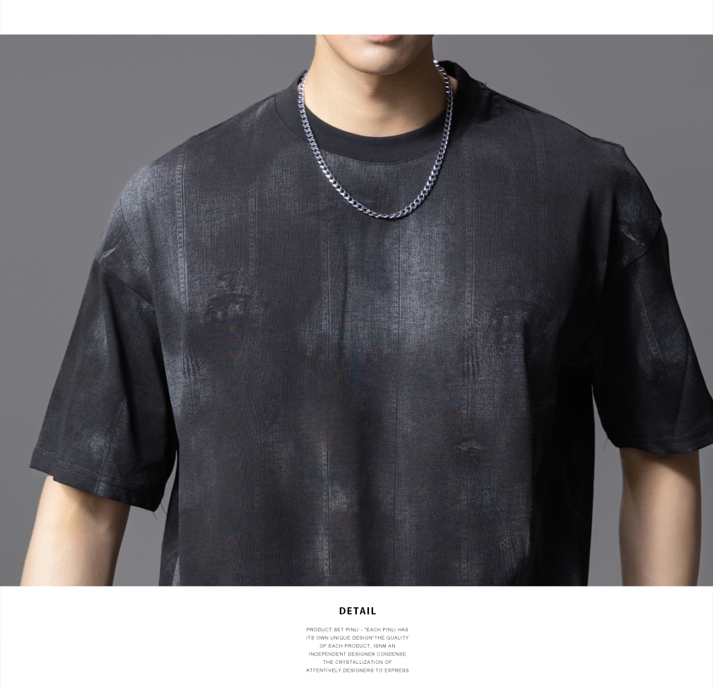 PINLI品立2025夏季新款晕染印花短袖T恤男士个性宽松百搭潮牌上衣B252111043
